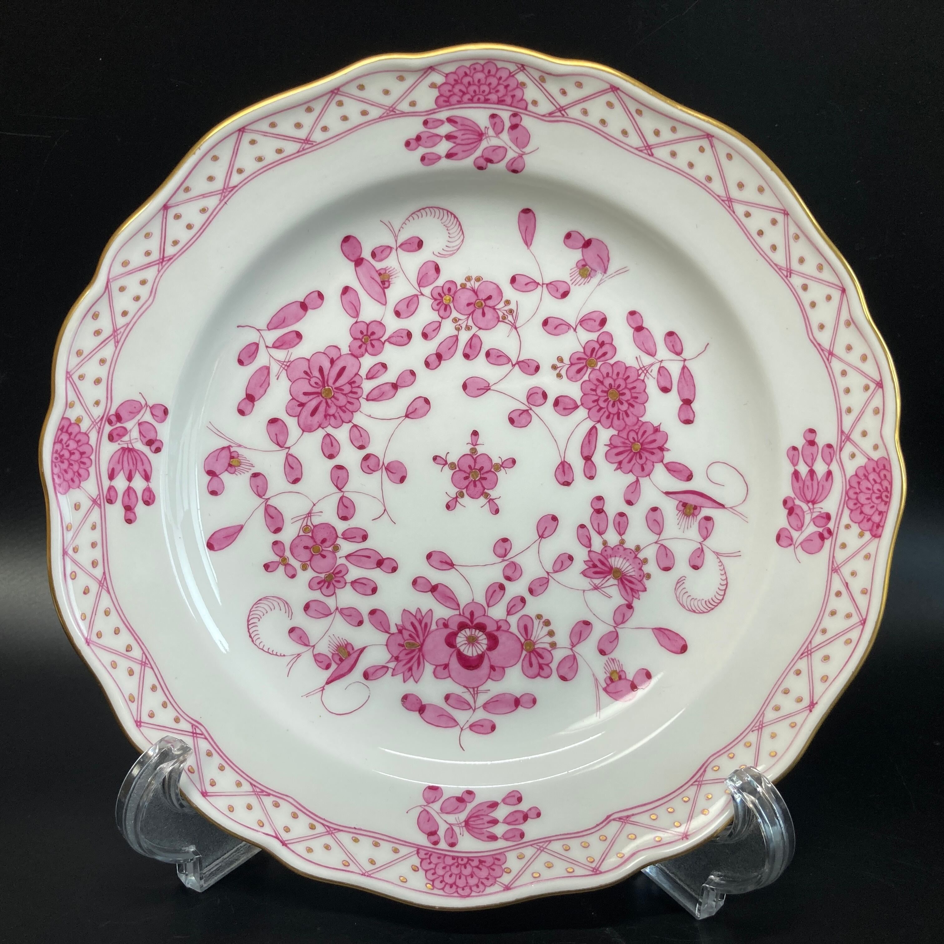 マイセンの「インドの華」シリーズは、日本や中国などから磁器を輸入していた18世紀初頭、東洋への憧れから東洋的な花模様が施されたシリーズで、今日に至るまで国内外問わず長年愛されてきた作品になります。