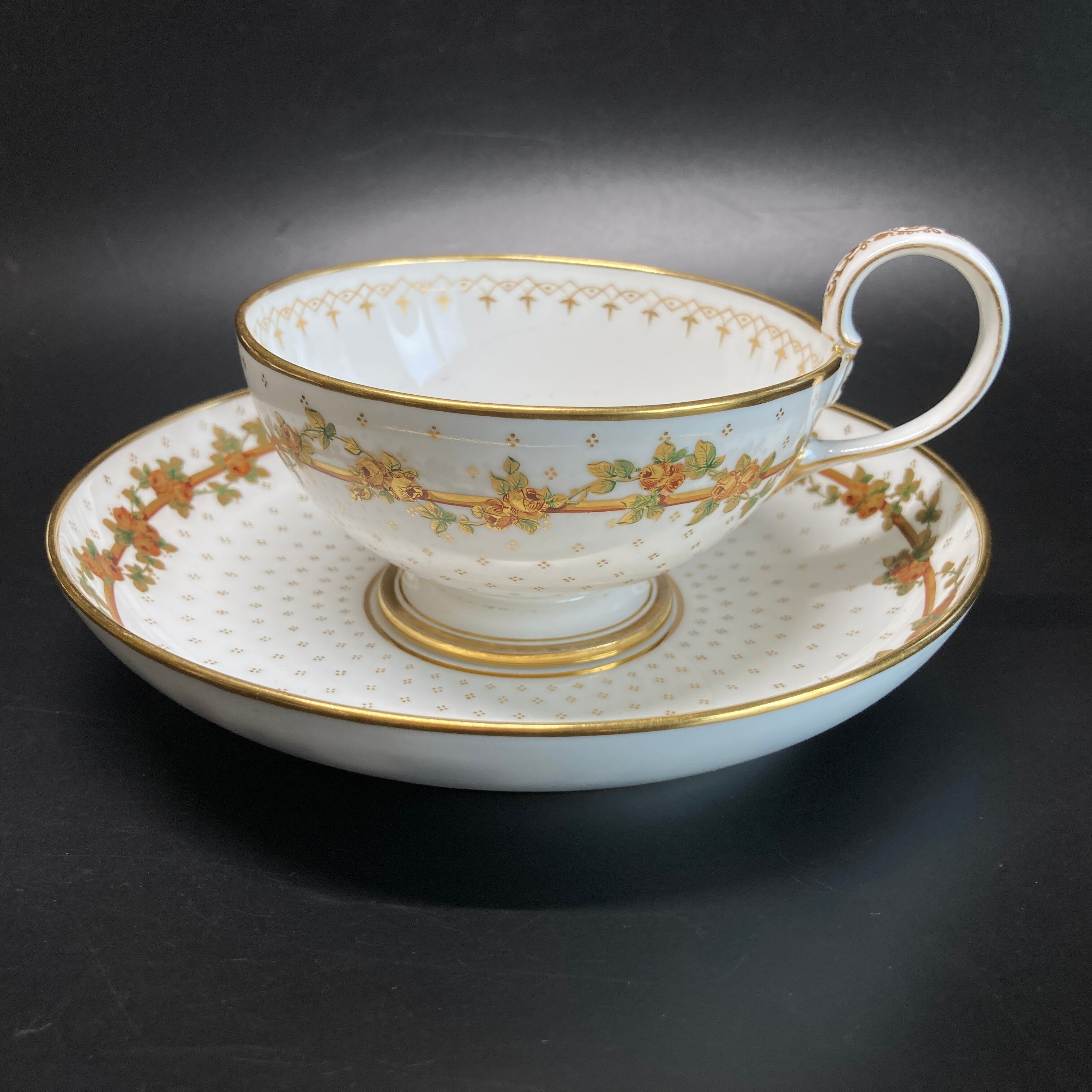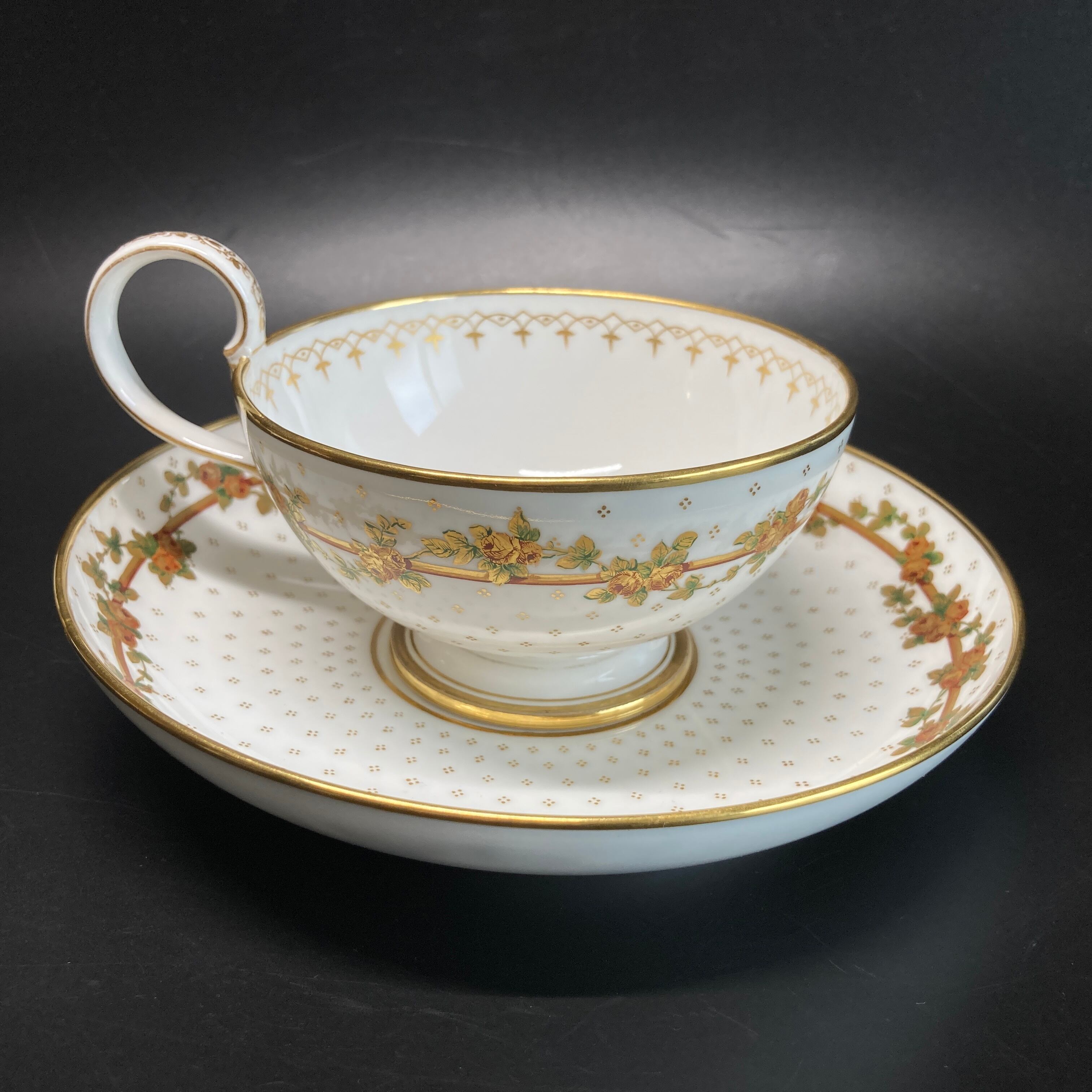 SEVRES セーブル 1852年 白磁に薔薇文 金彩散らし カップ&ソーサー バラ ローズ フランス アンティーク 19世紀