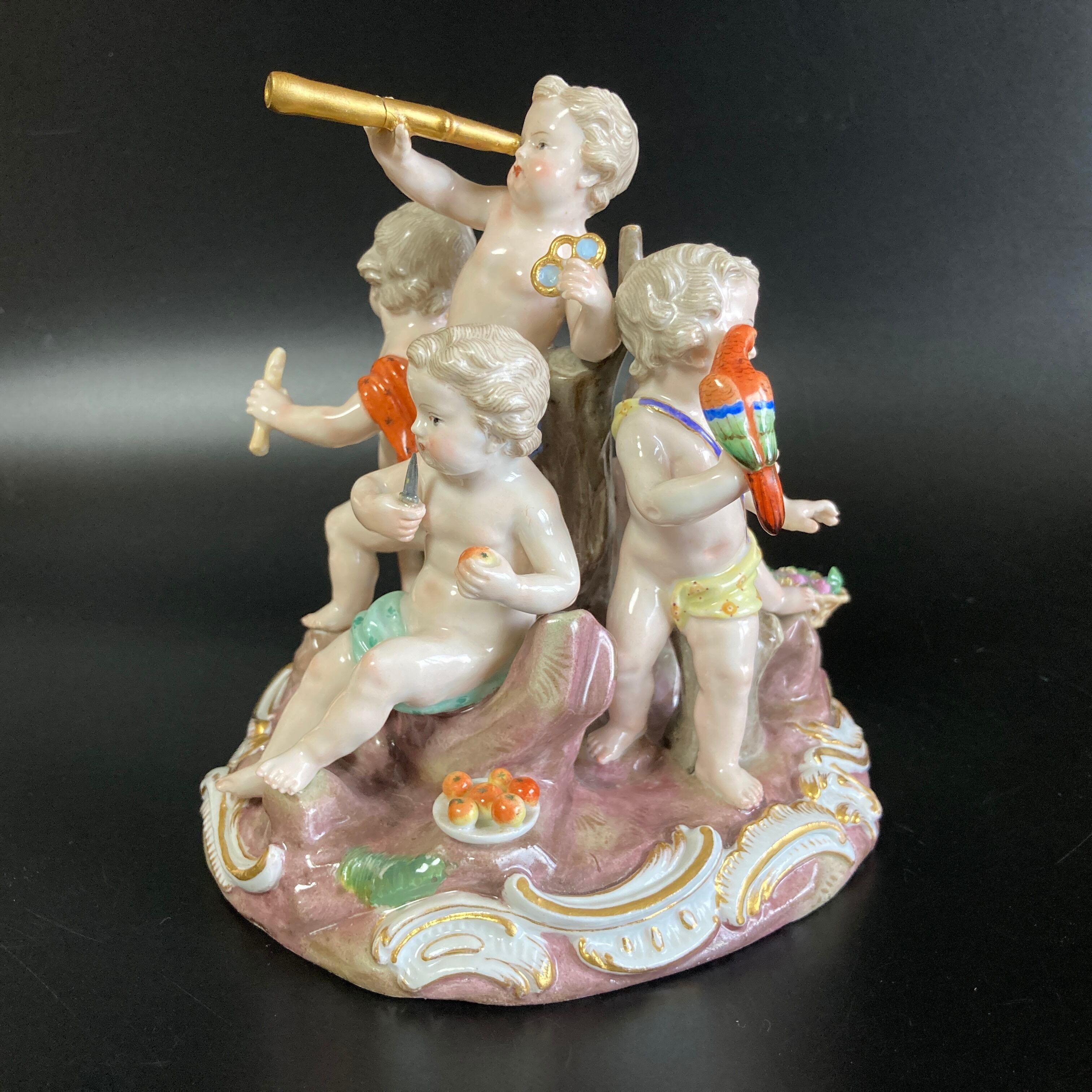 18世紀 古マイセン 人形 フィギュリン「五感の寓意」巨匠J.J.ケンドラー原型 子供 名作 ボタン剣 アンティーク