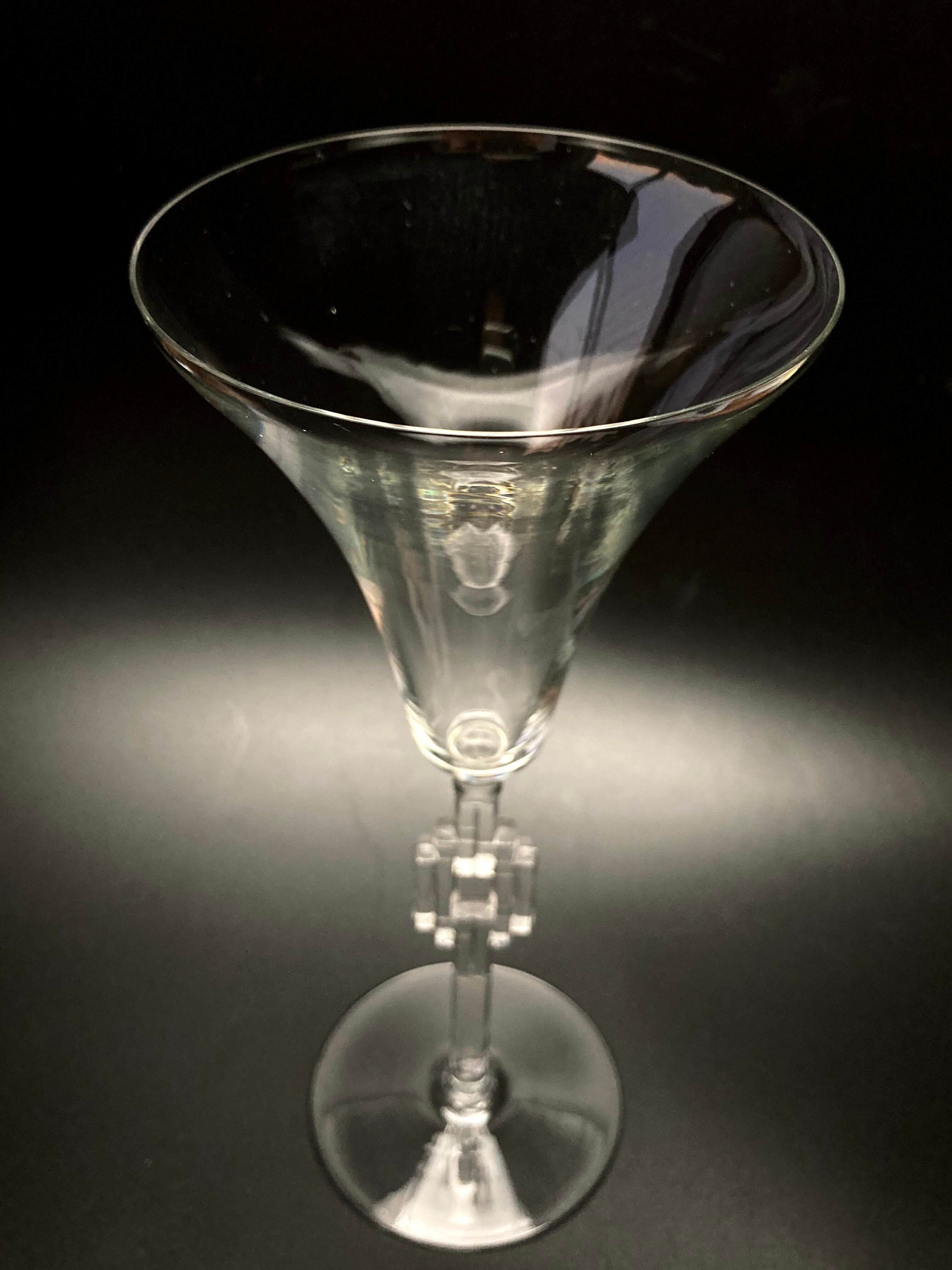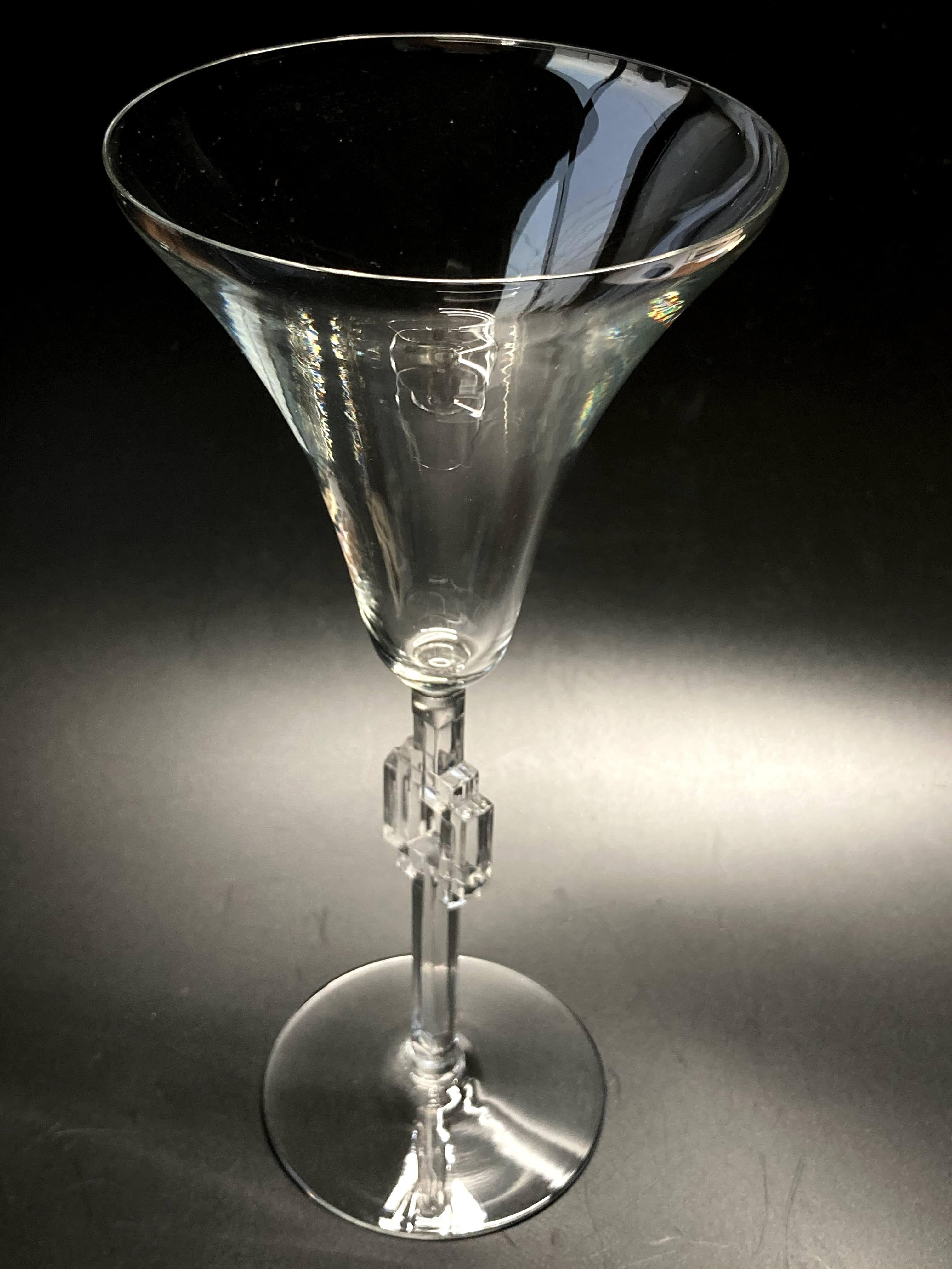 ステム部分の幾何学的な装飾がアールデコならではの意匠となっており、気品のある洗練された美しさが感じられます。