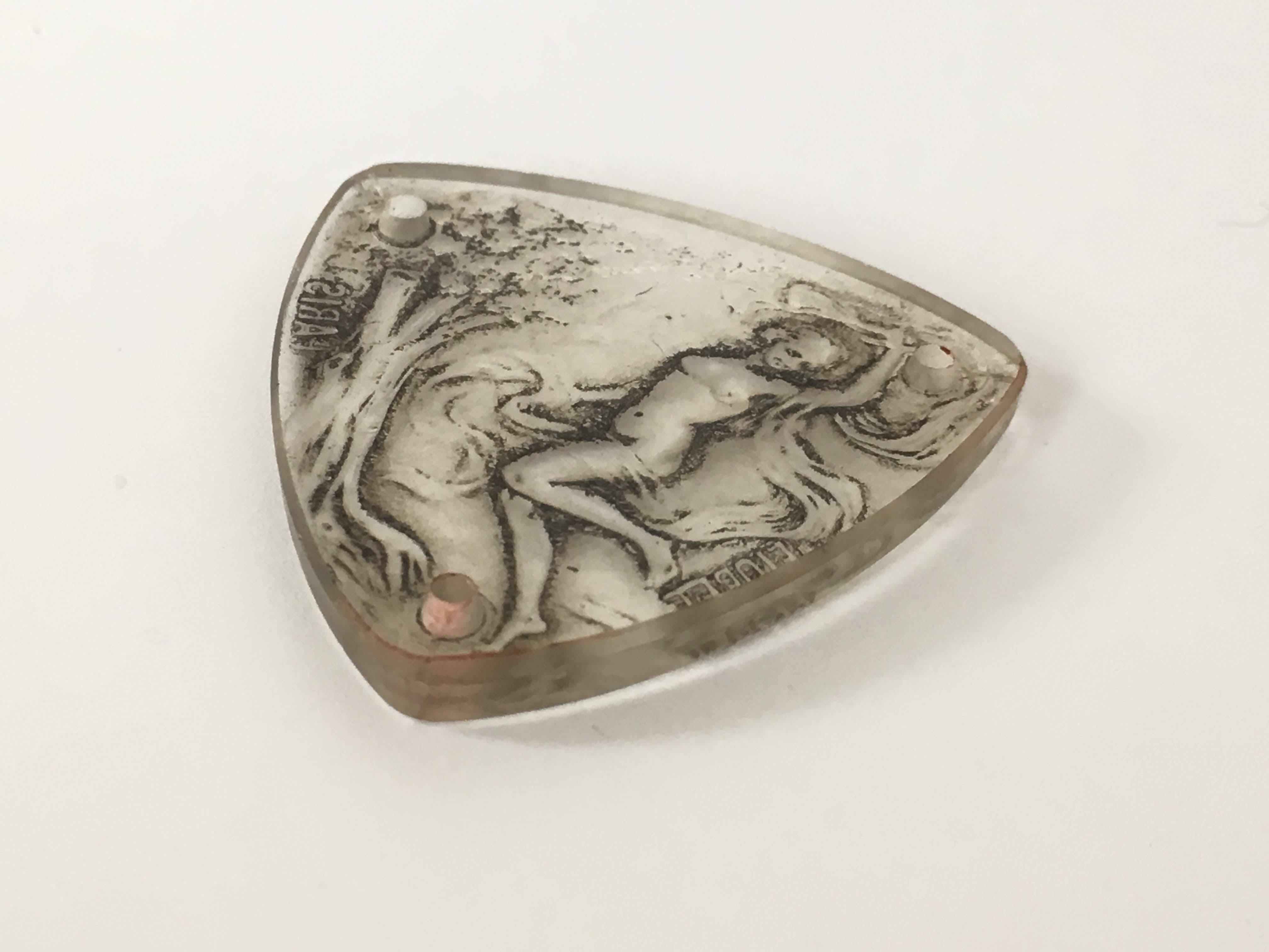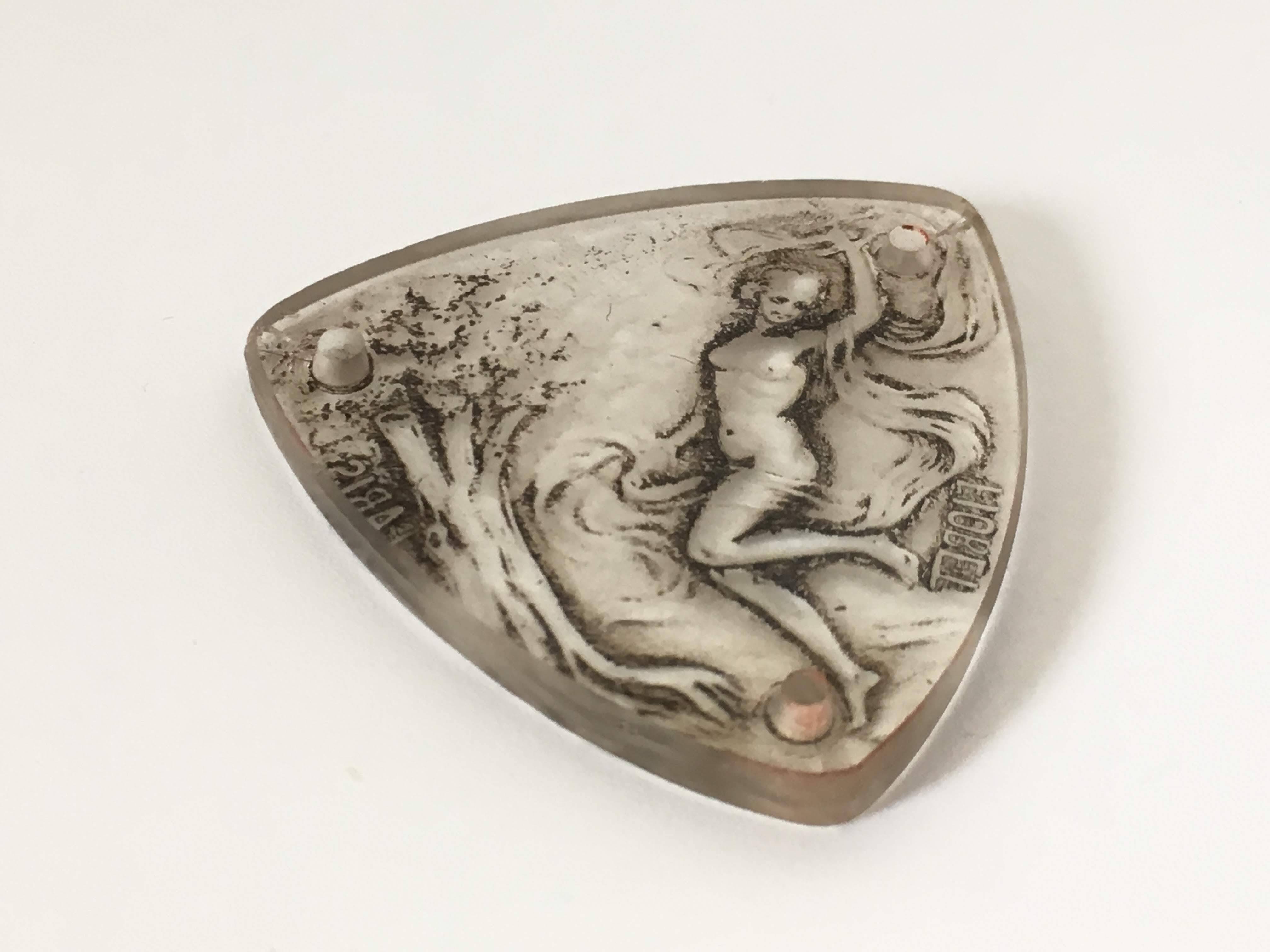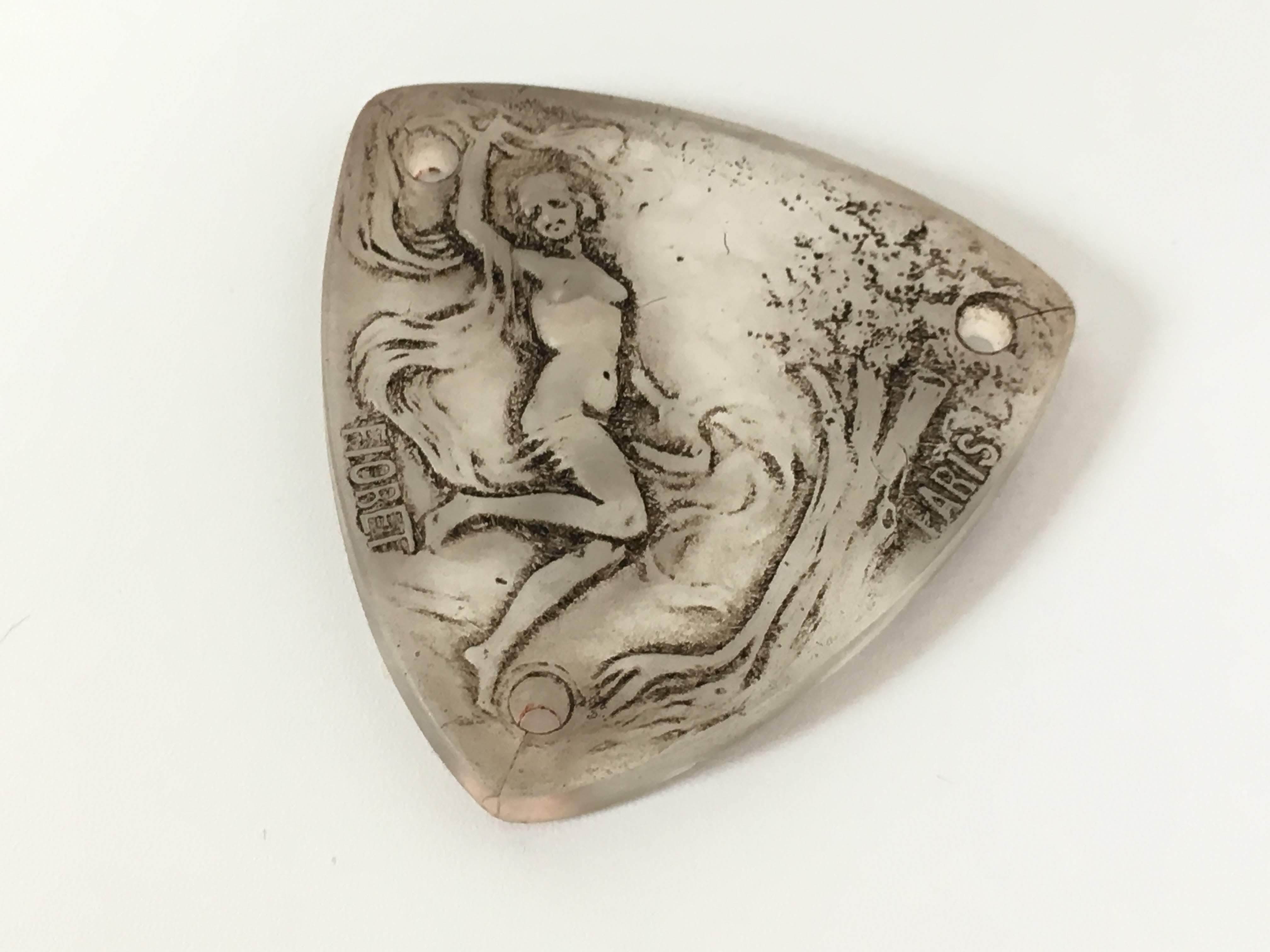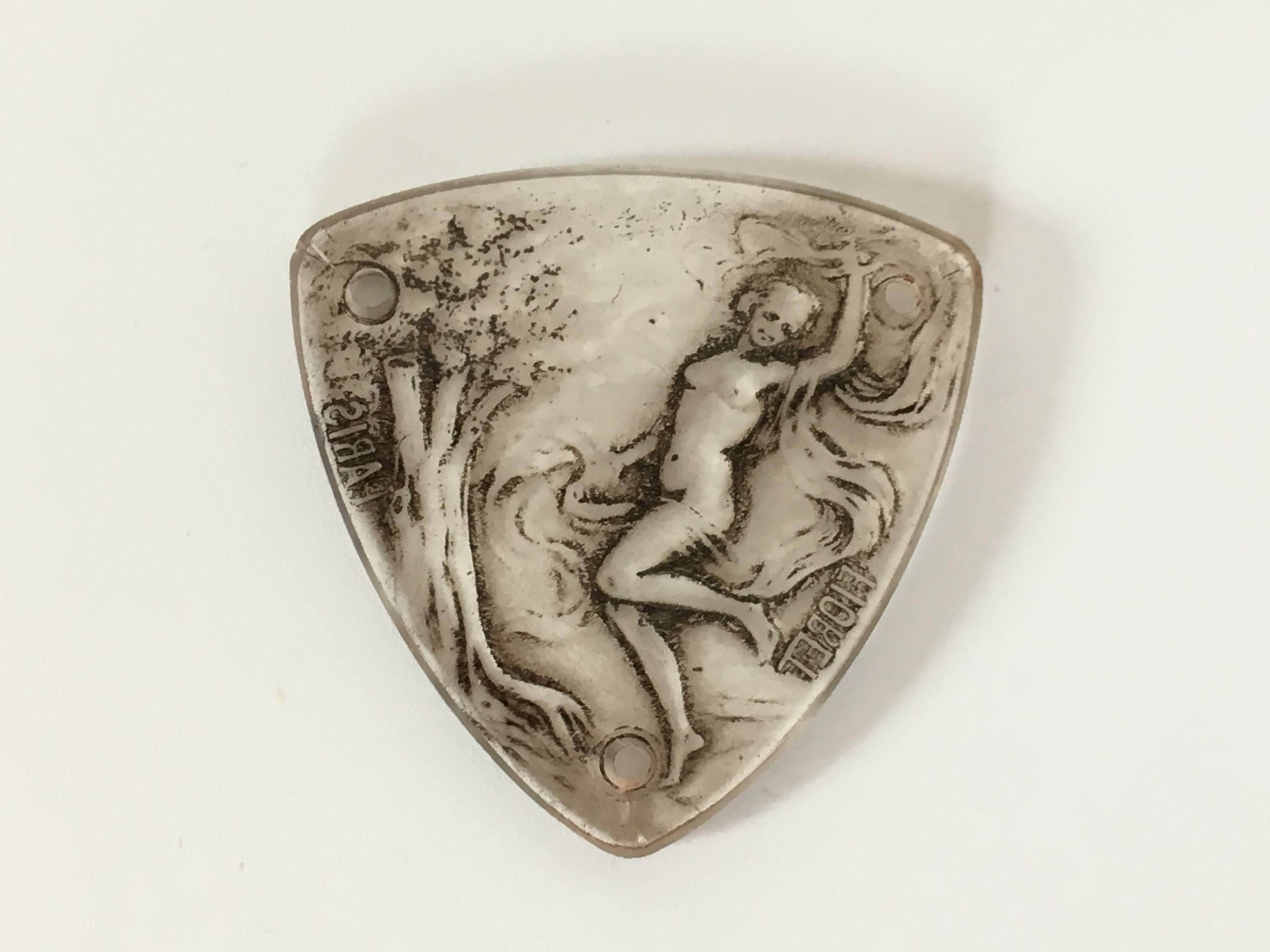ラリックが得意としたフロスト加工と併せてグレー色のパチネが全体に施されています。 パチネ彩色により女性や森の木々の陰影が強調され、非常に雰囲気のある表情に仕上がっています。