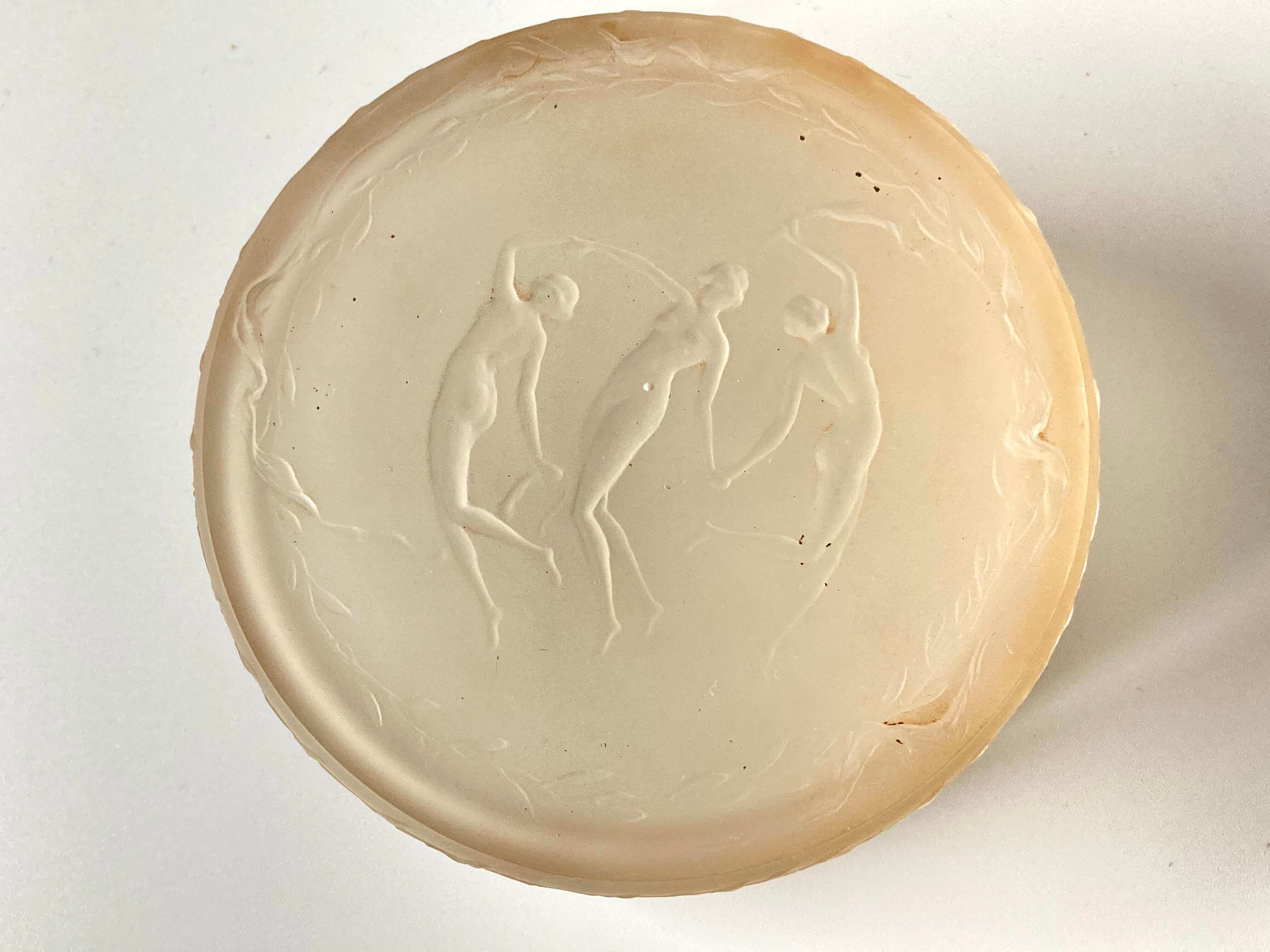 R.LALIQUE ルネ・ラリック 蓋物「TROIS FIGURINES」3人の女神 ドルセー 1912年 アンティーク パウダーボックス 小物入れ