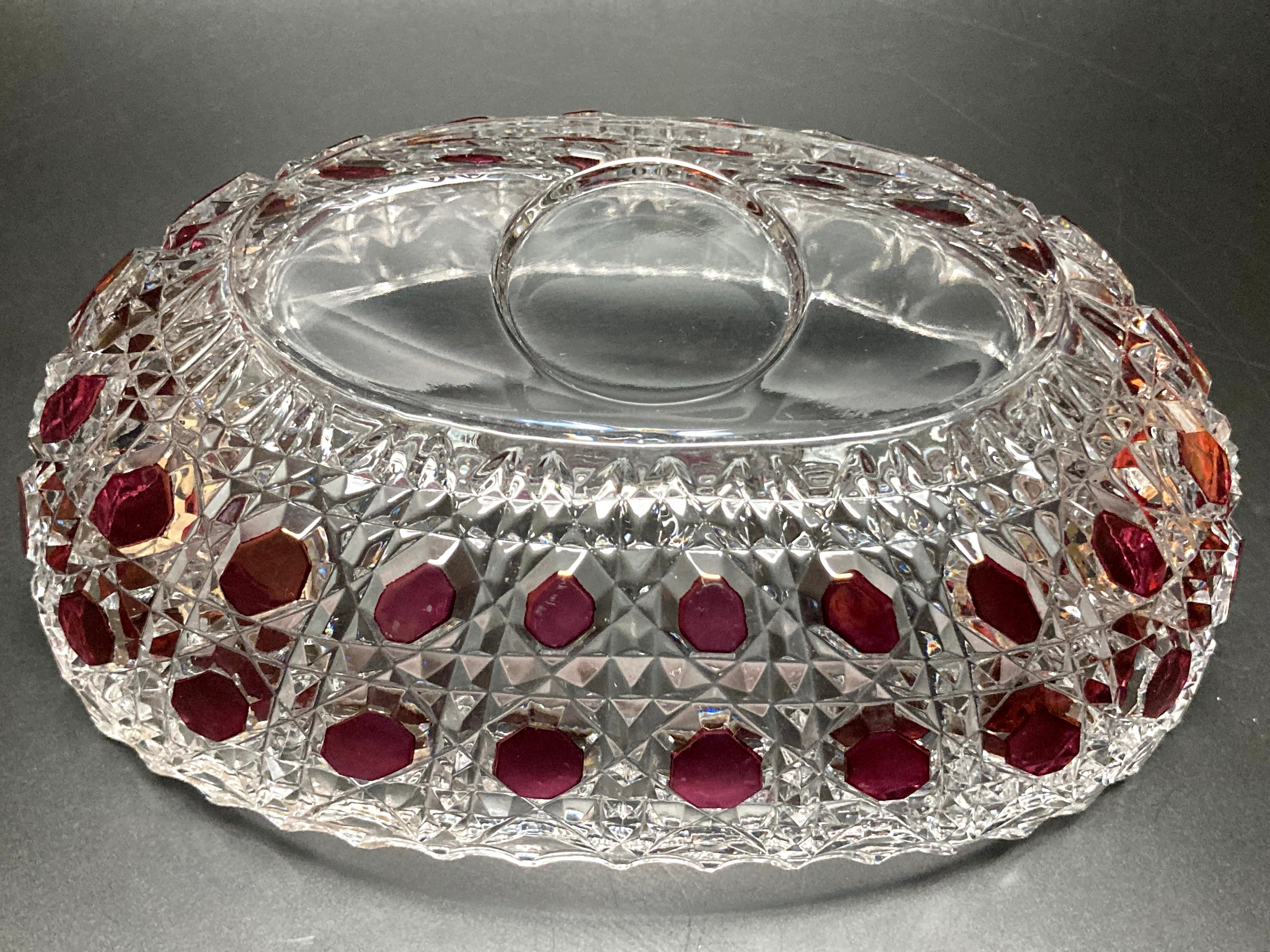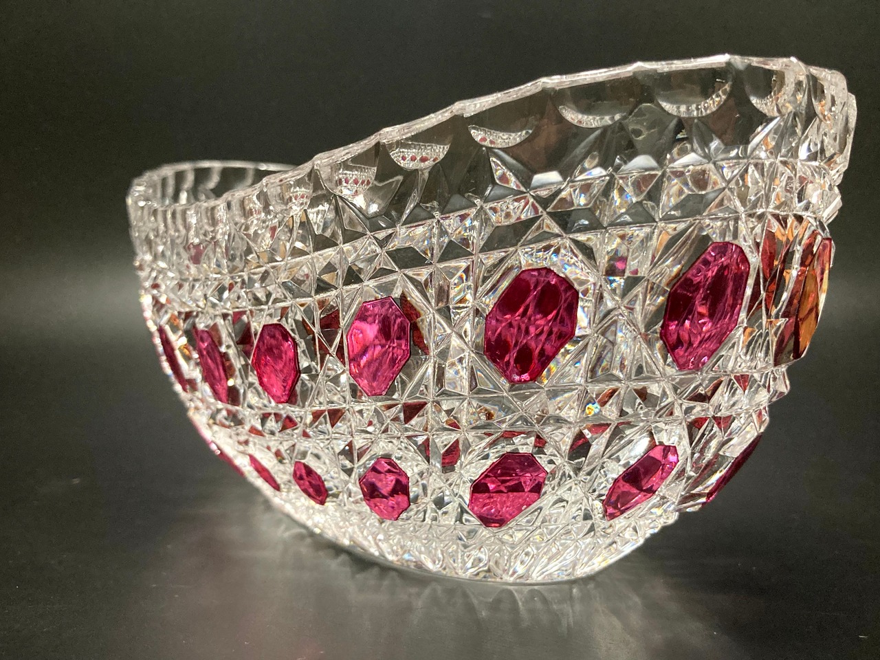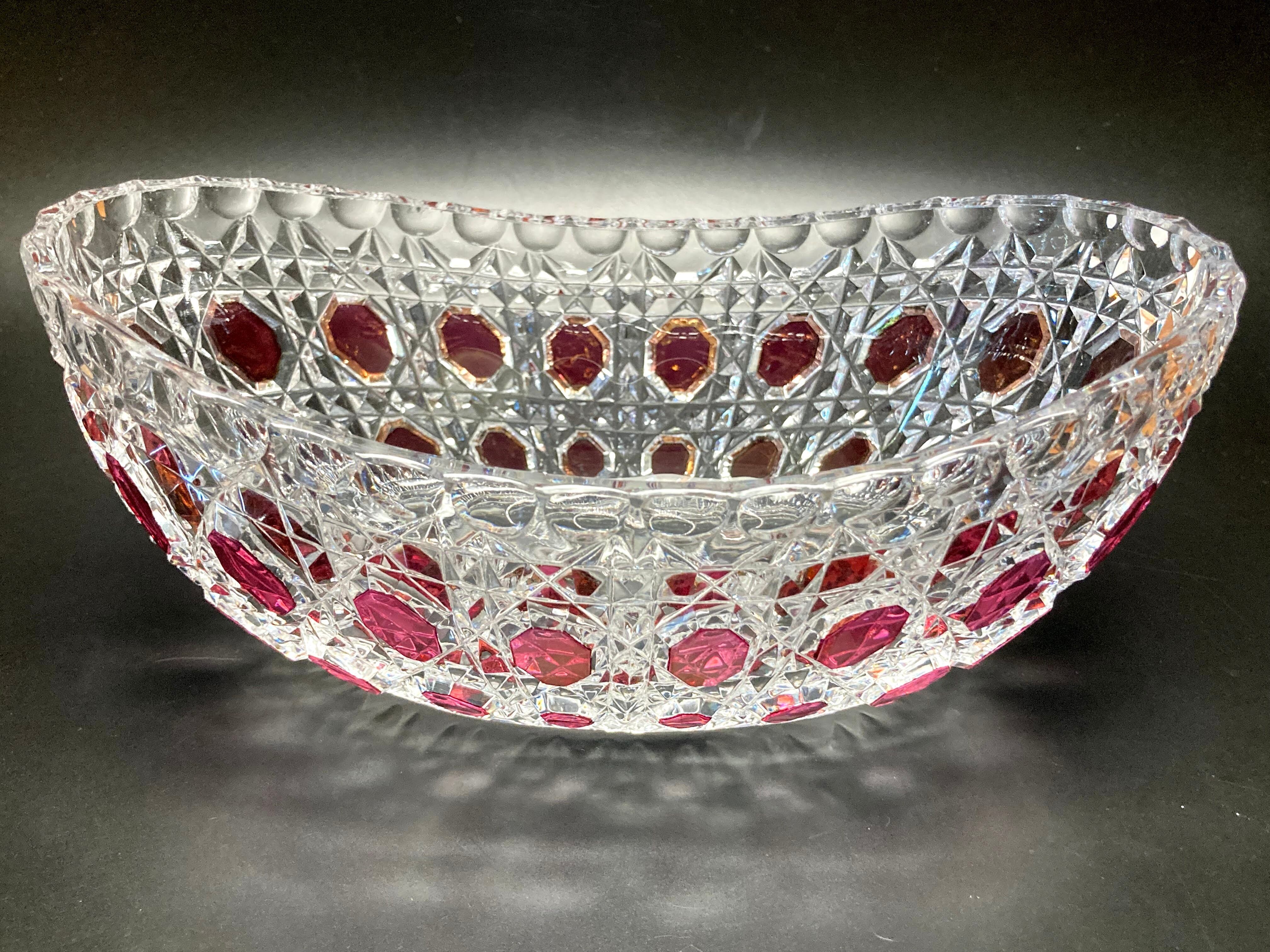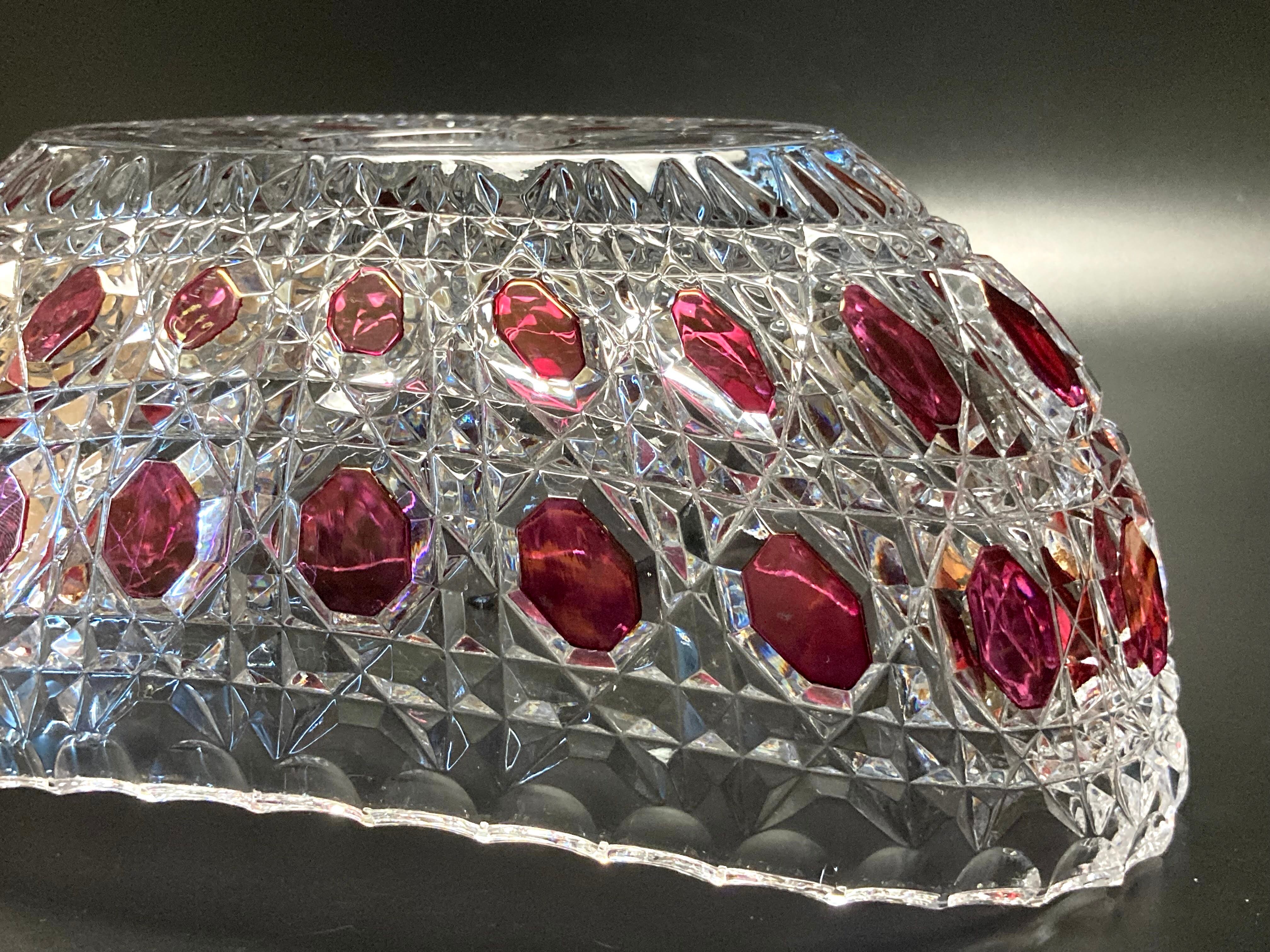 オールド バカラ ディアマン ピエーリー ボウル ルビー レッド 赤硝子 ダイヤモンド 飾鉢 大鉢 ギヤマン 切子 アンティーク