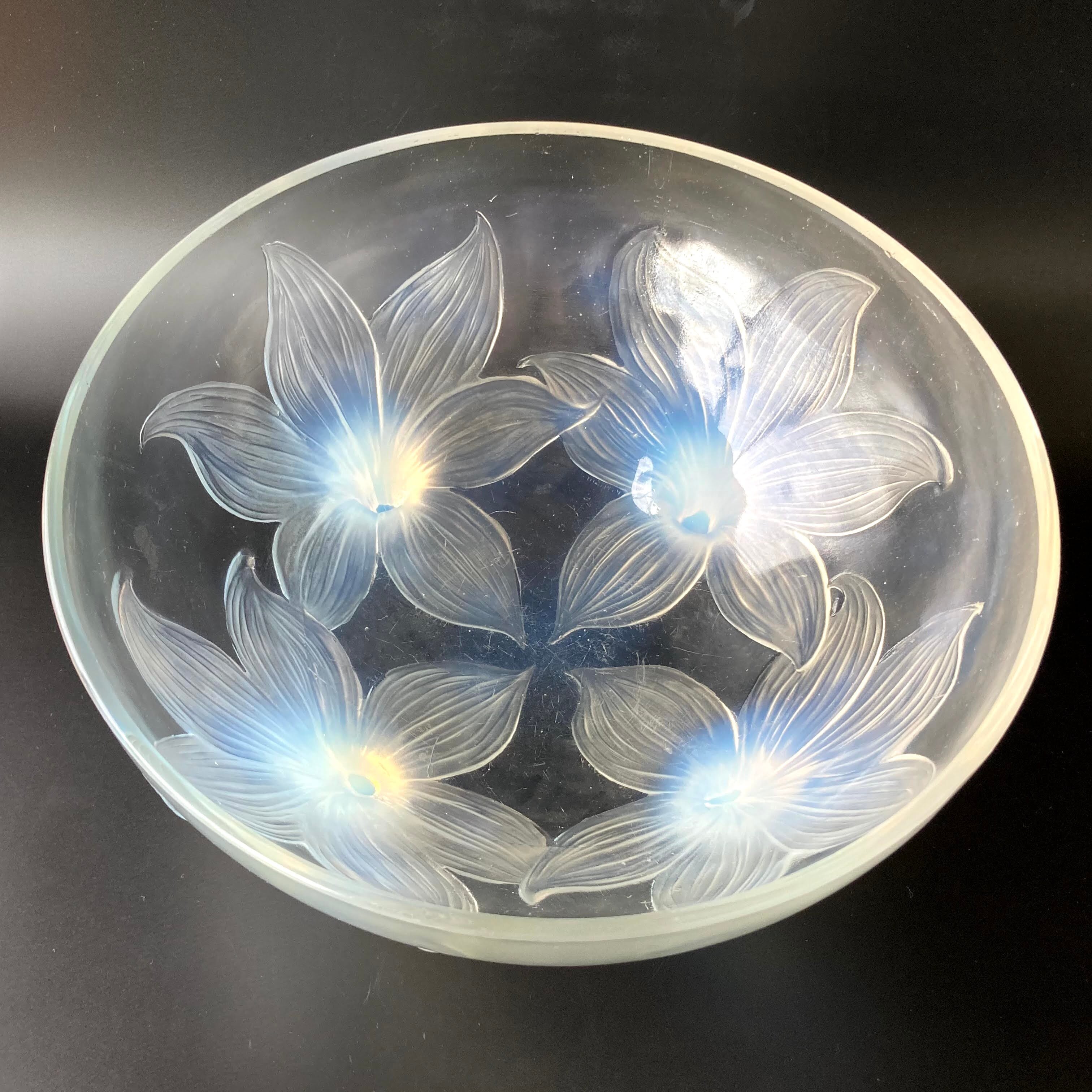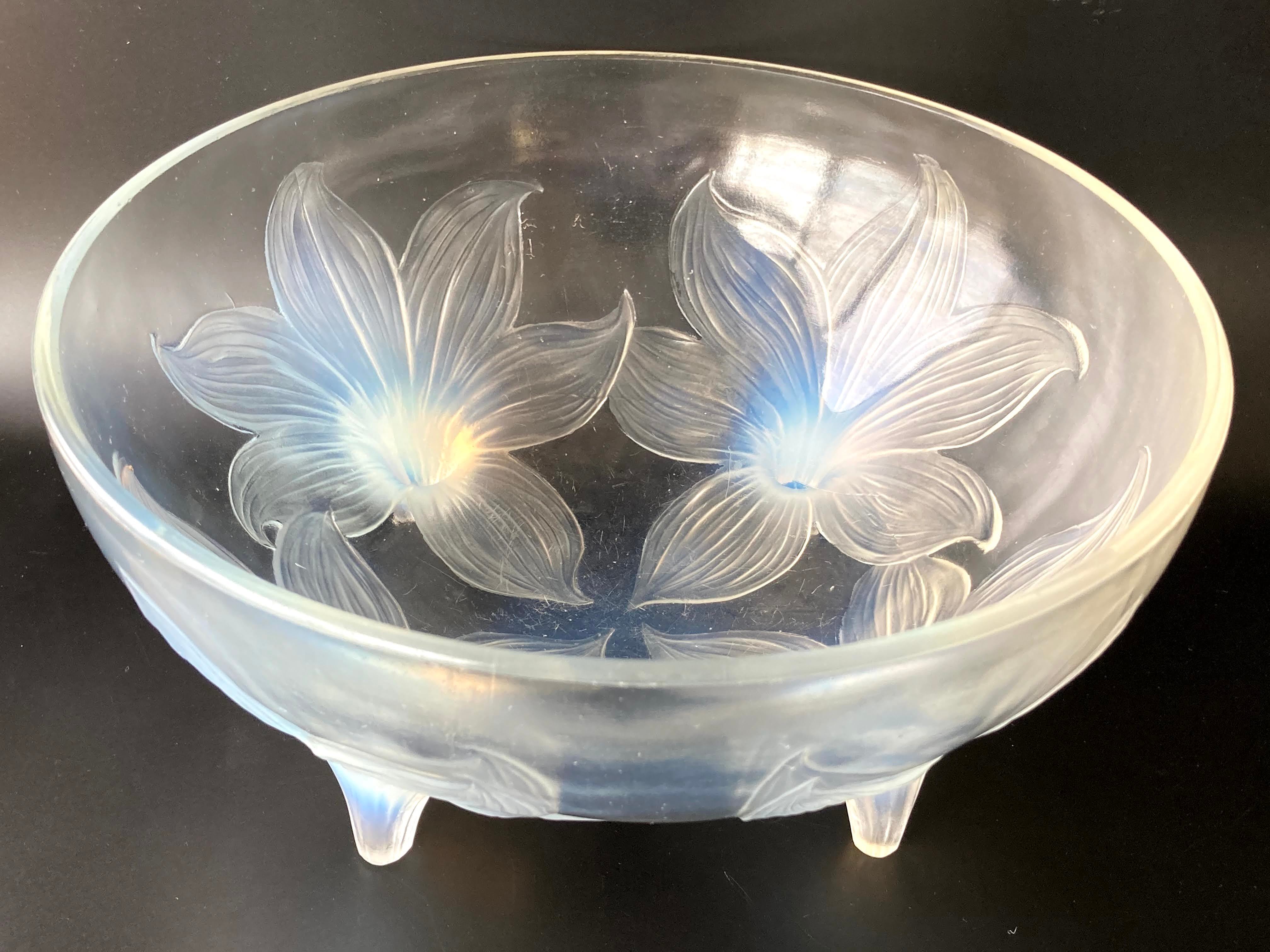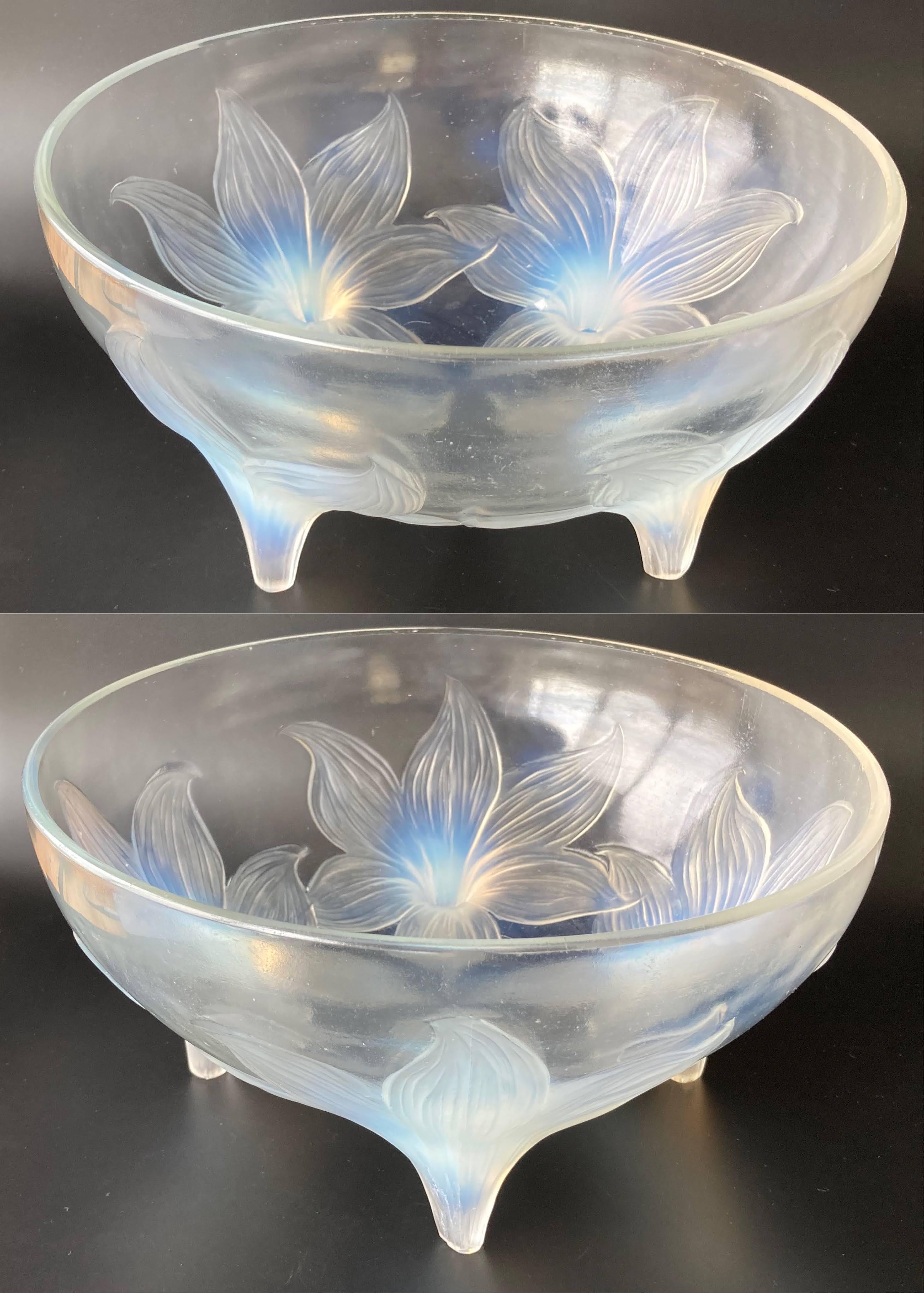 R.LALIQUE ルネ・ラリック「LYS」リス 百合 脚付硝子鉢 ボウル オパールセント 1924年 アンティーク