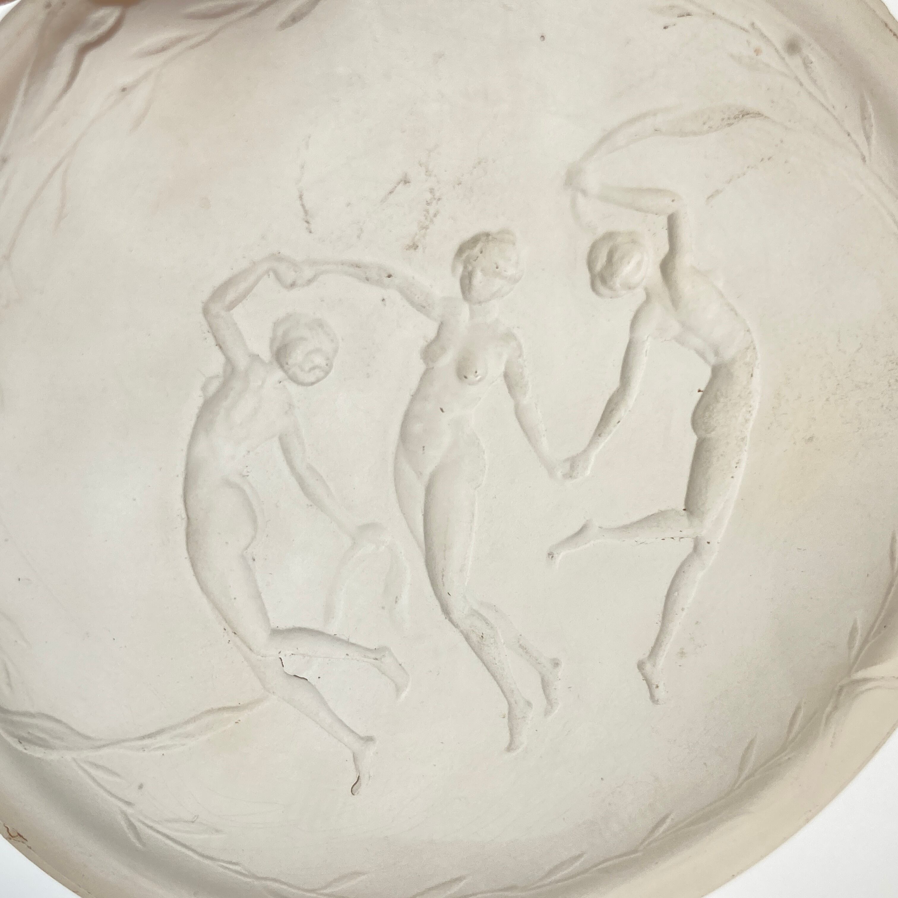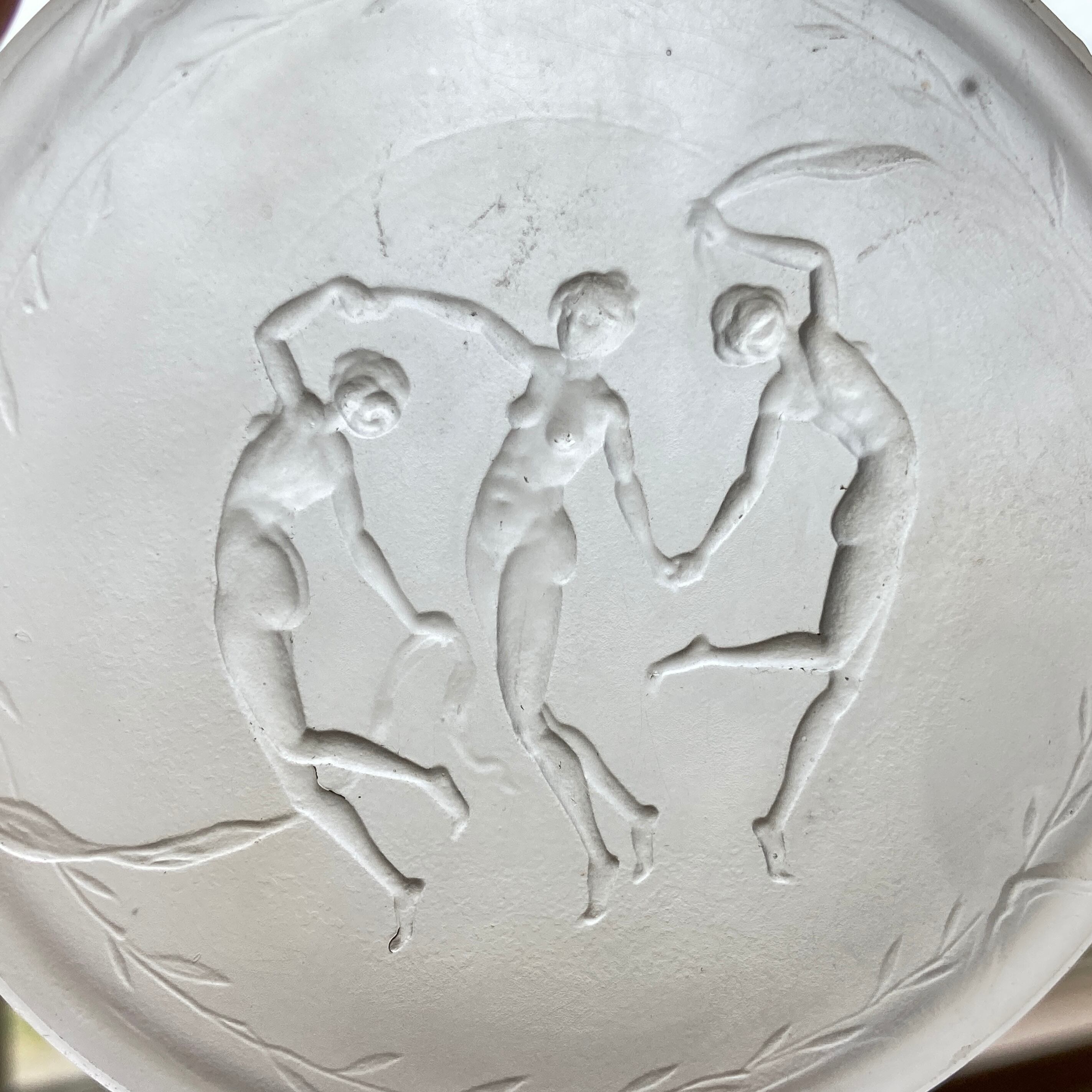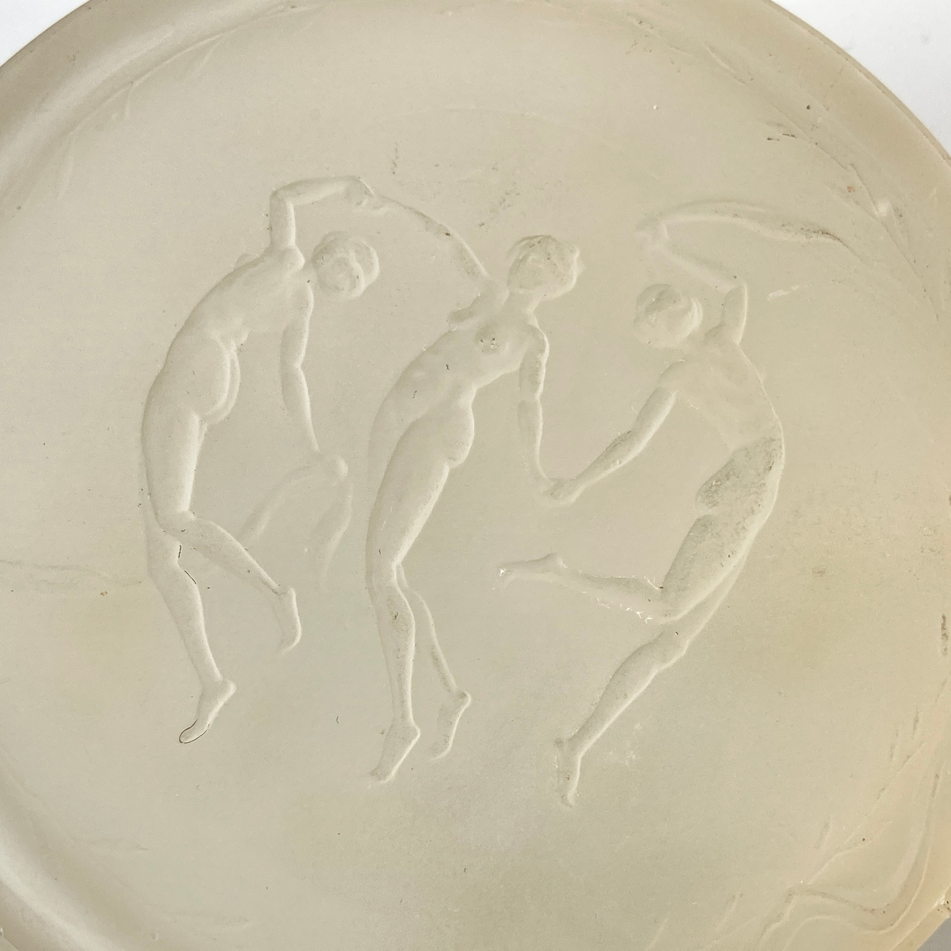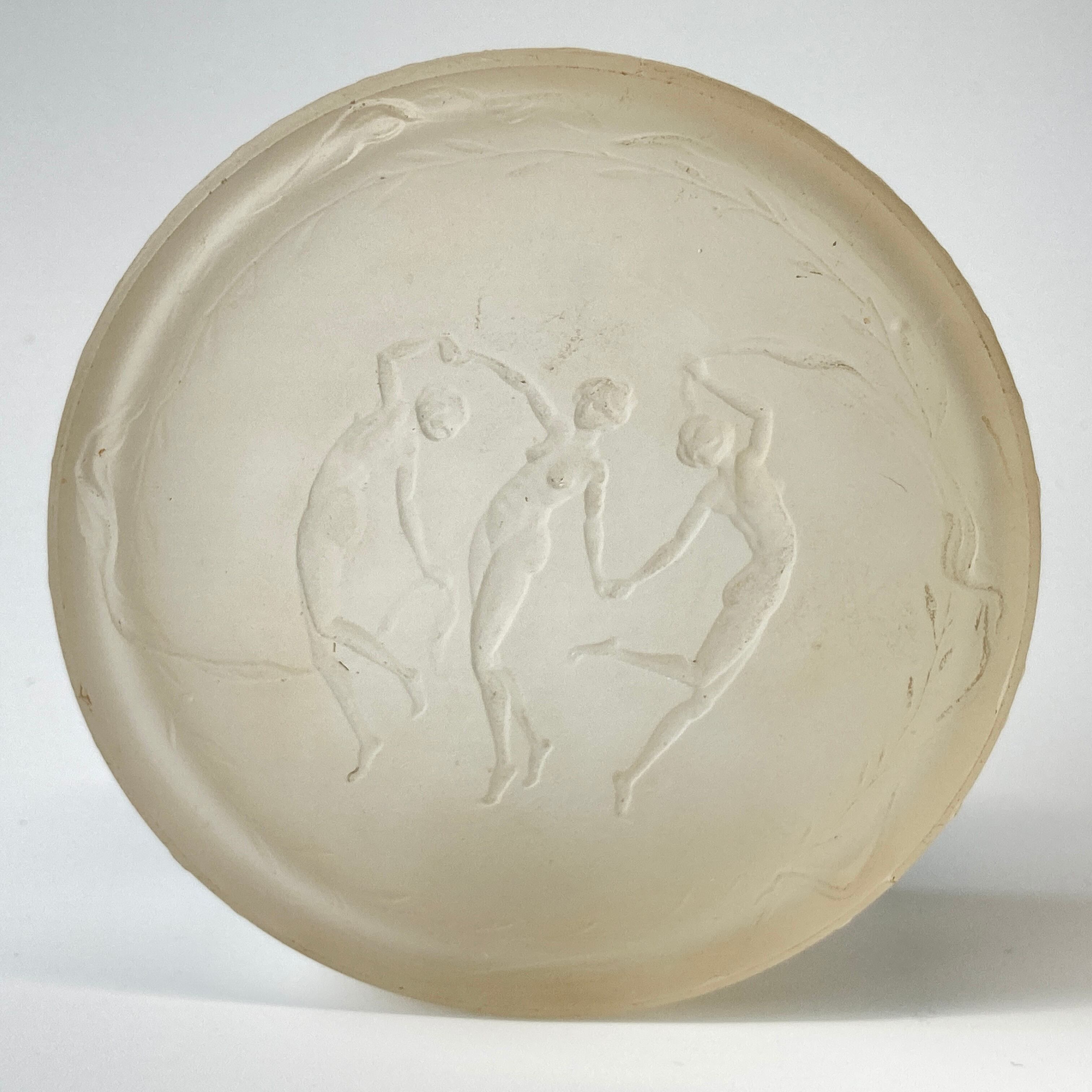 プレス成形で作られた円形の入れ物には、森の中を優雅に舞う3人の女神の姿が生き生きとデザインされています。