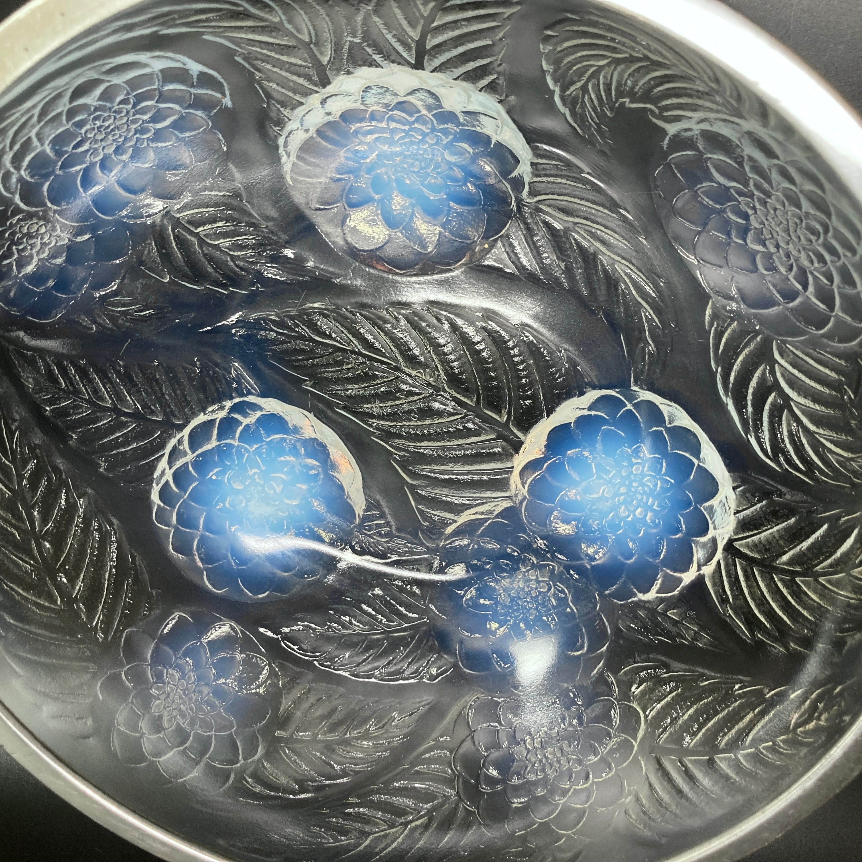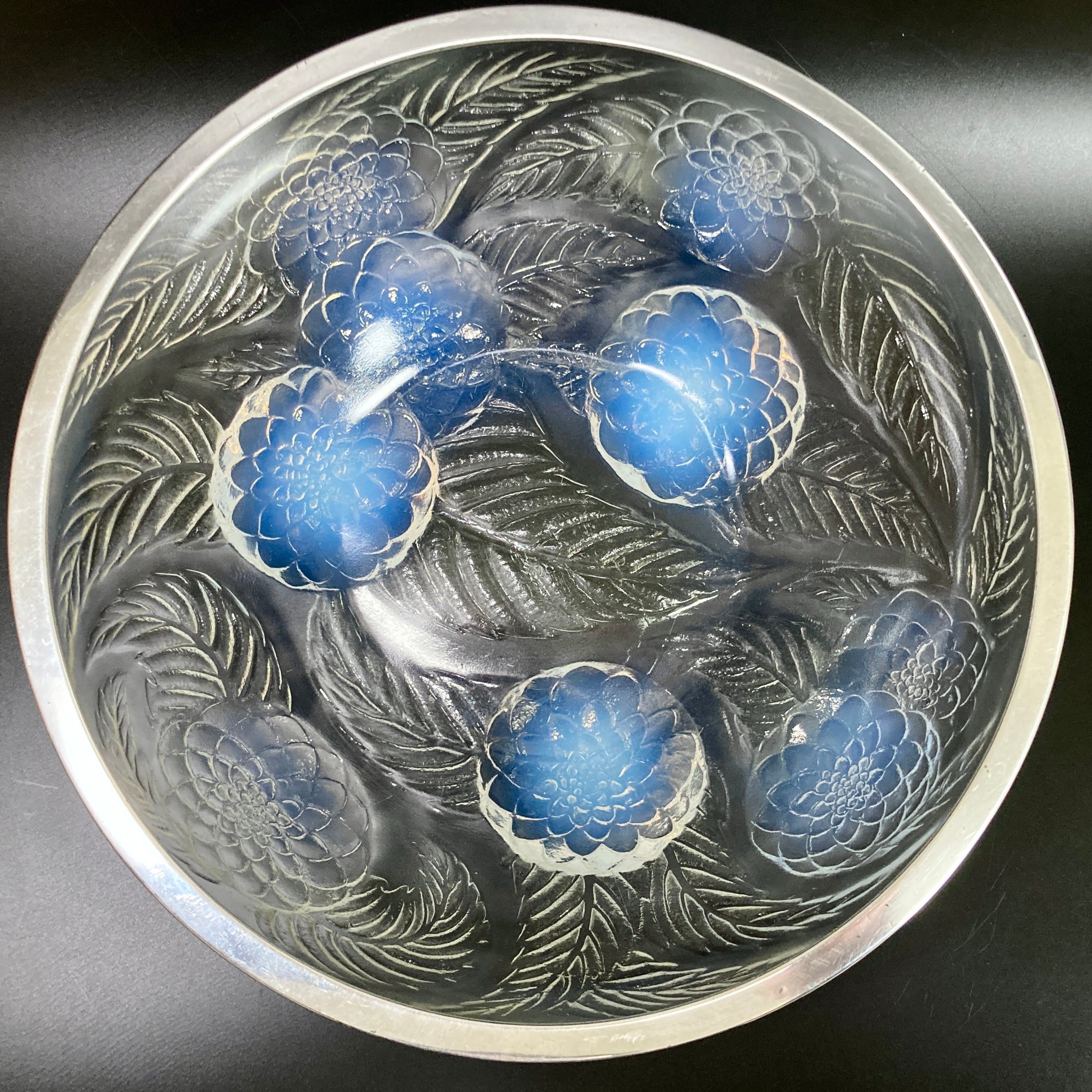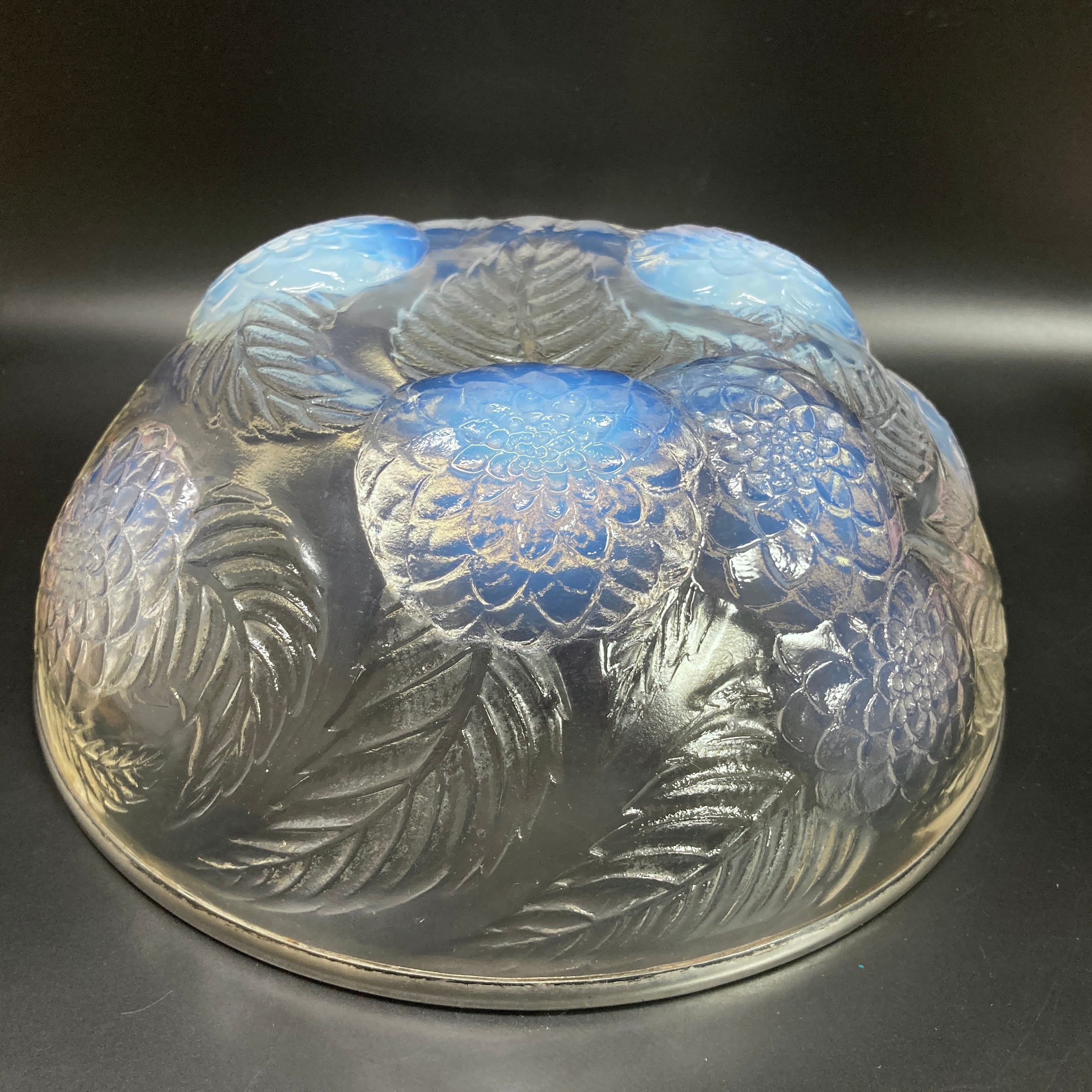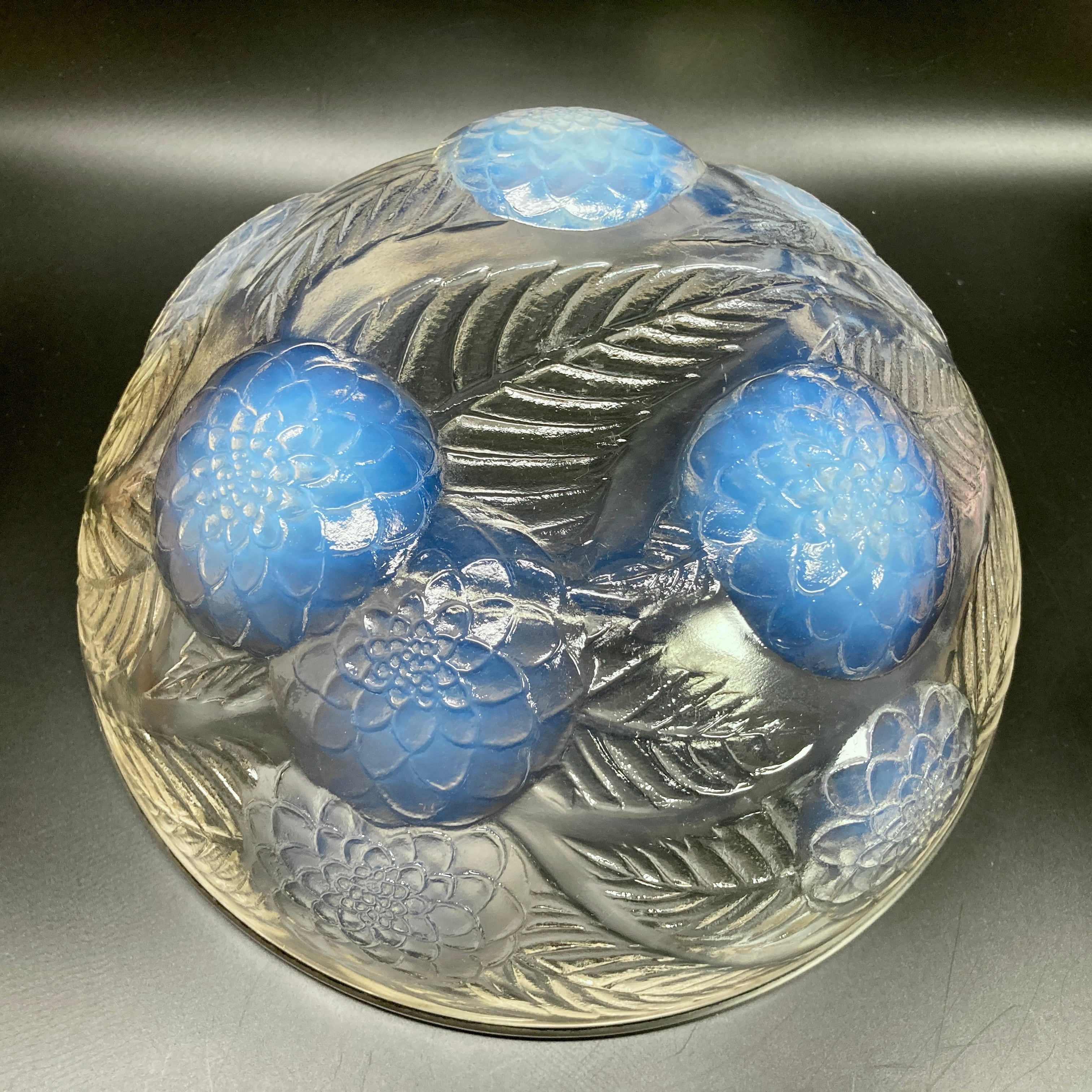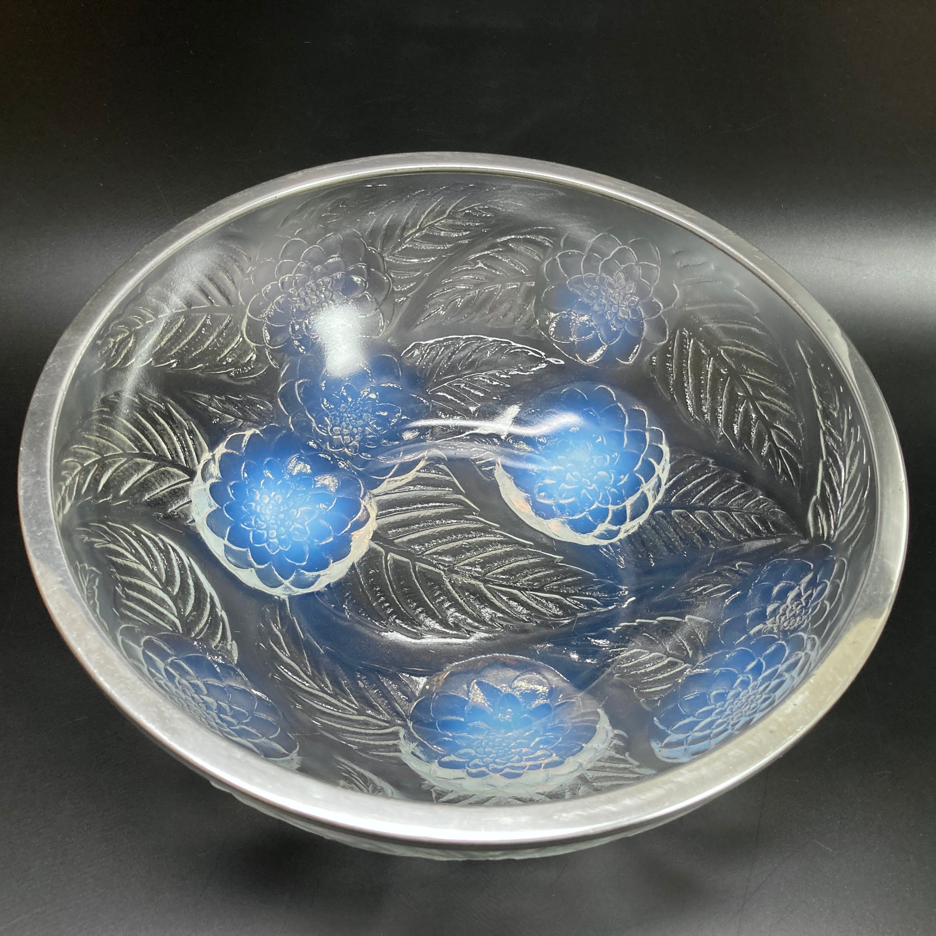 こちらはルネラリックが1921年頃にデザインした作品「Dahlias」の硝子鉢です。