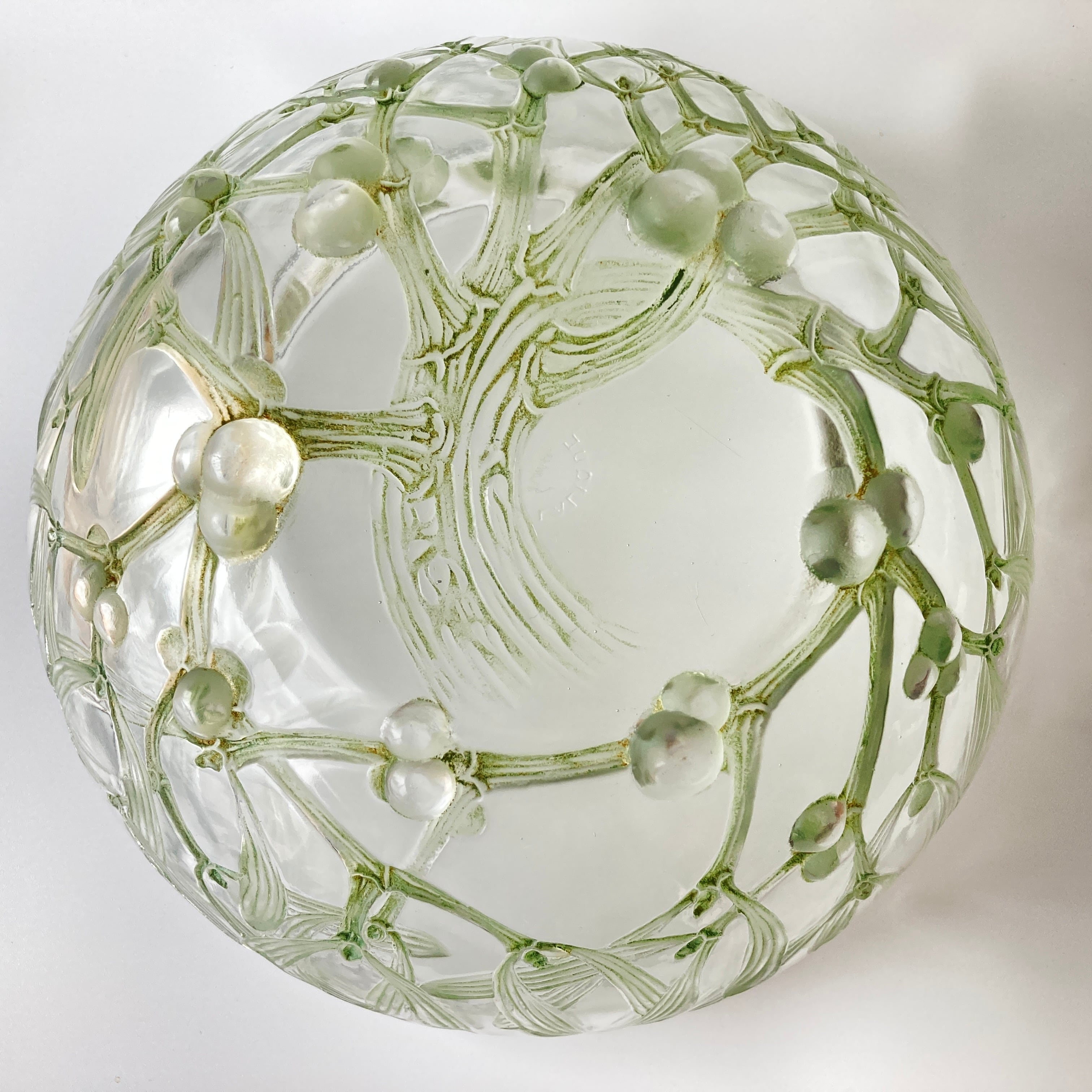 宿木の実の部分が鉢を支える脚となっており、女性美や自然をテーマとしたラリックならではの大変ユニークな作品です。