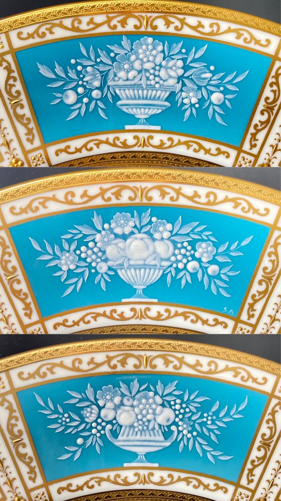 特に、バックスタンプや底面にまで金が用いられるのはミントンの作品の中でも上級のグレードの証であり、明らかに、当時制作されていた高級メゾン向けの製品とも一線を画す、最上級のお品であることがわかります。