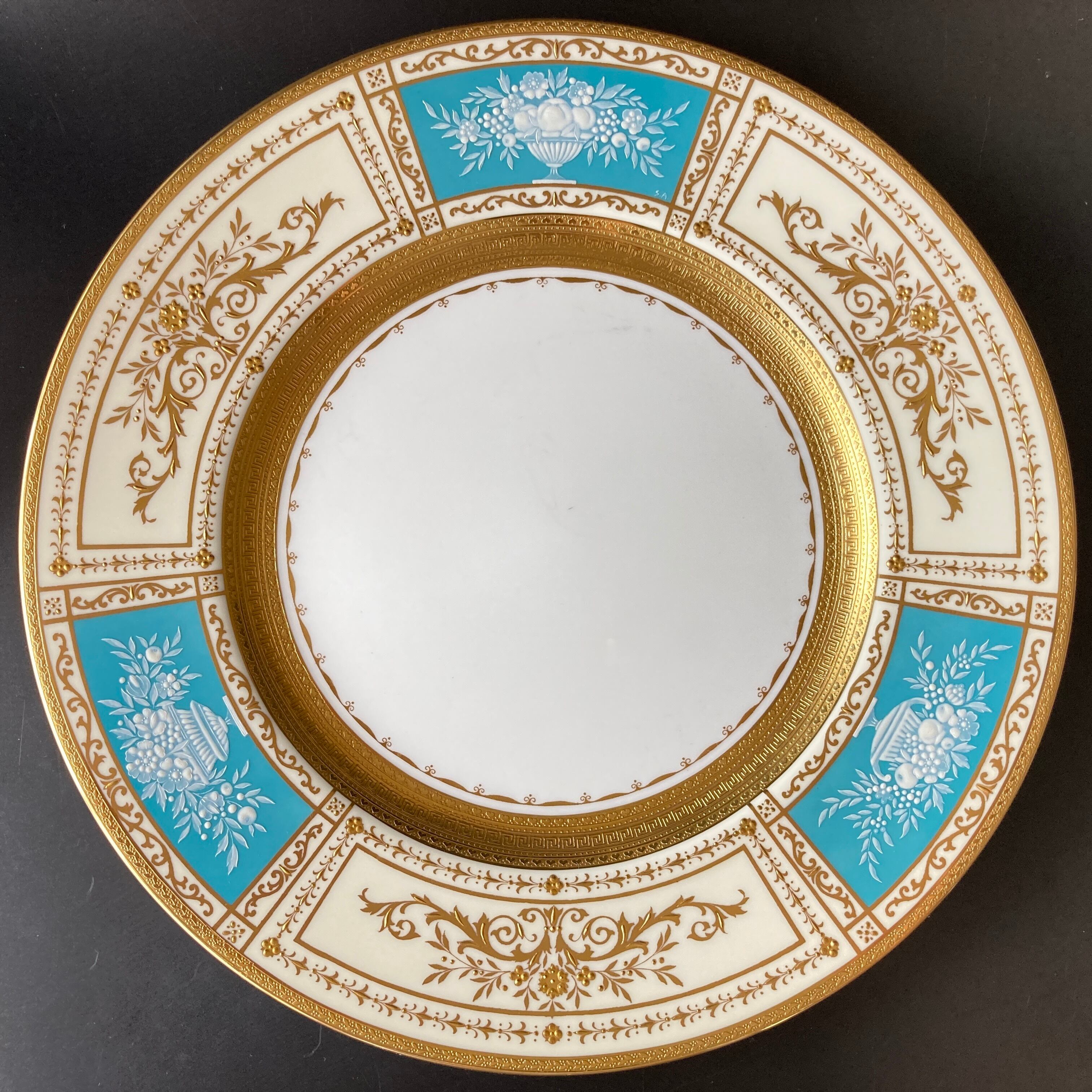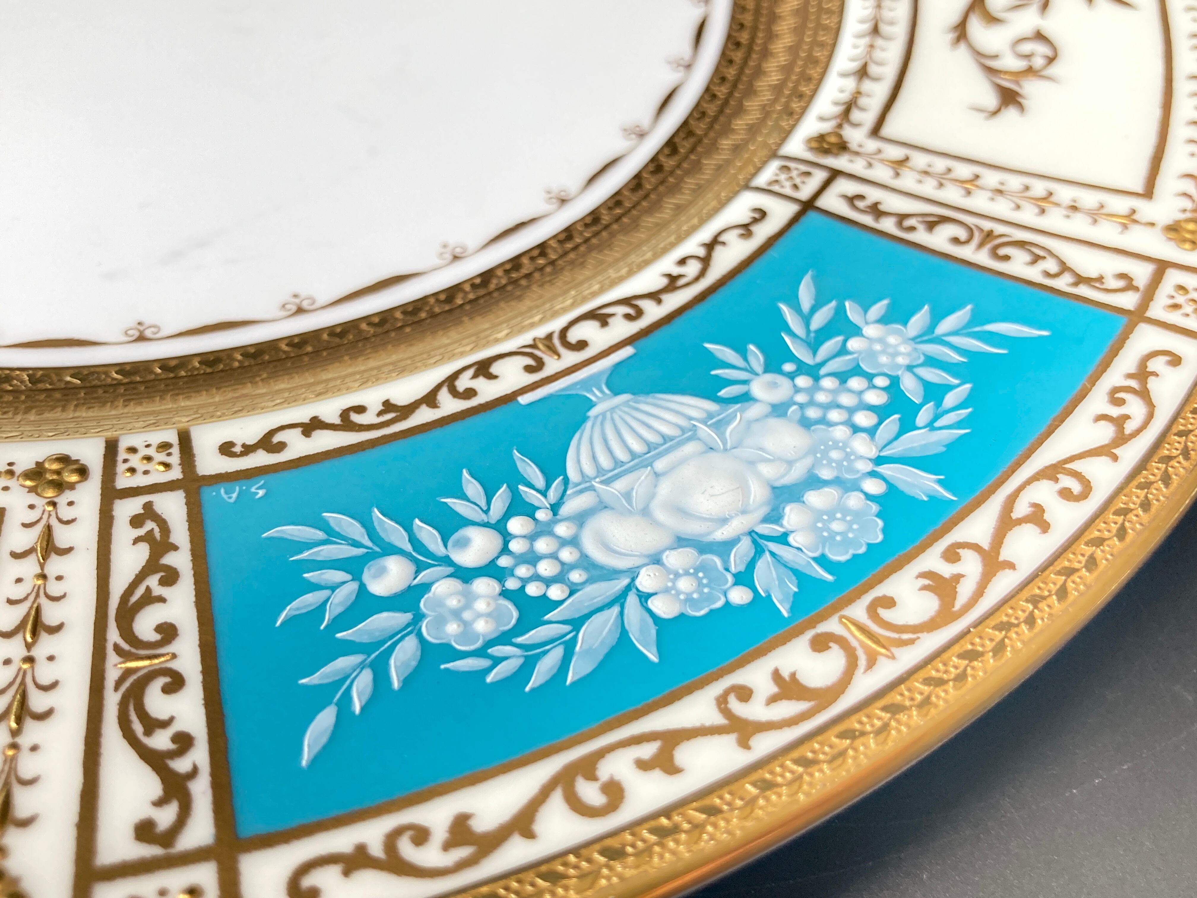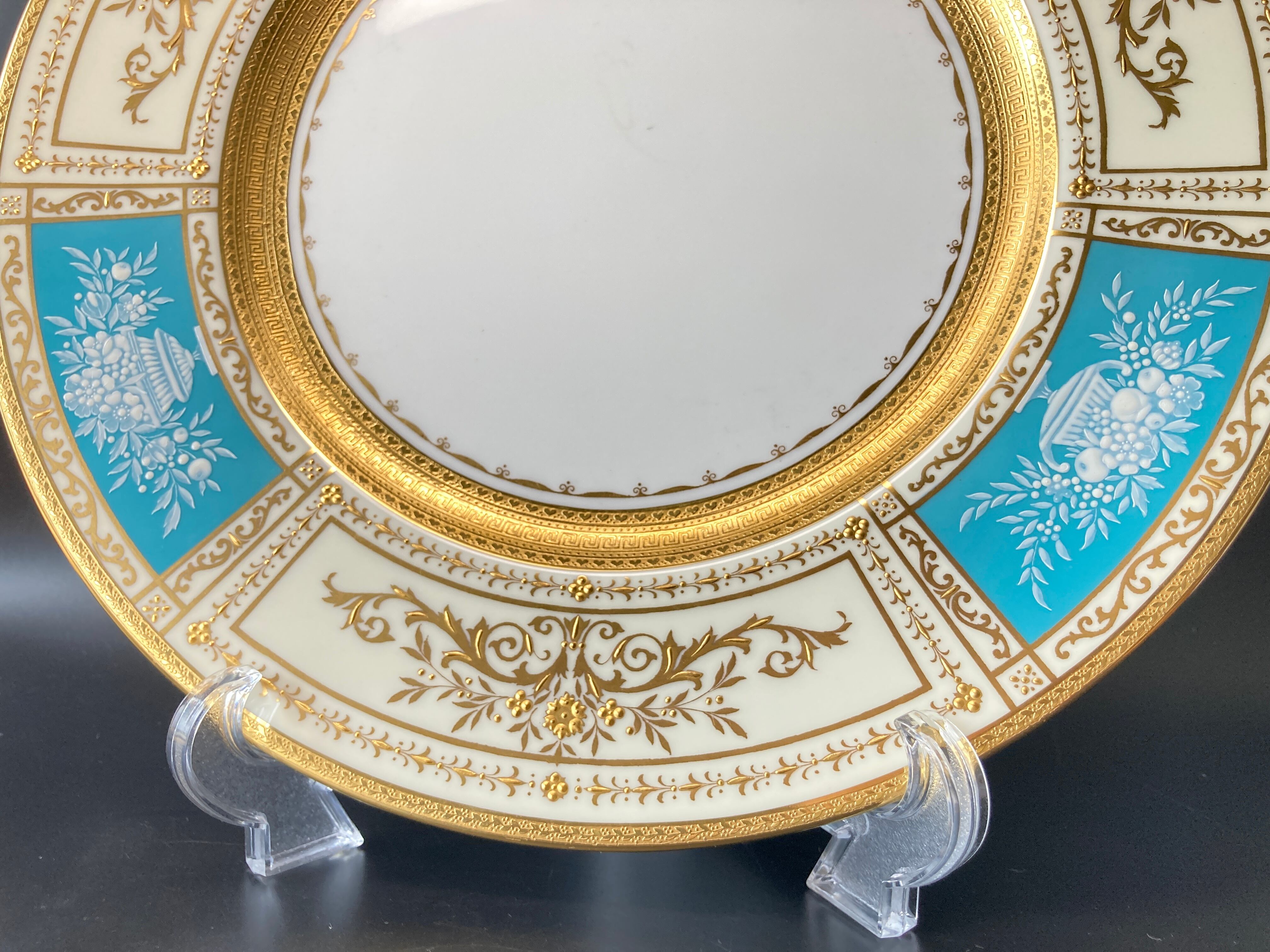 ミントン T.Goode特注 果実華盃紋 金彩 パテ・シュール・パテ ターコイズブルー キャビネット ディナープレート 大皿