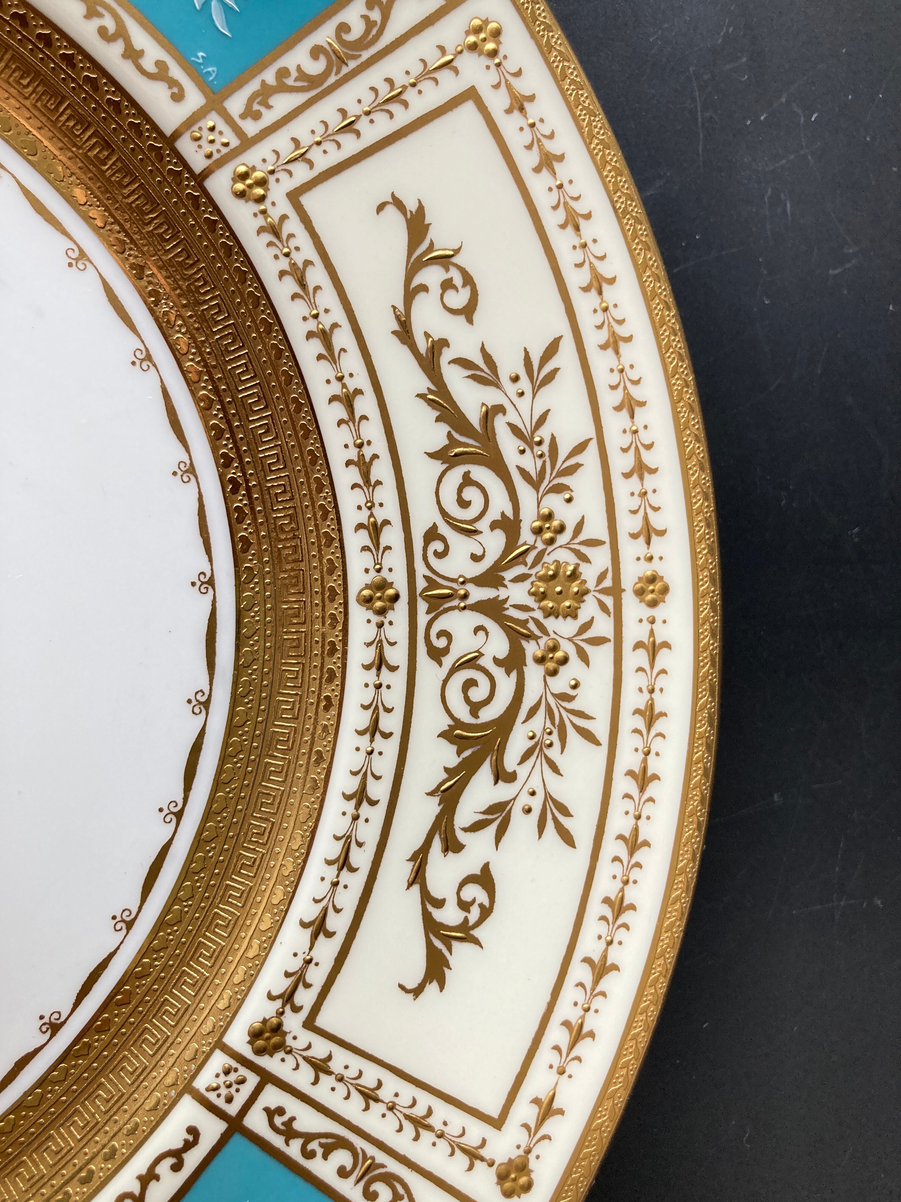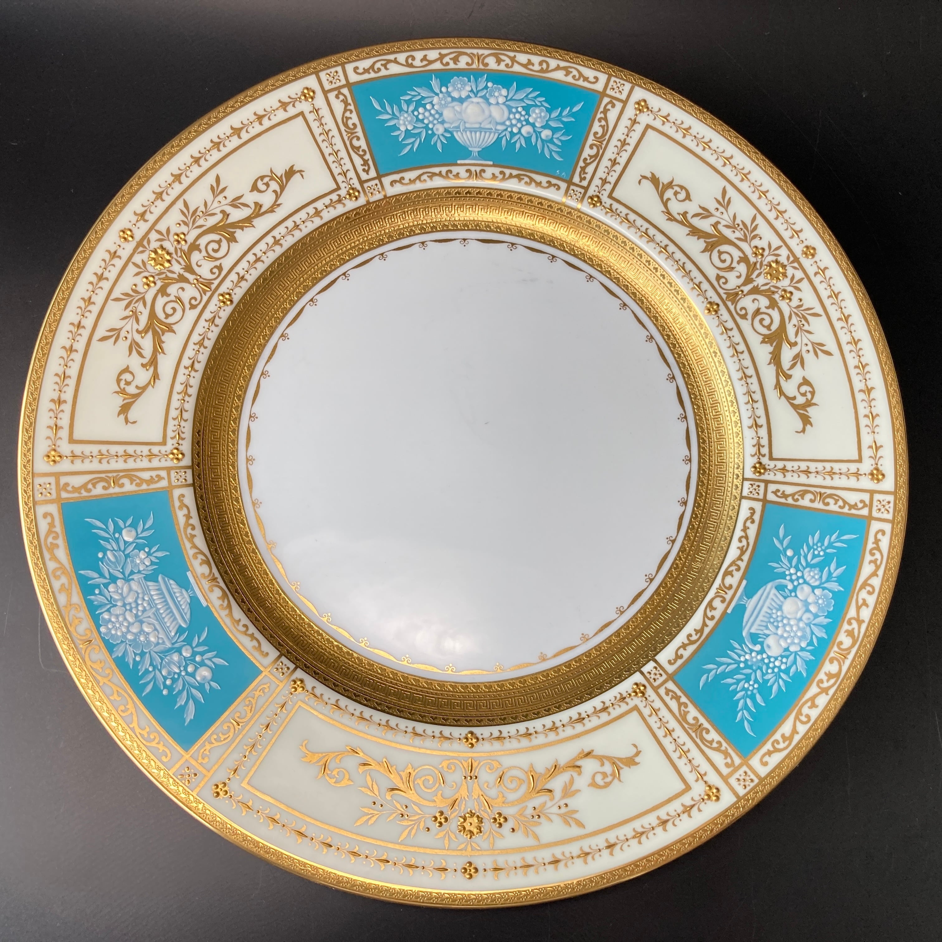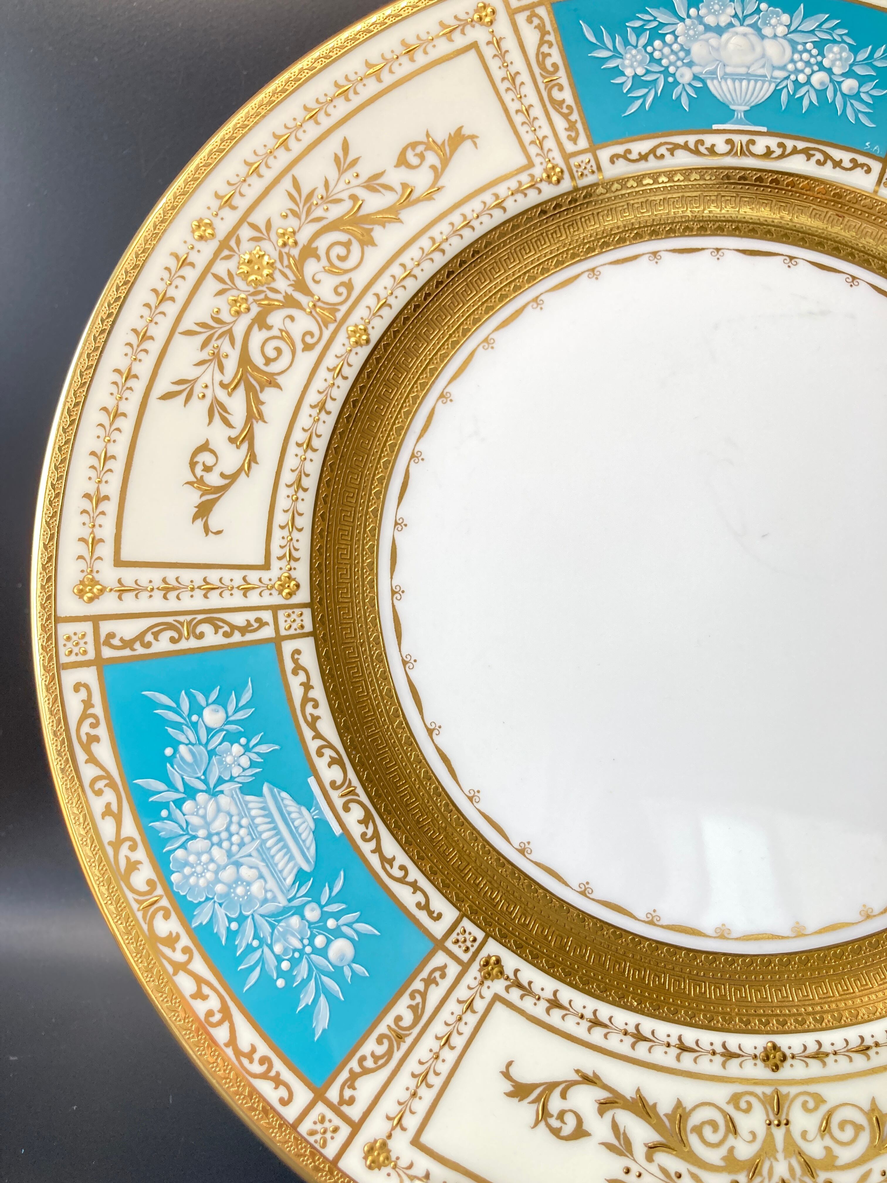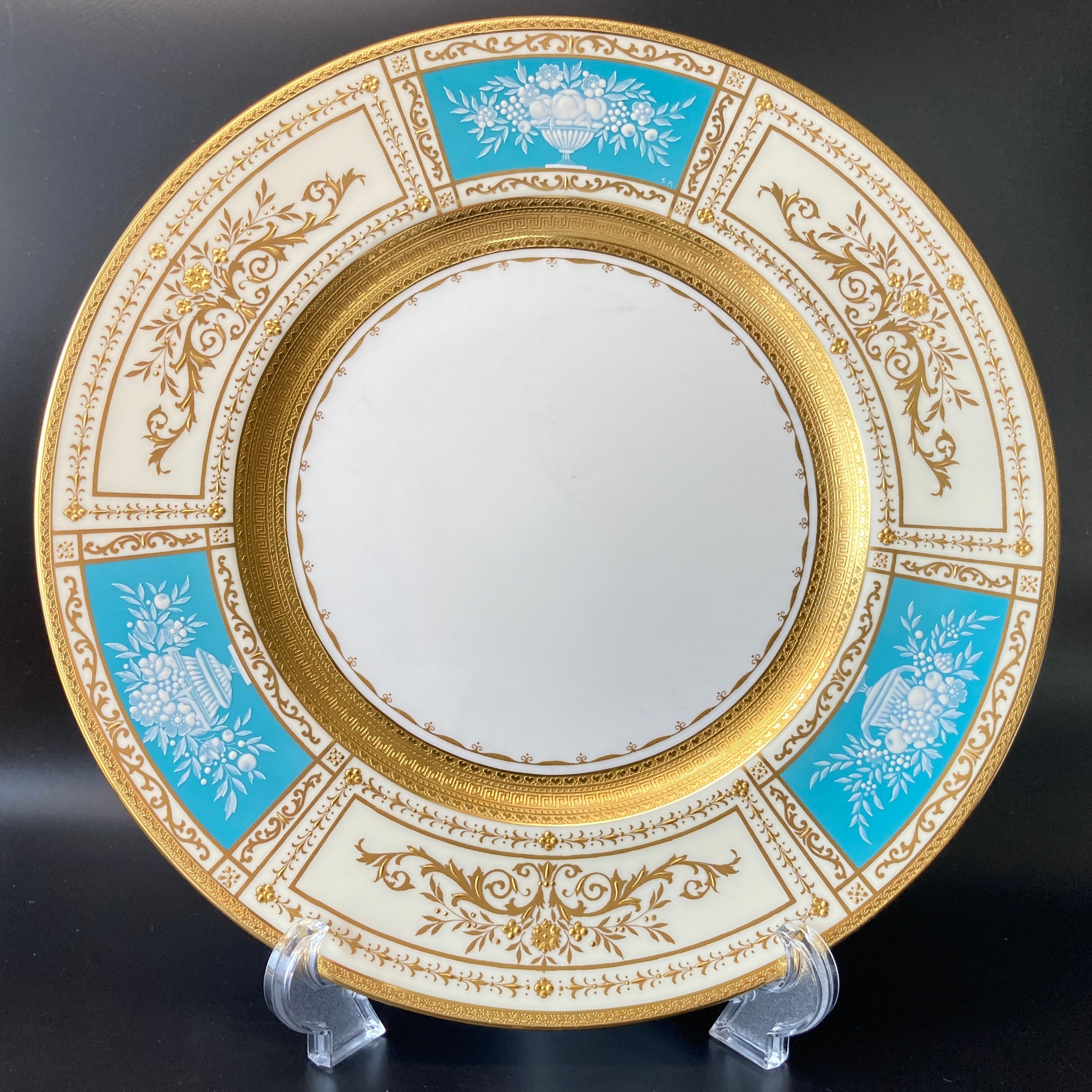 ミントン T.Goode特注 果実華盃紋 金彩 パテ・シュール・パテ ターコイズブルー キャビネット ディナープレート 大皿