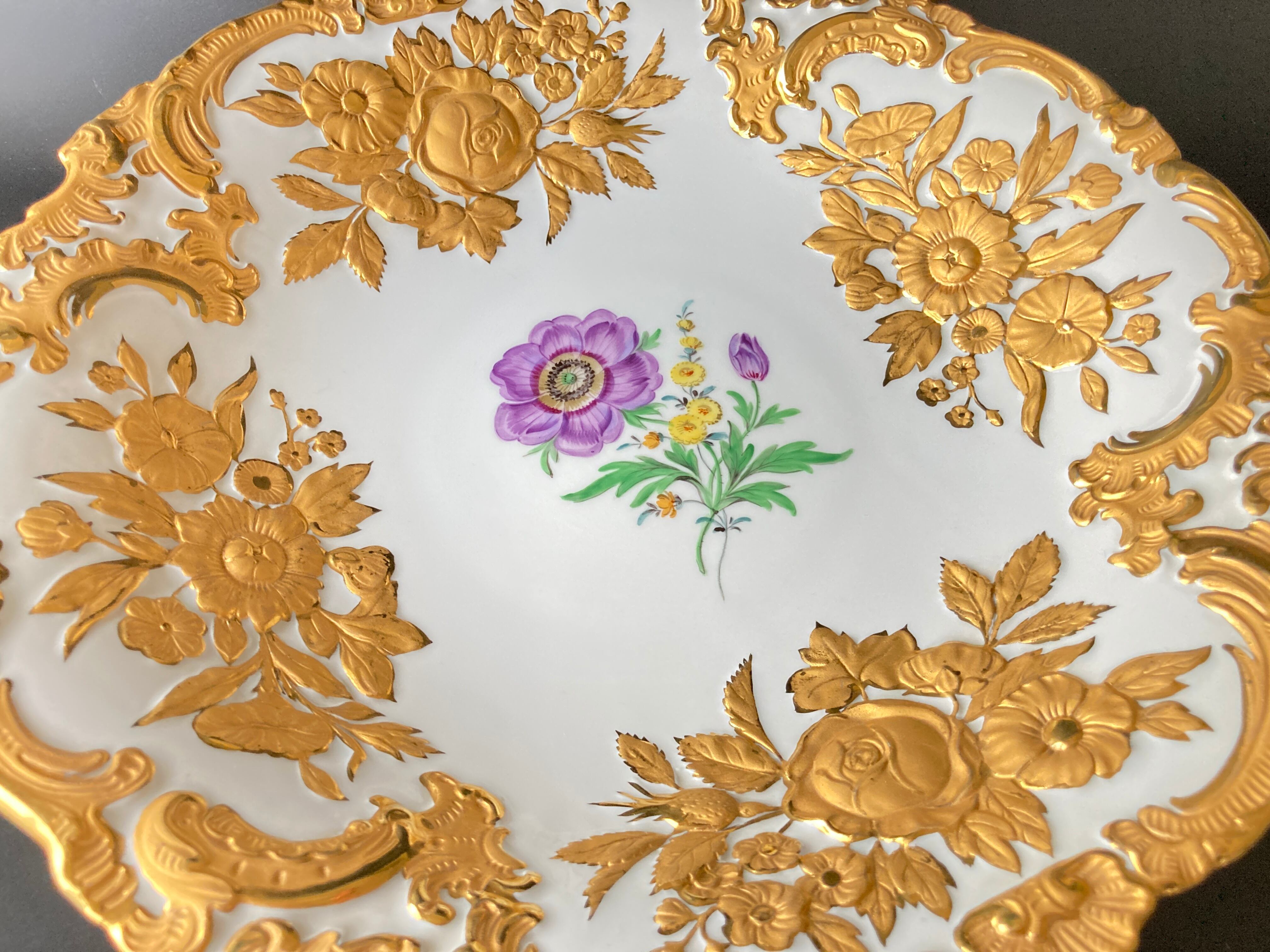 こちらはドイツを代表する名窯マイセンの名品、最高峰ラインに位置する豪華な金彩が施された特大サイズの飾り皿です。