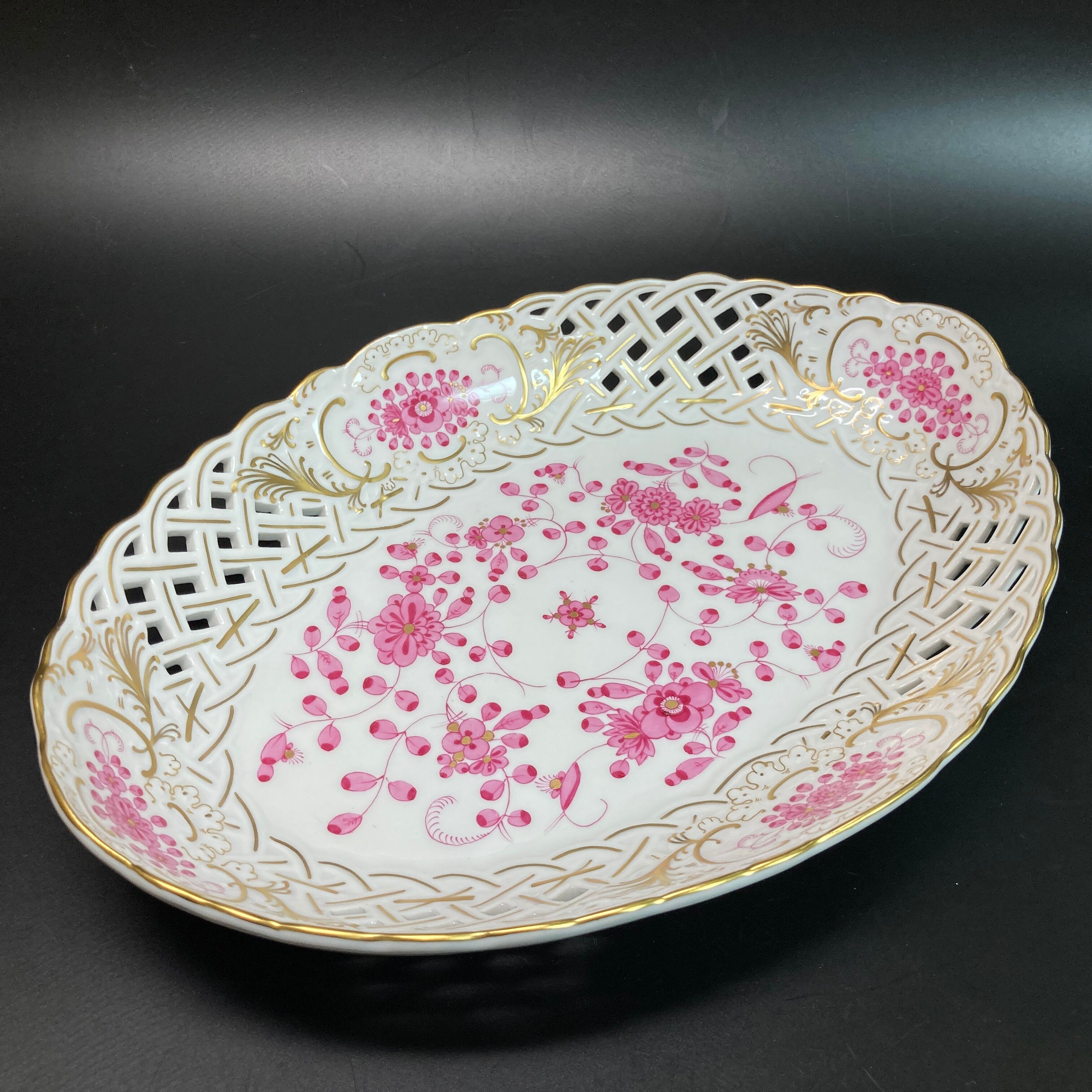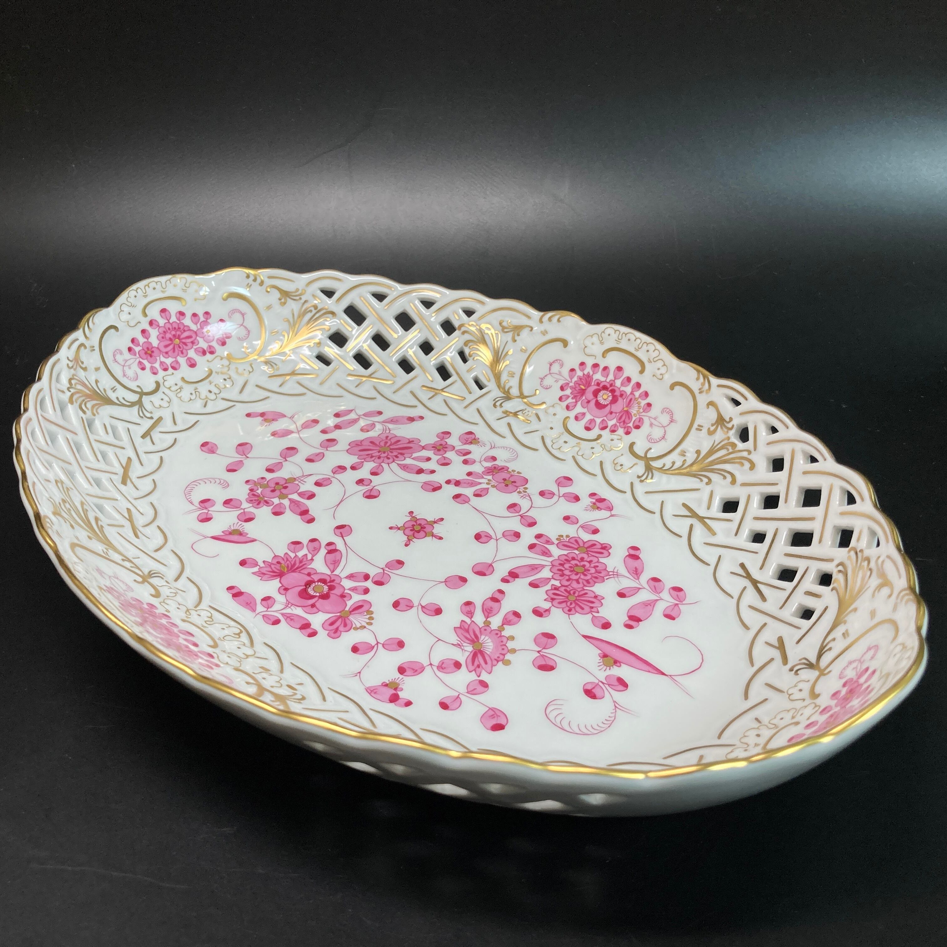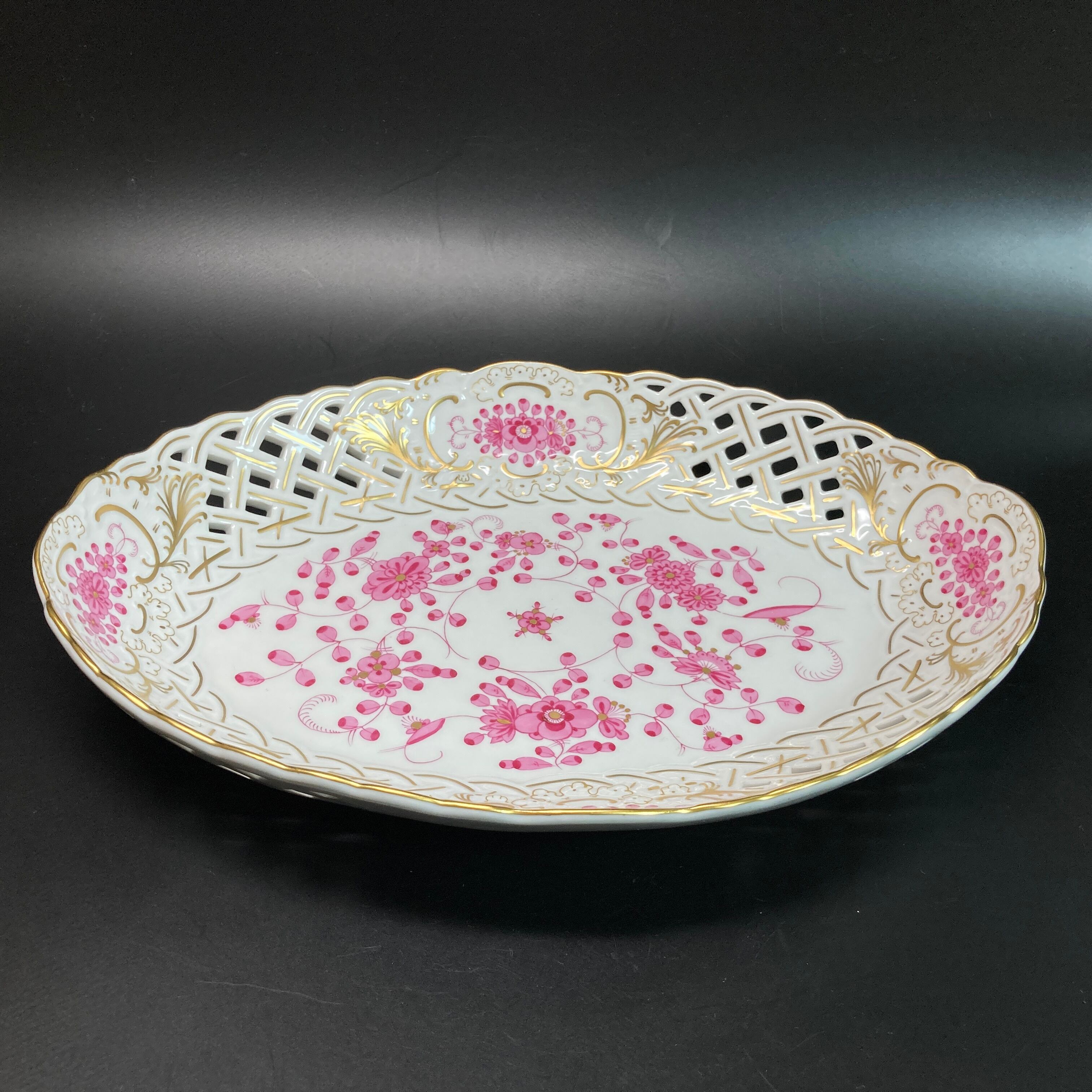 マイセン インドの華 透かし オープン オーバルディッシュ プレート ボウル リッチ ピンク 花 金彩