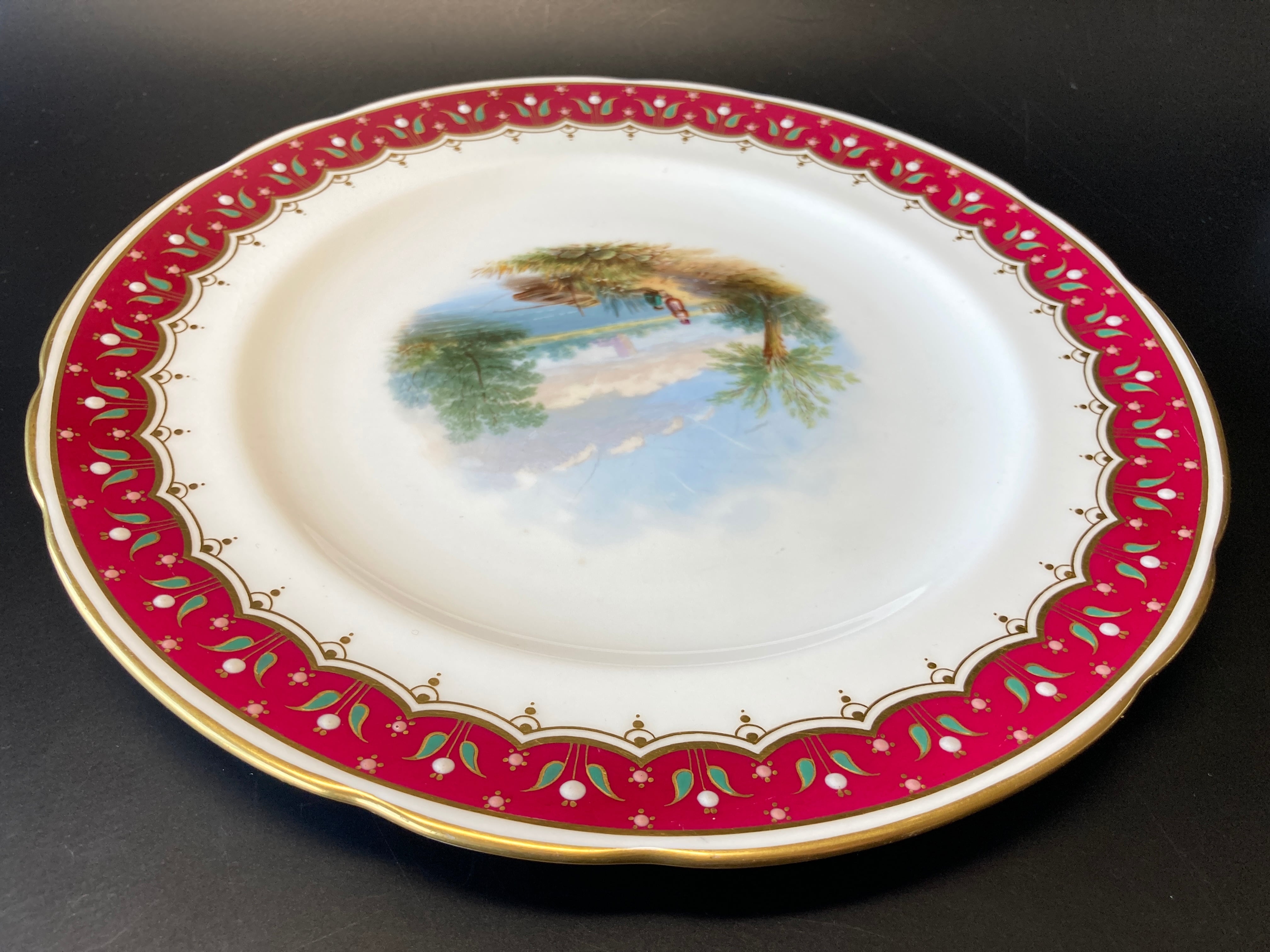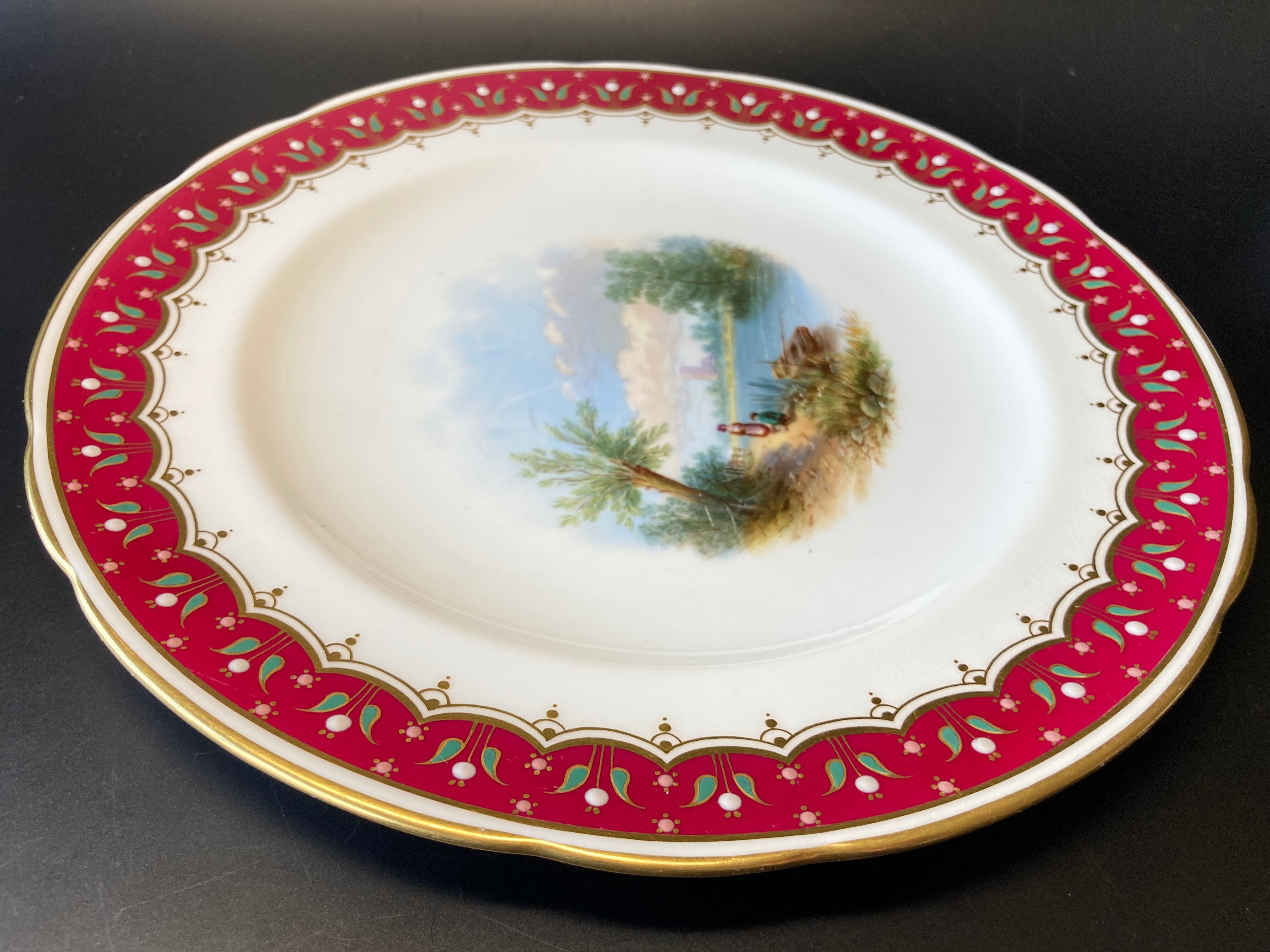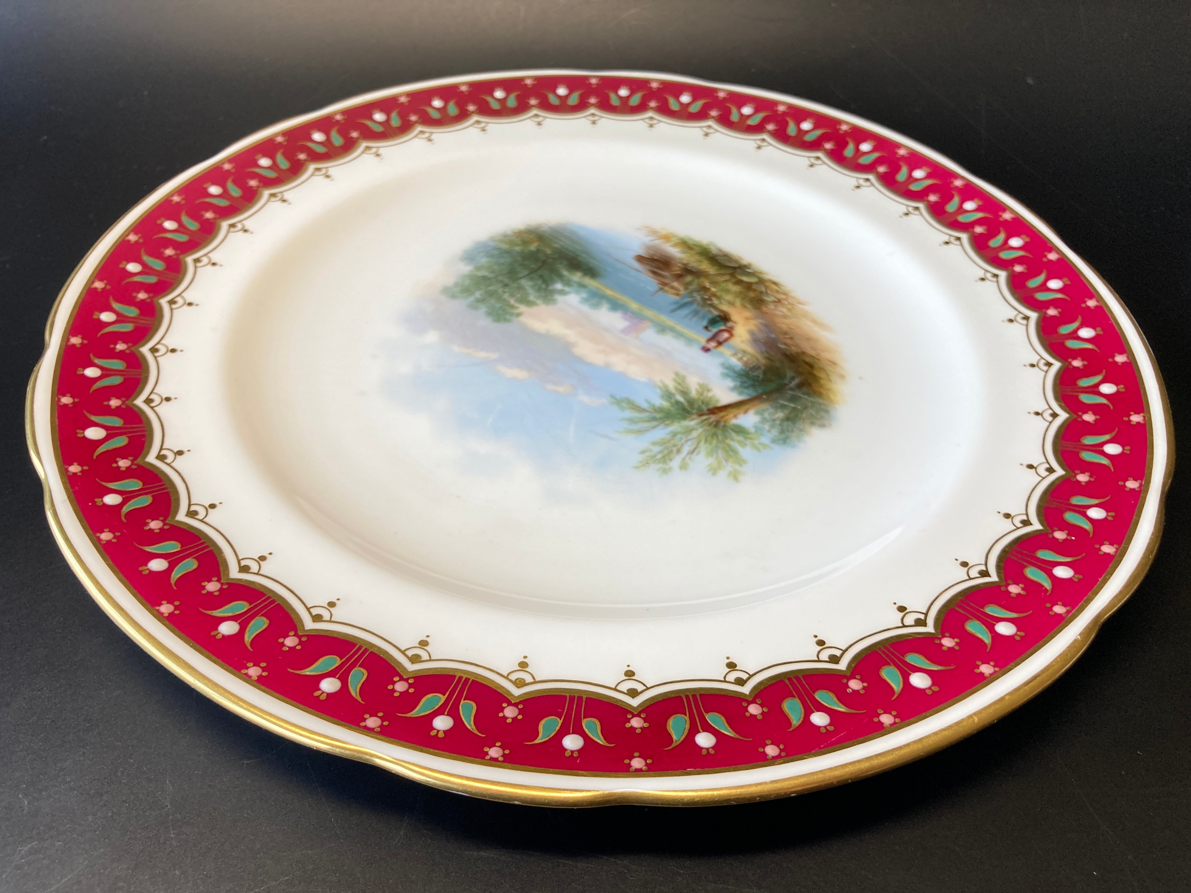 こちらは英国の名窯ミントンにより制作された風景絵図が描かれたキャビネットプレートになります。