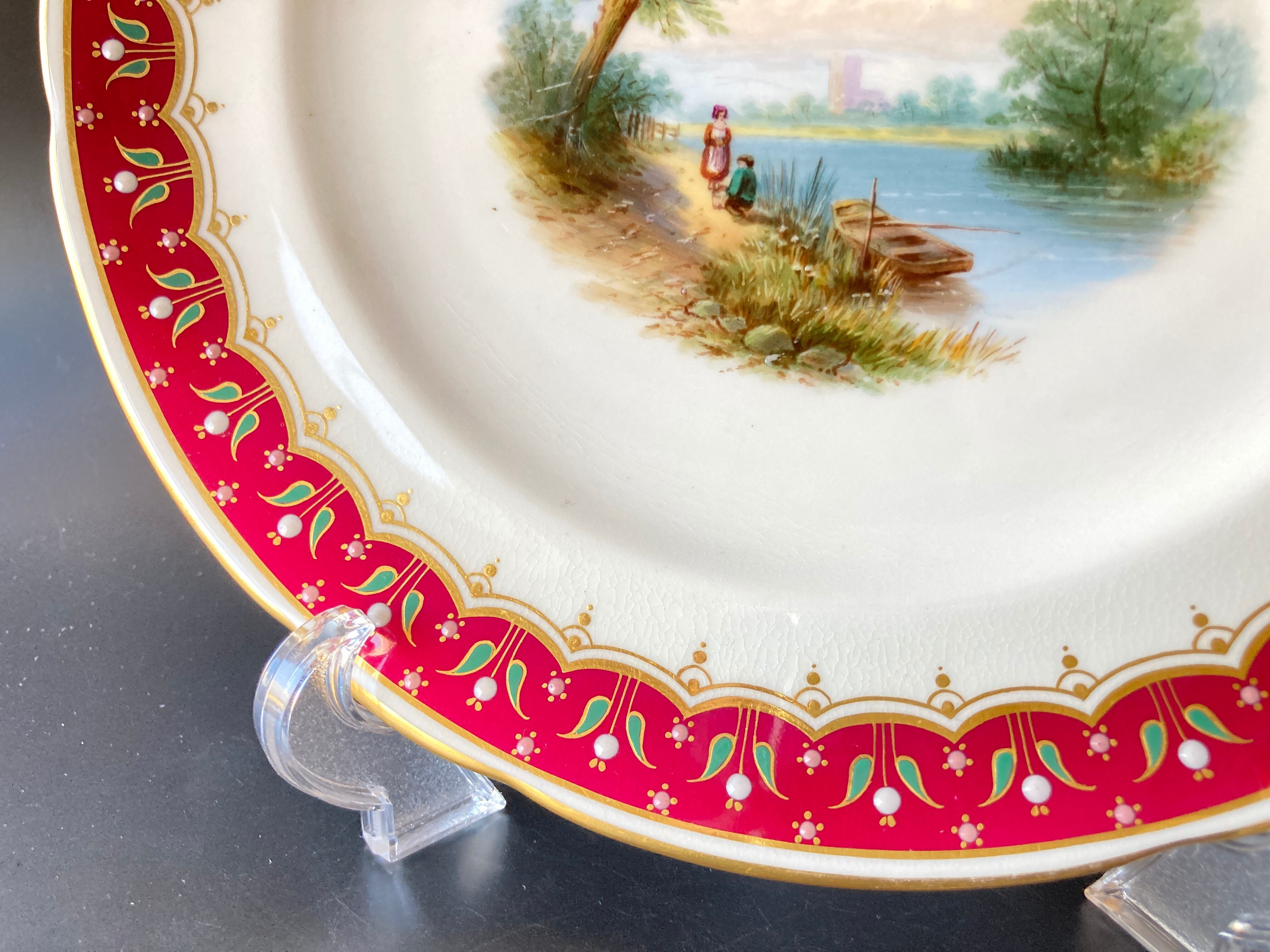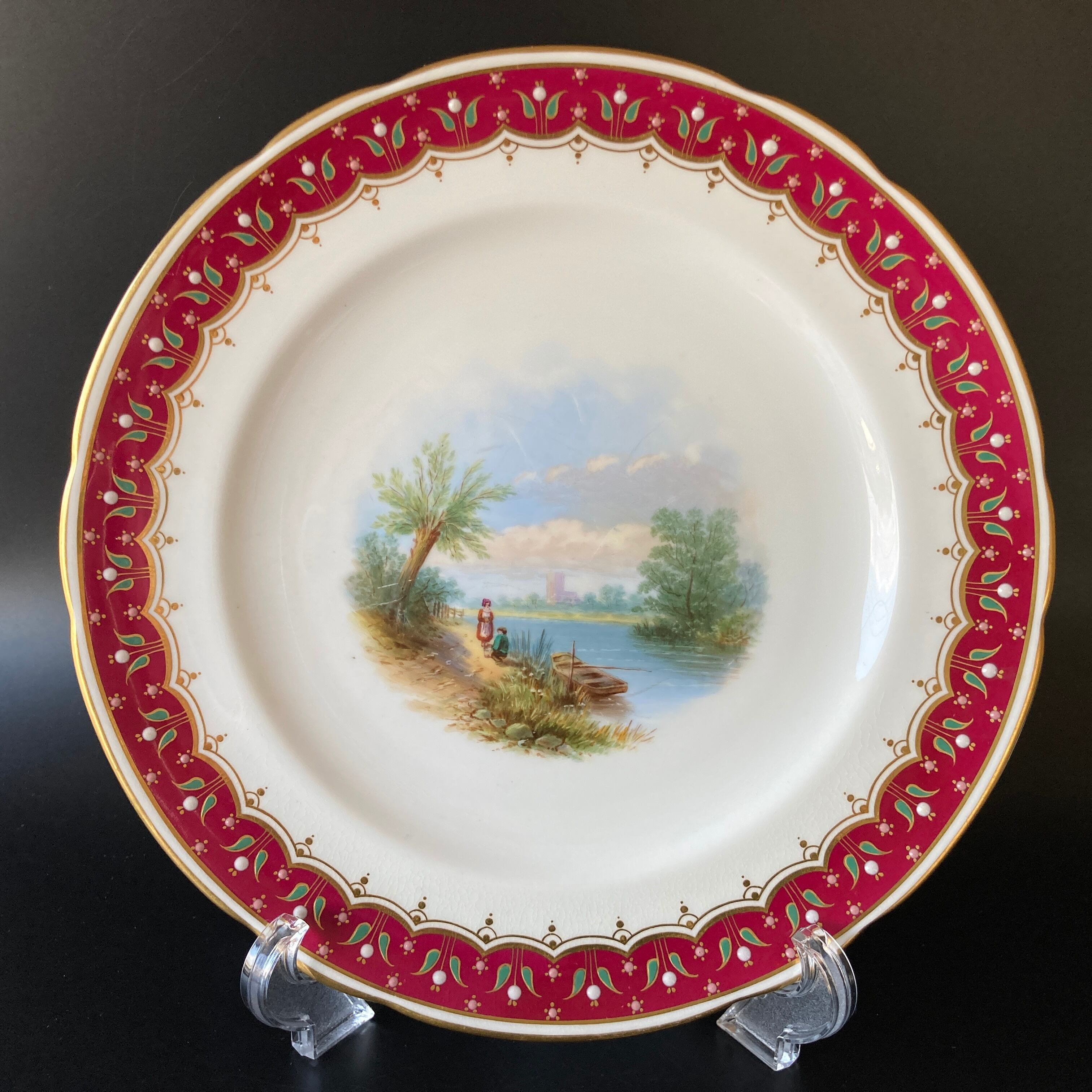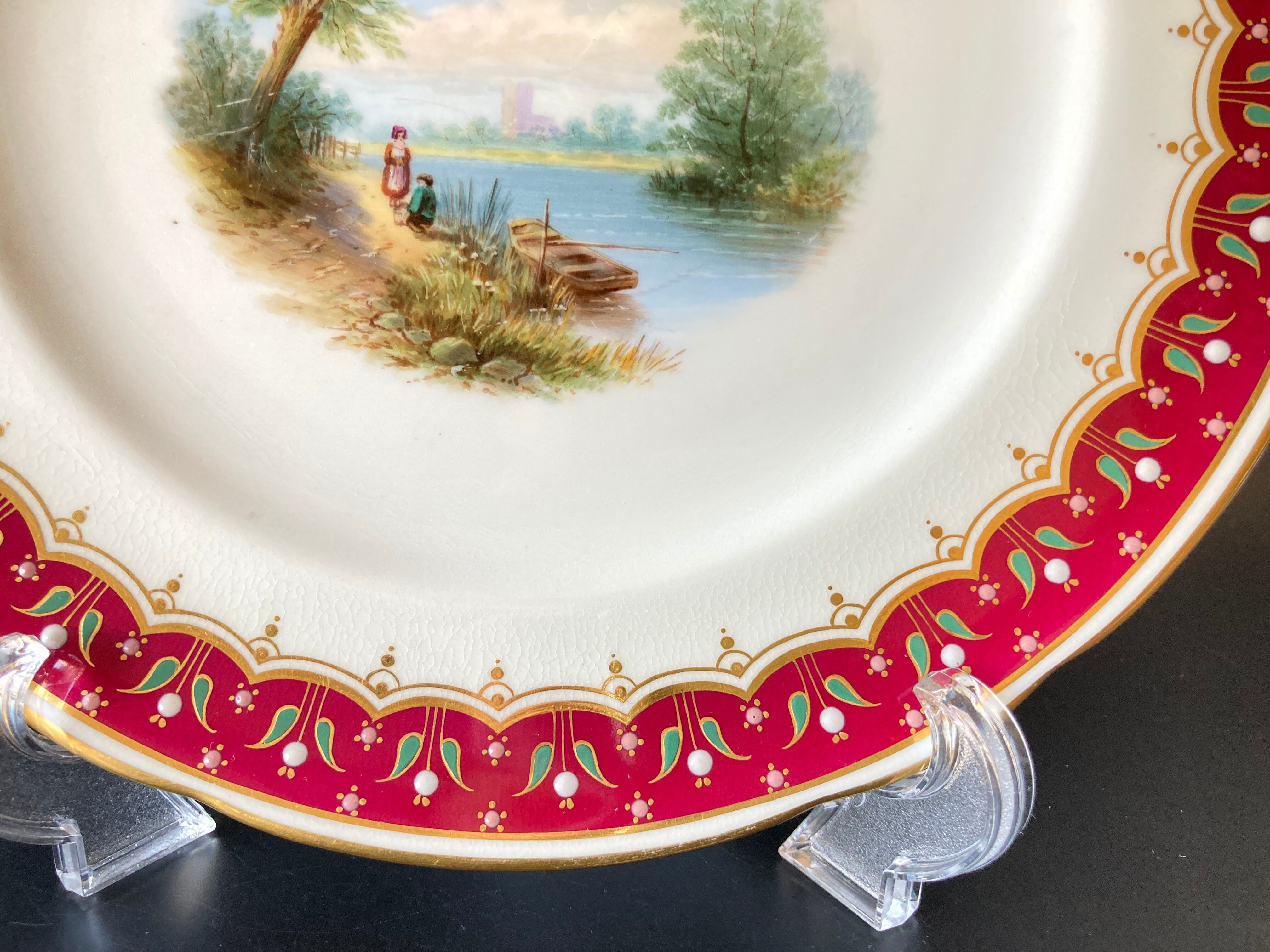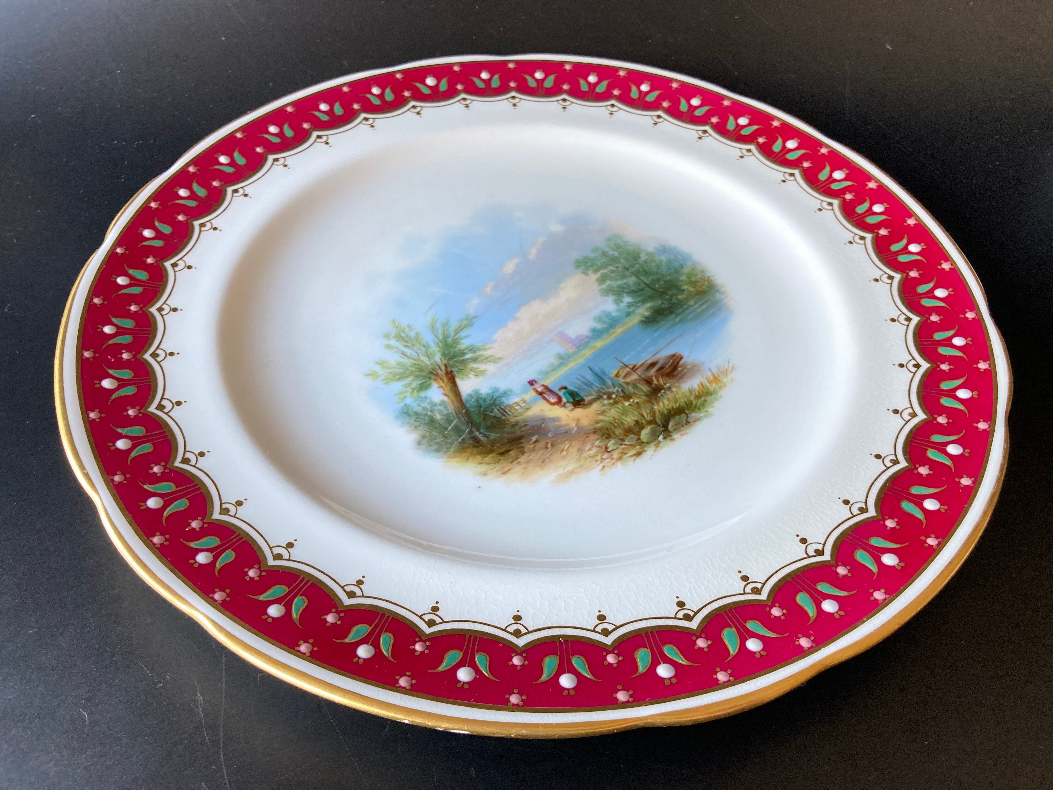 こちらは英国の名窯ミントンにより制作された風景絵図が描かれたキャビネットプレートになります。