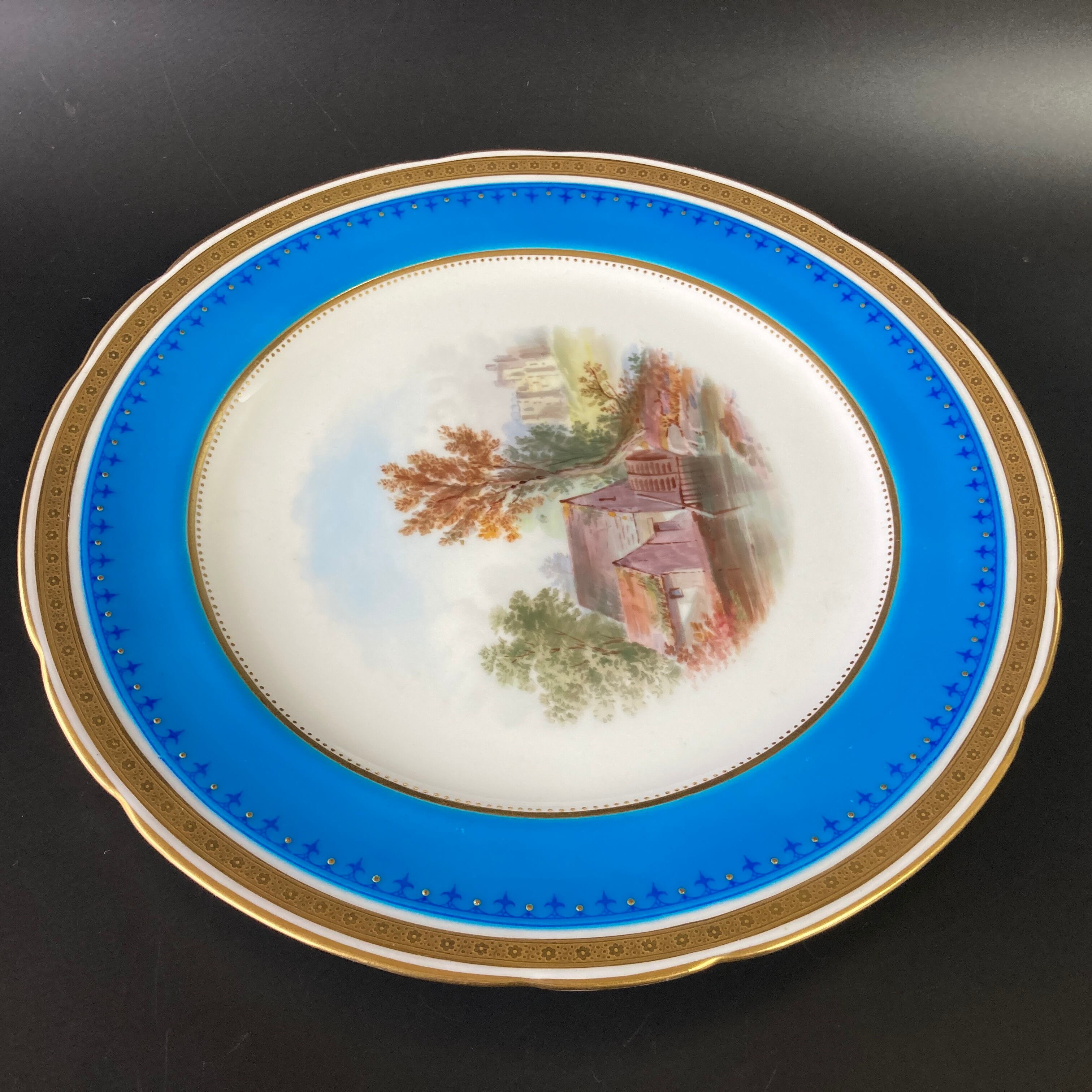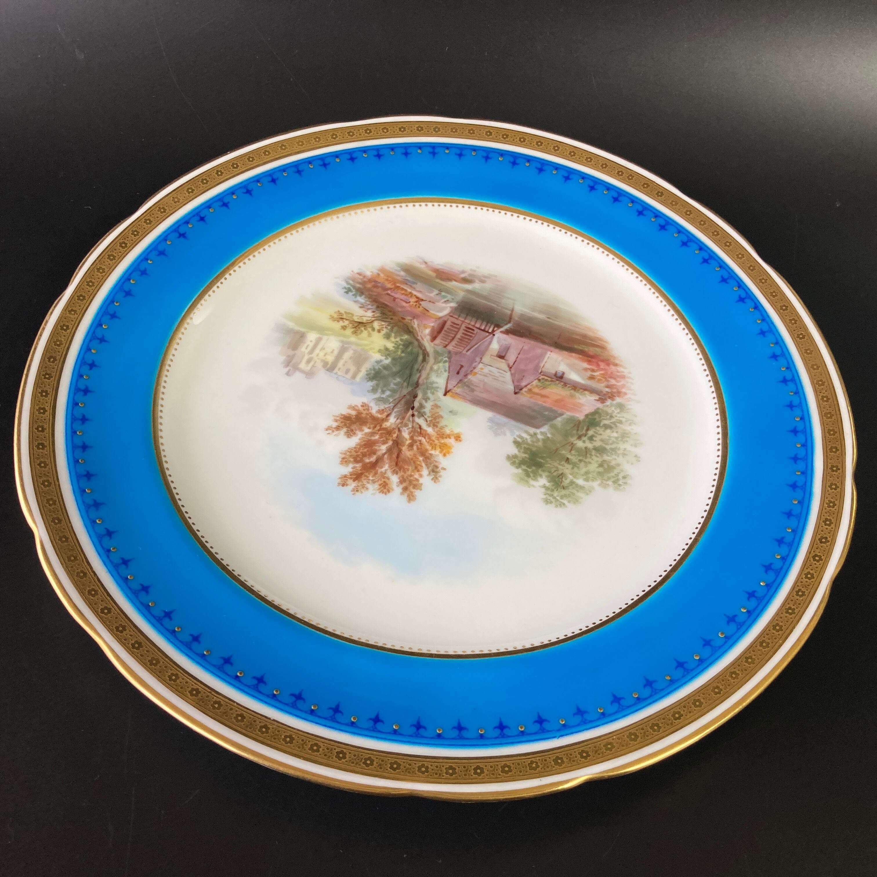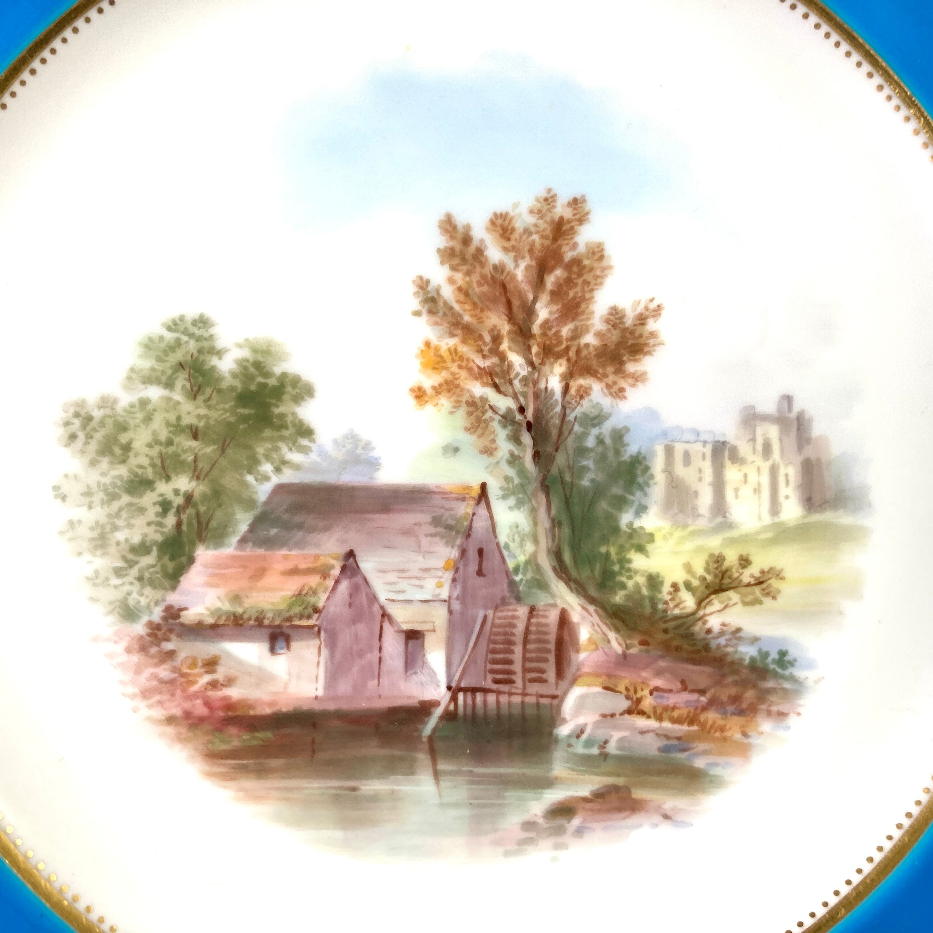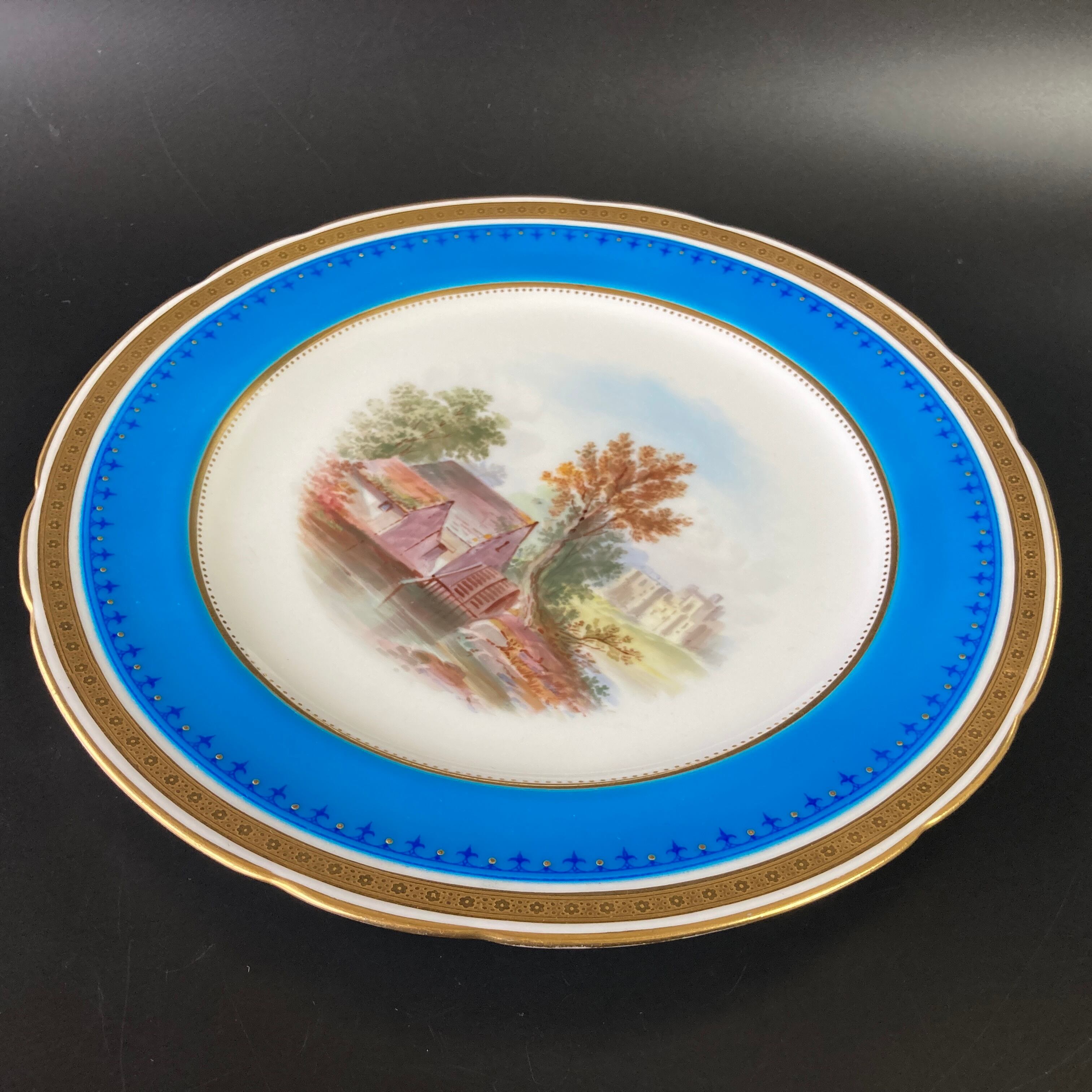 こちらは英国の名窯ミントンにより制作されたイギリスの風景絵図が描かれたキャビネットプレートになります。