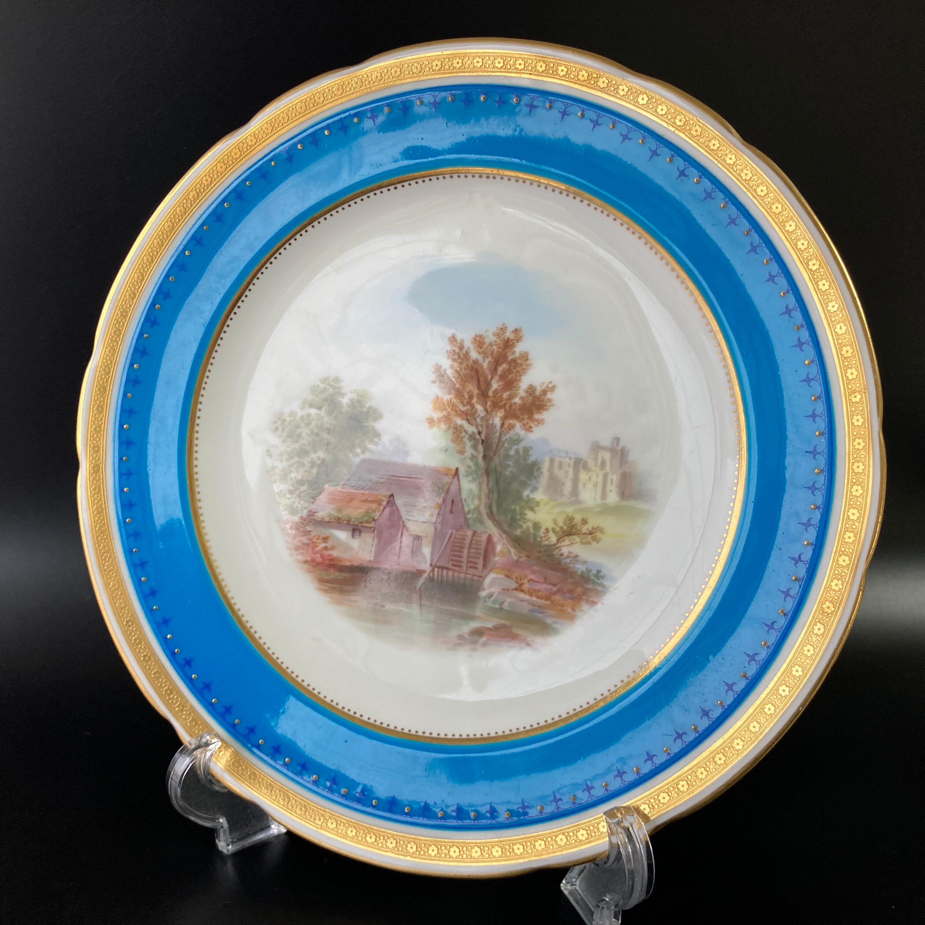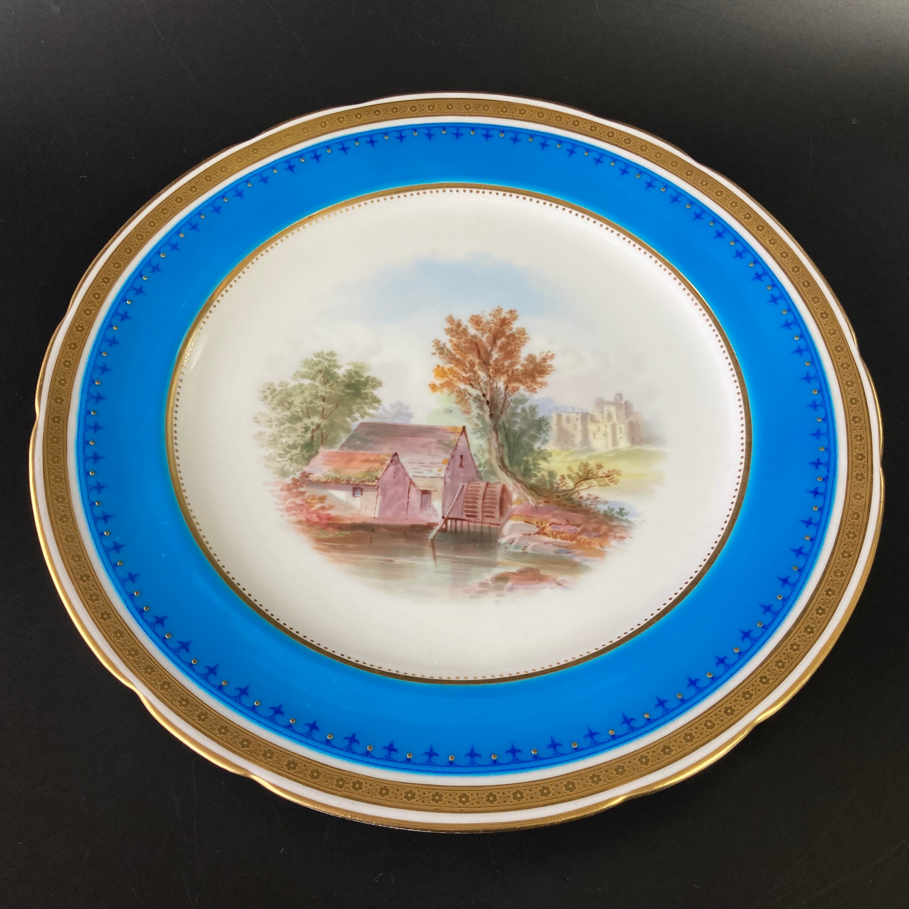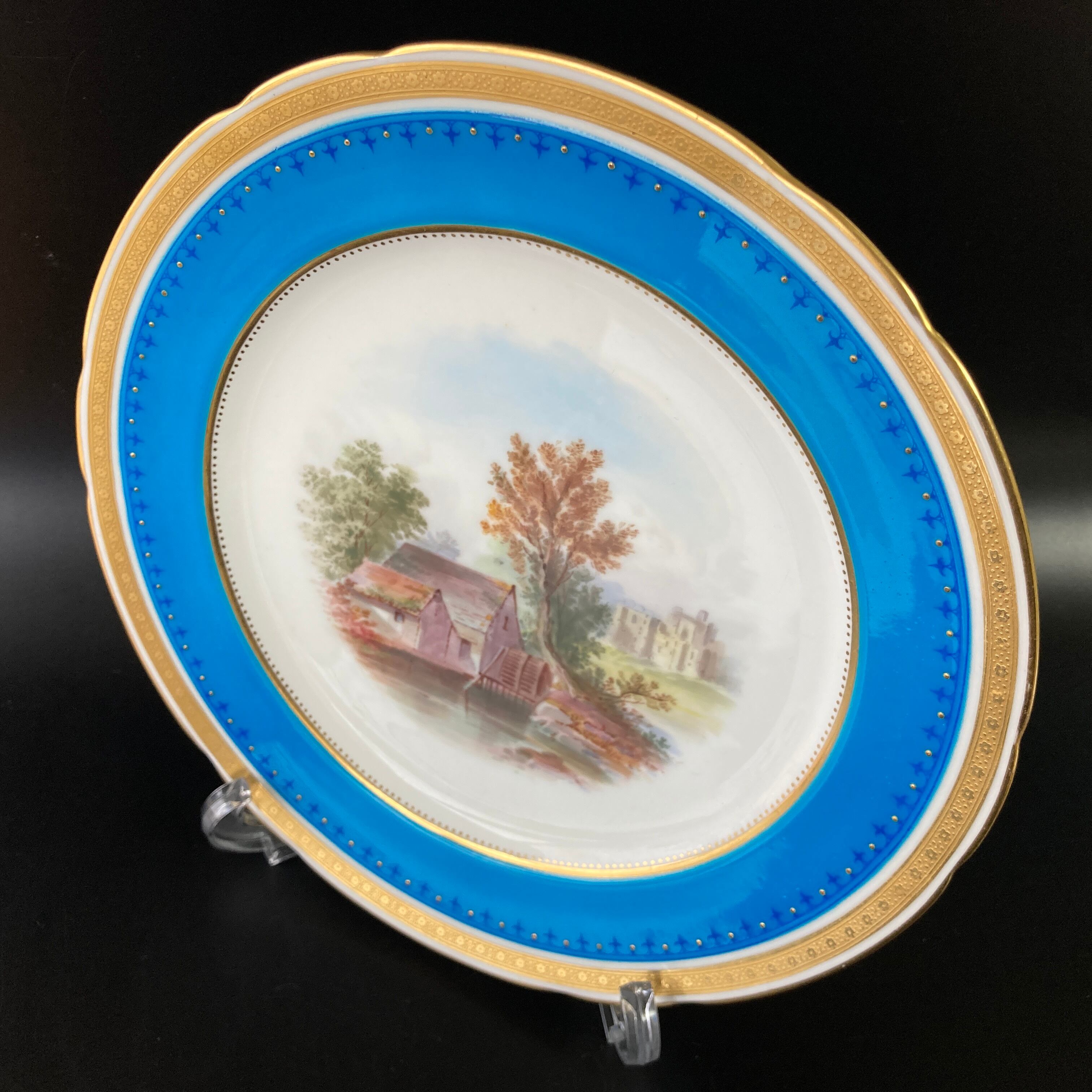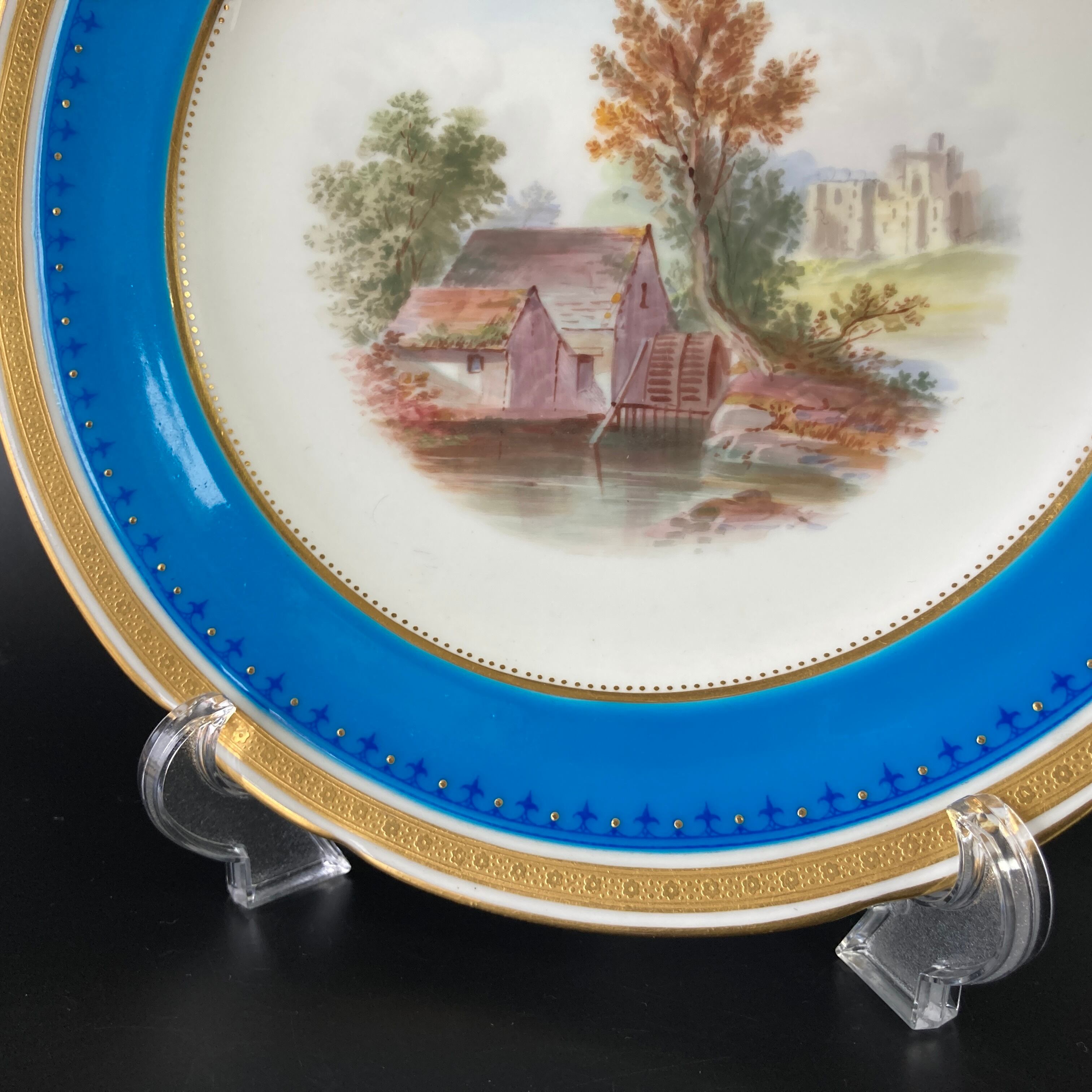 こちらは英国の名窯ミントンにより制作されたイギリスの風景絵図が描かれたキャビネットプレートになります。