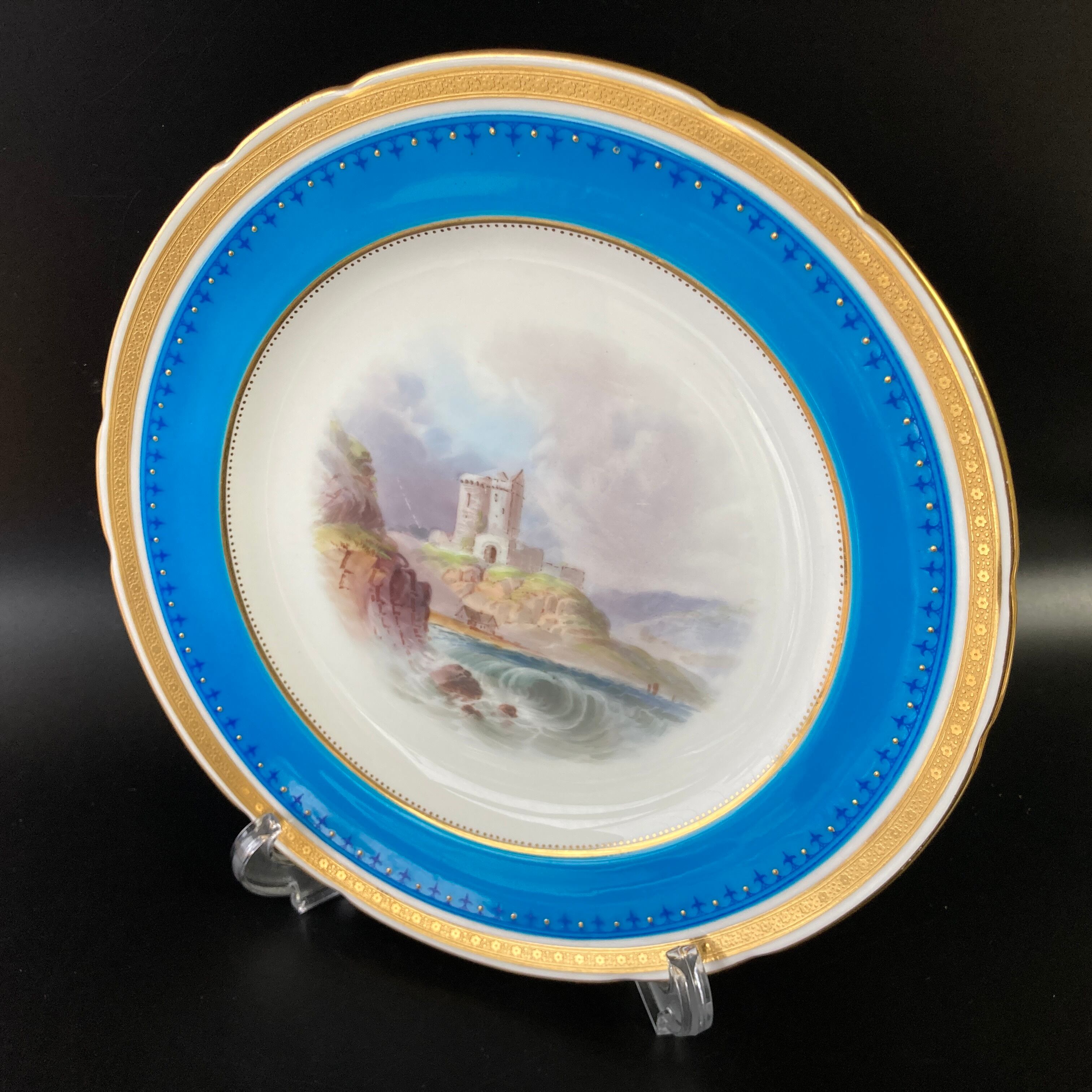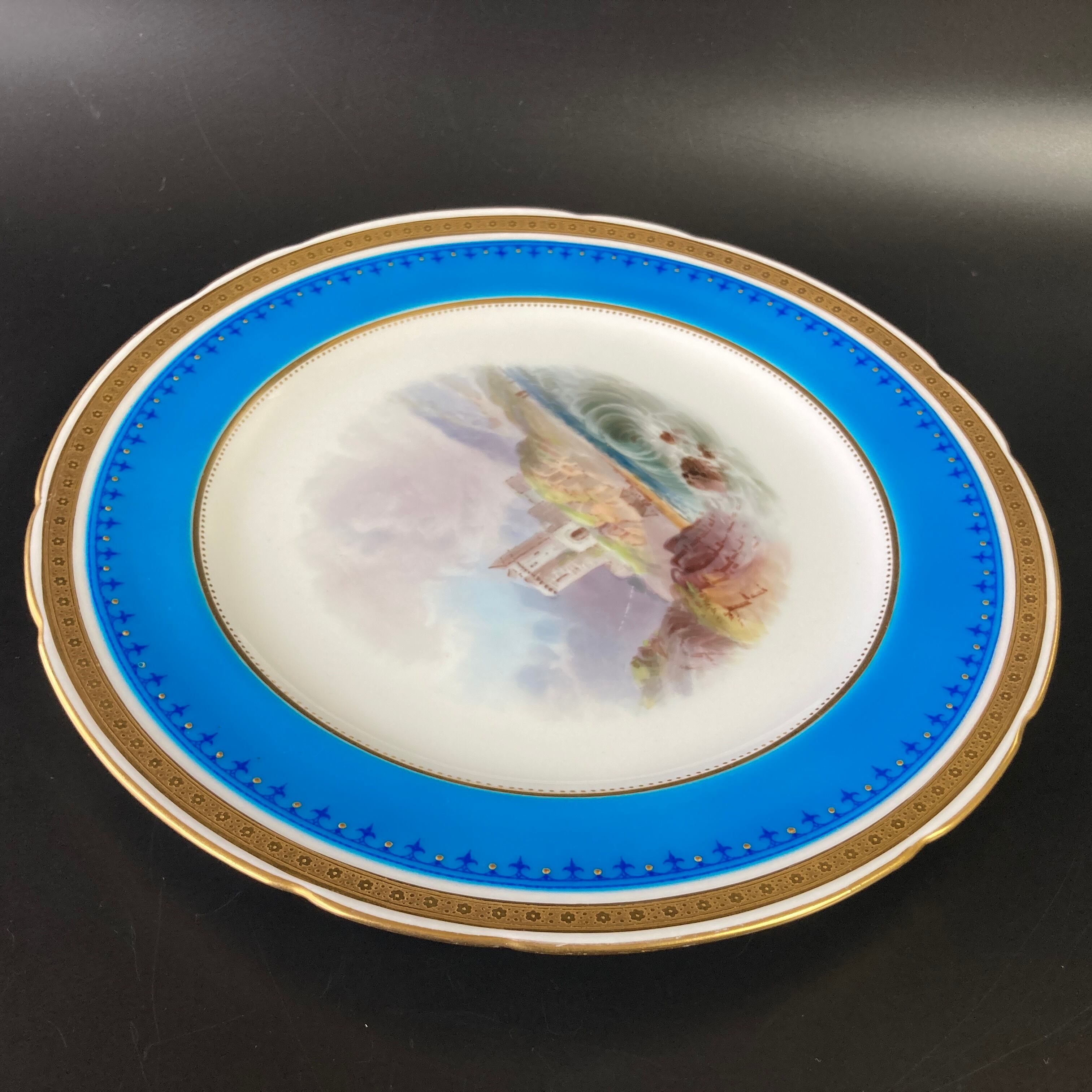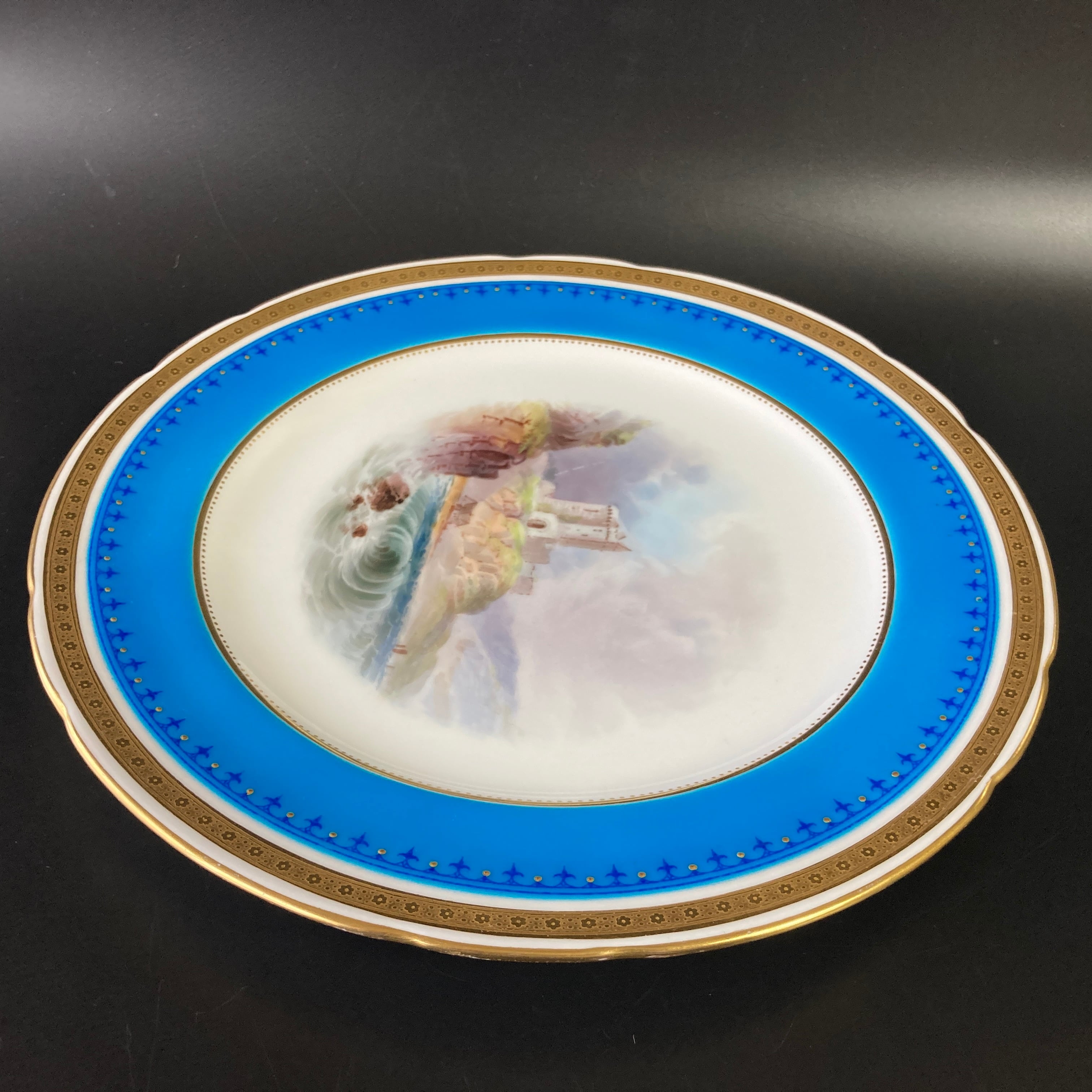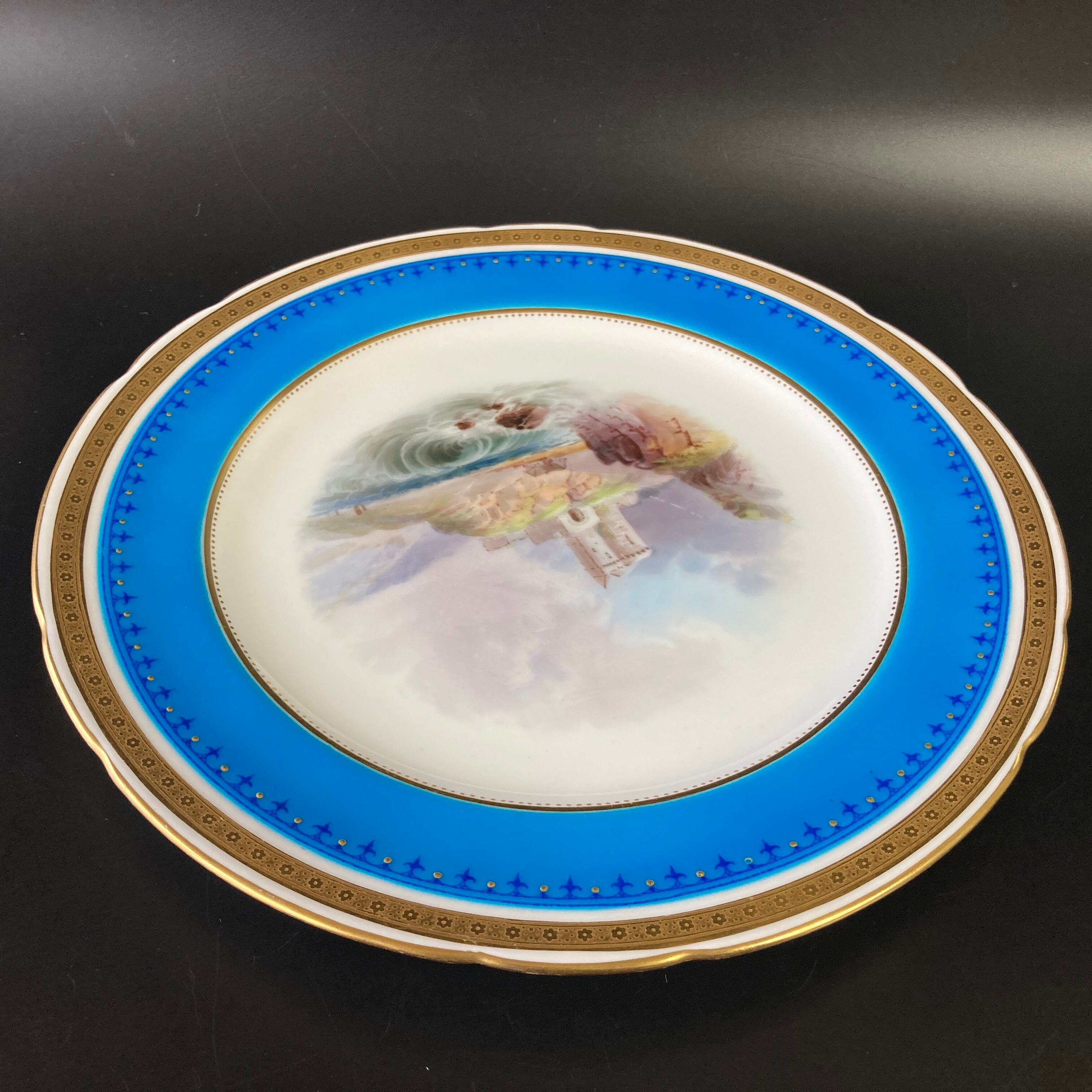 こちらは英国の名窯ミントンにより制作されたイギリスの古城風景絵図が描かれたキャビネットプレートになります。