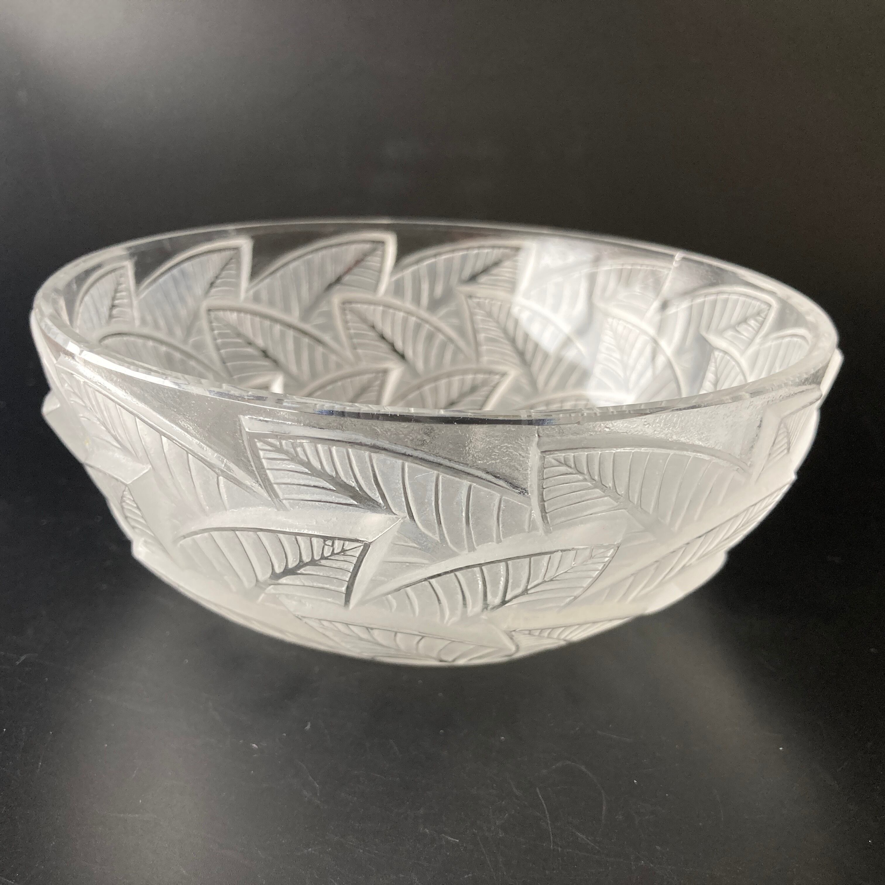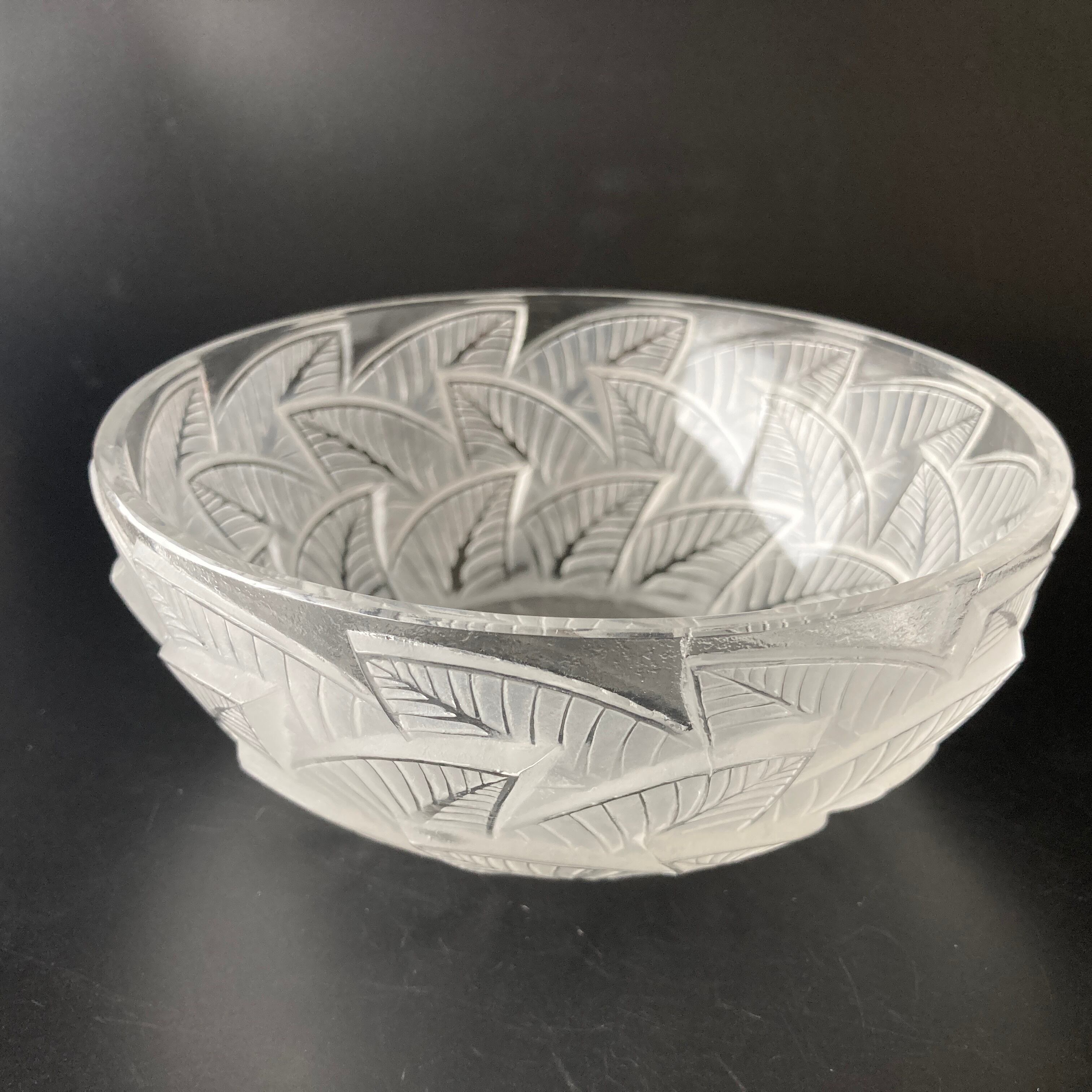 R.LALIQUE ルネ・ラリック 楡の葉「Ormeaux」オルモー ボウル 硝子鉢 植物文様 1931年