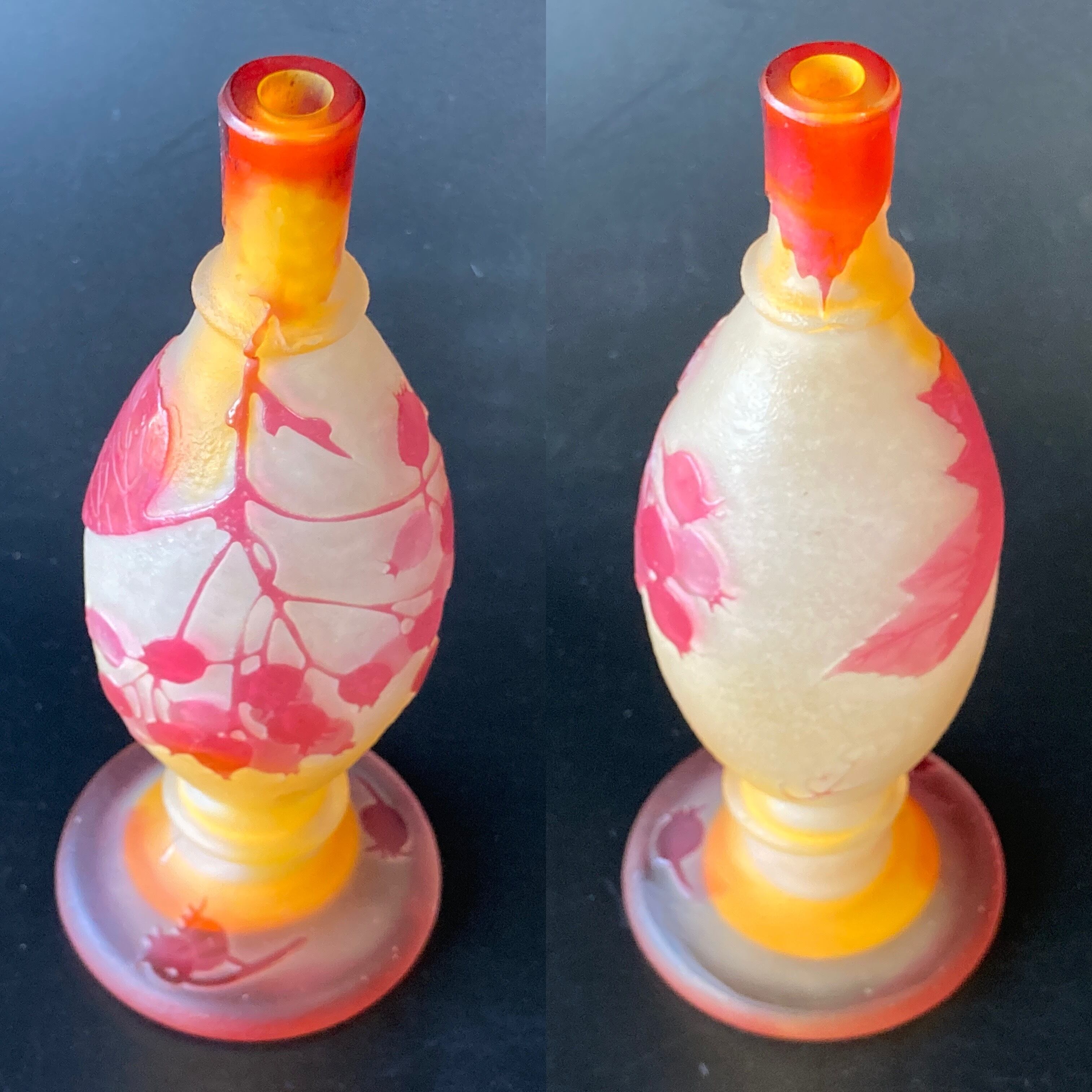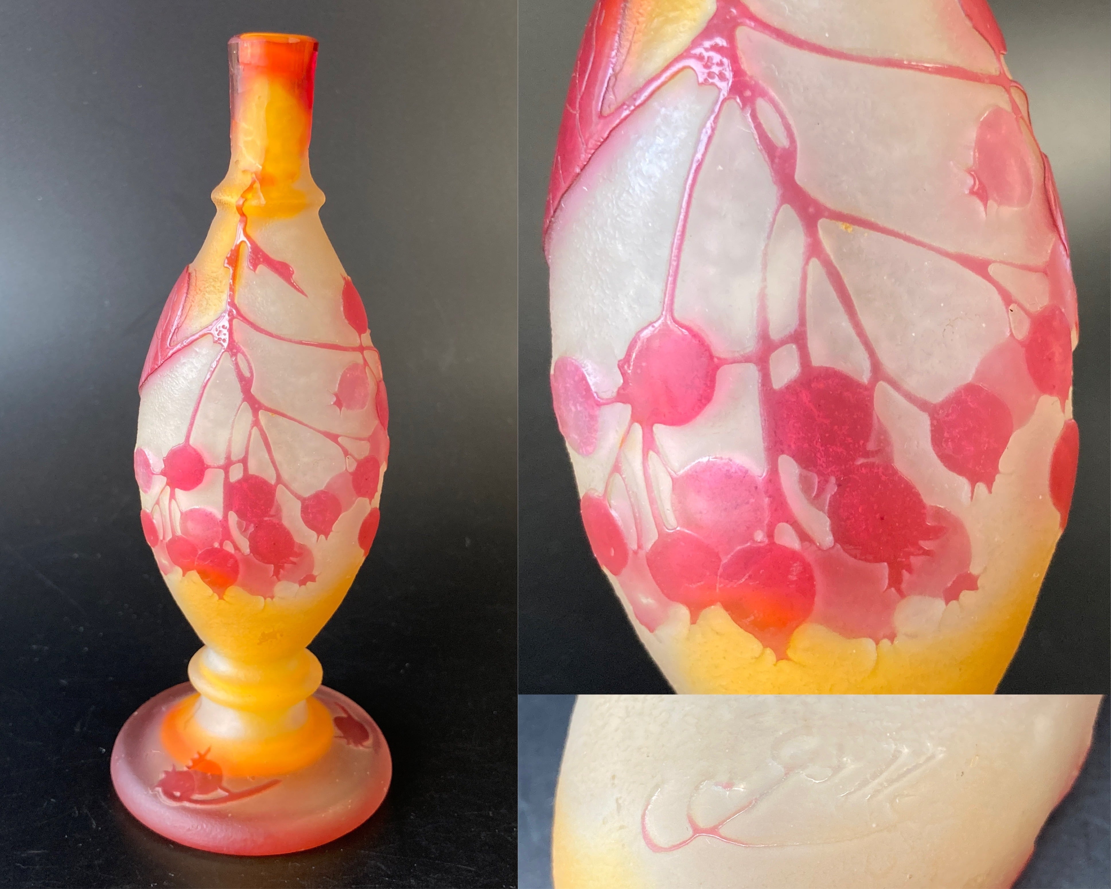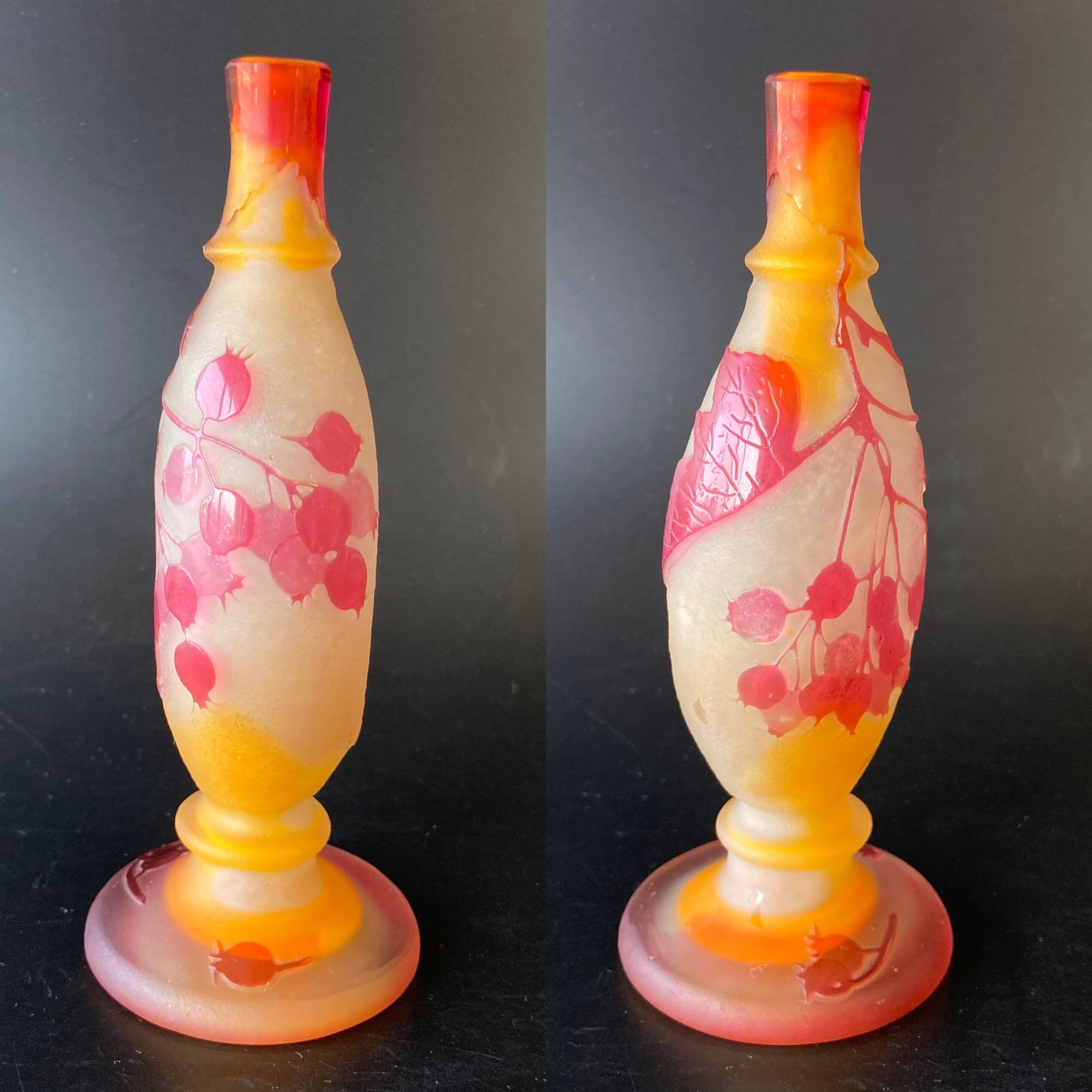 エミール ガレ スグリ文花器 花瓶 一輪挿し 多色多層被せガラス 木の実 すぐり 酸化腐蝕彫 アンティーク