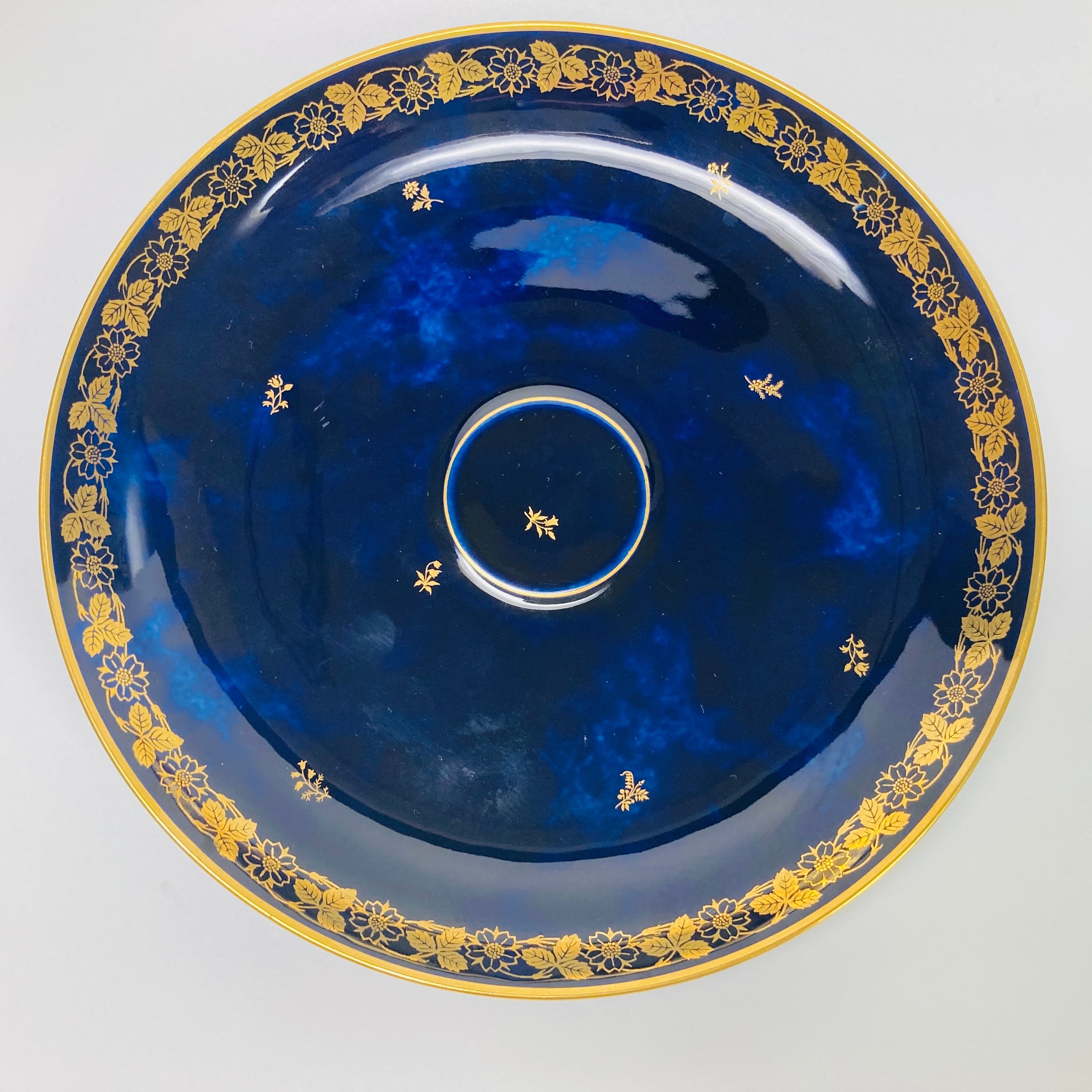 SEVRES セーブル 王者の青 クラウテッドブルー 雲模様 24金彩 プレート 飾り皿 18cm コバルト 磁器 アンティーク