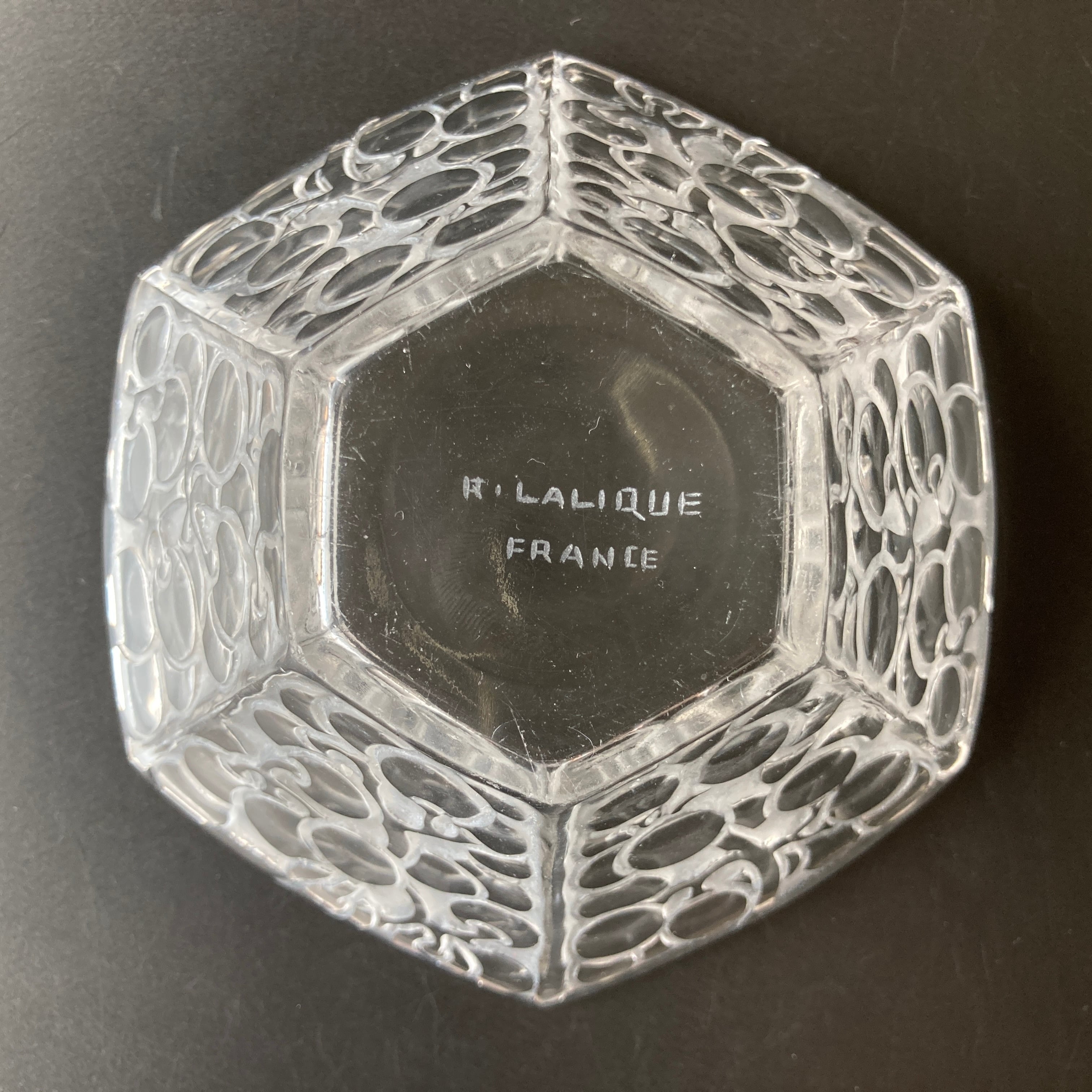R.LALIQUE ルネ・ラリック 葡萄紋六角硝子鉢 ボウル「Raisins Six Pans」レーズン ぶどう 12cm 1923年