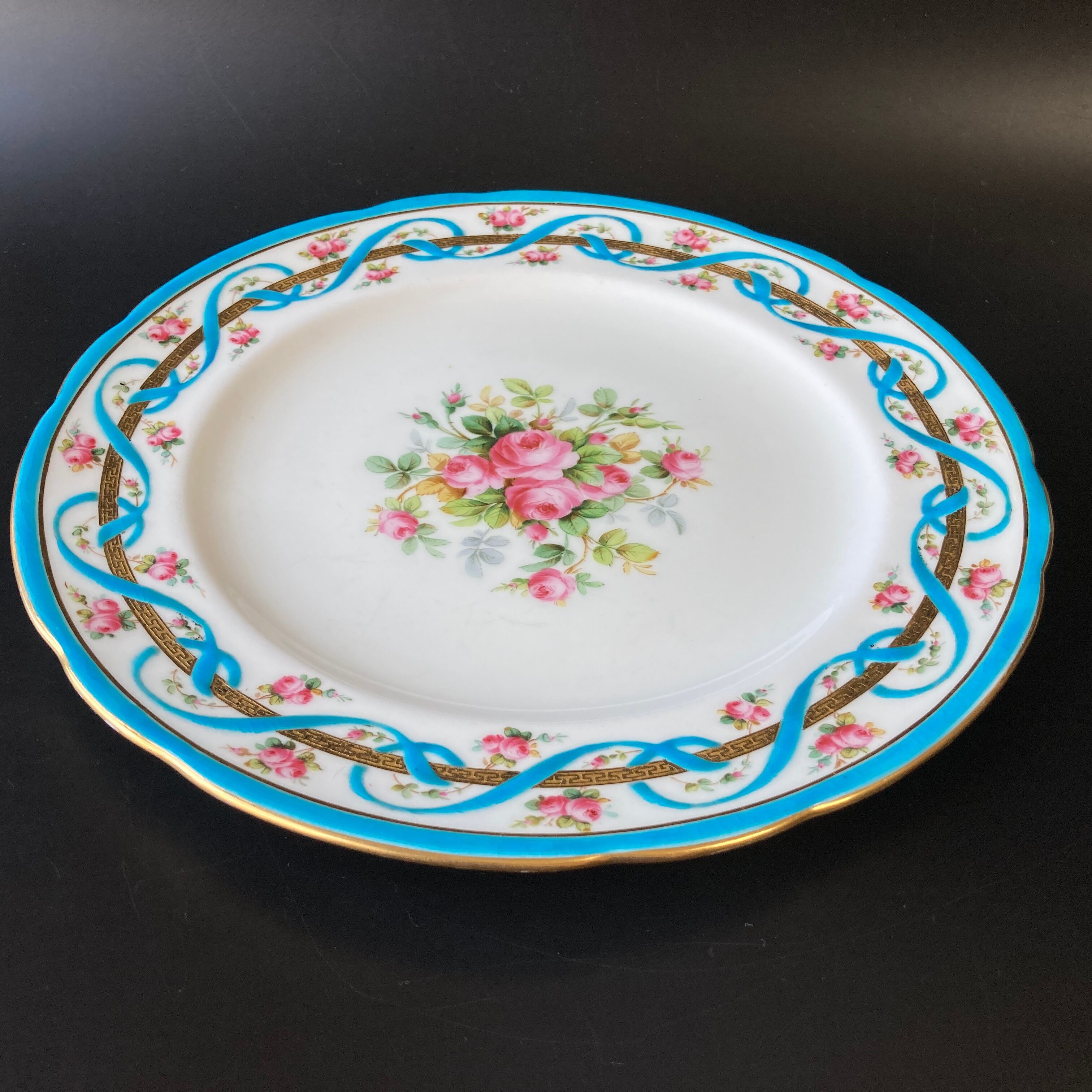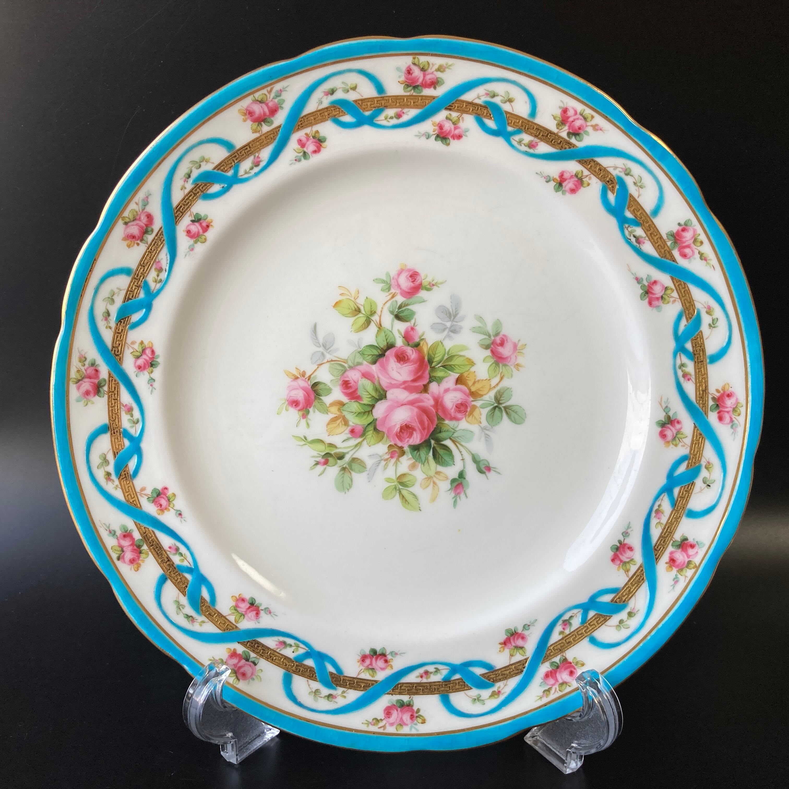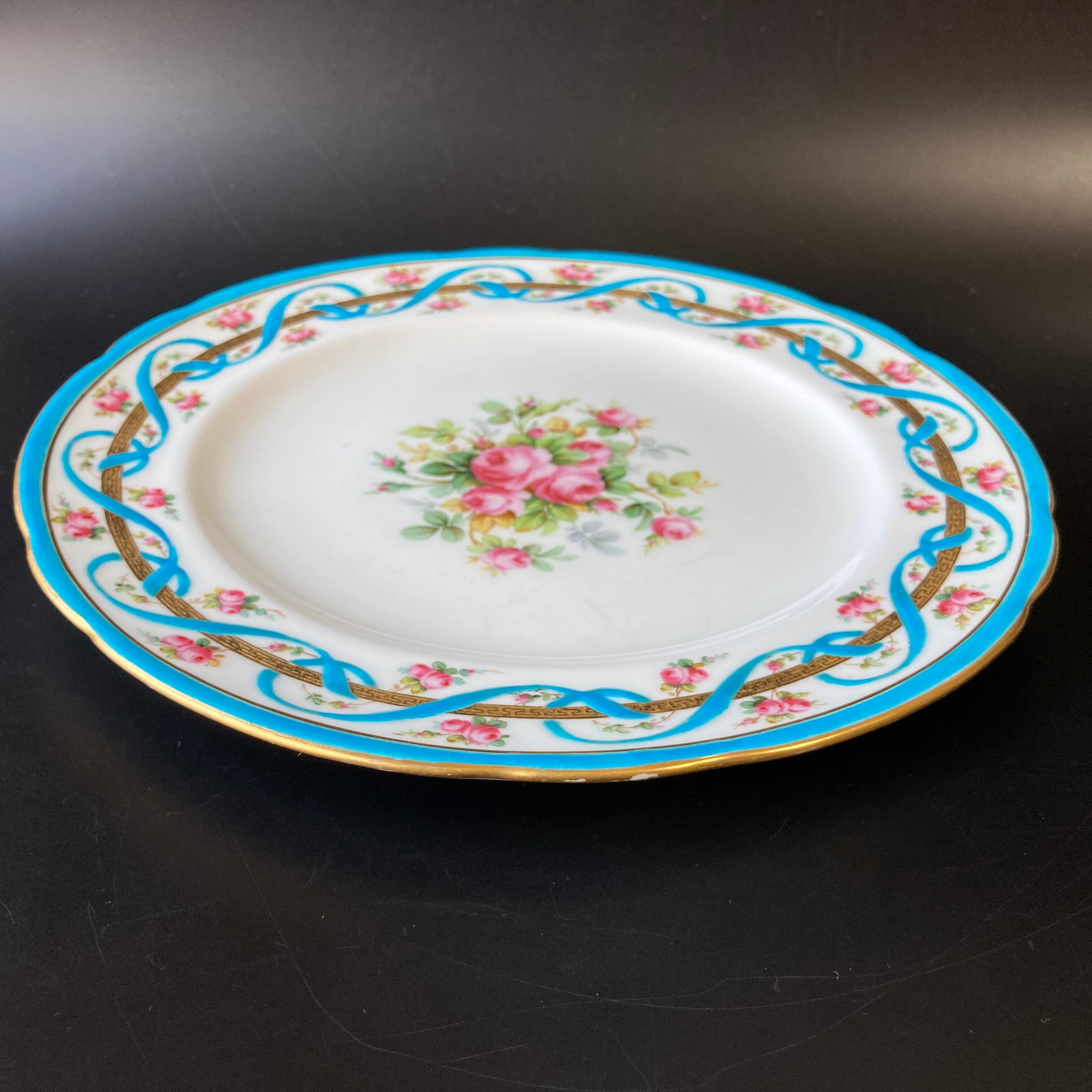 こちらは英国の名窯ミントンにより制作された薔薇絵図が描かれたキャビネットプレートです。