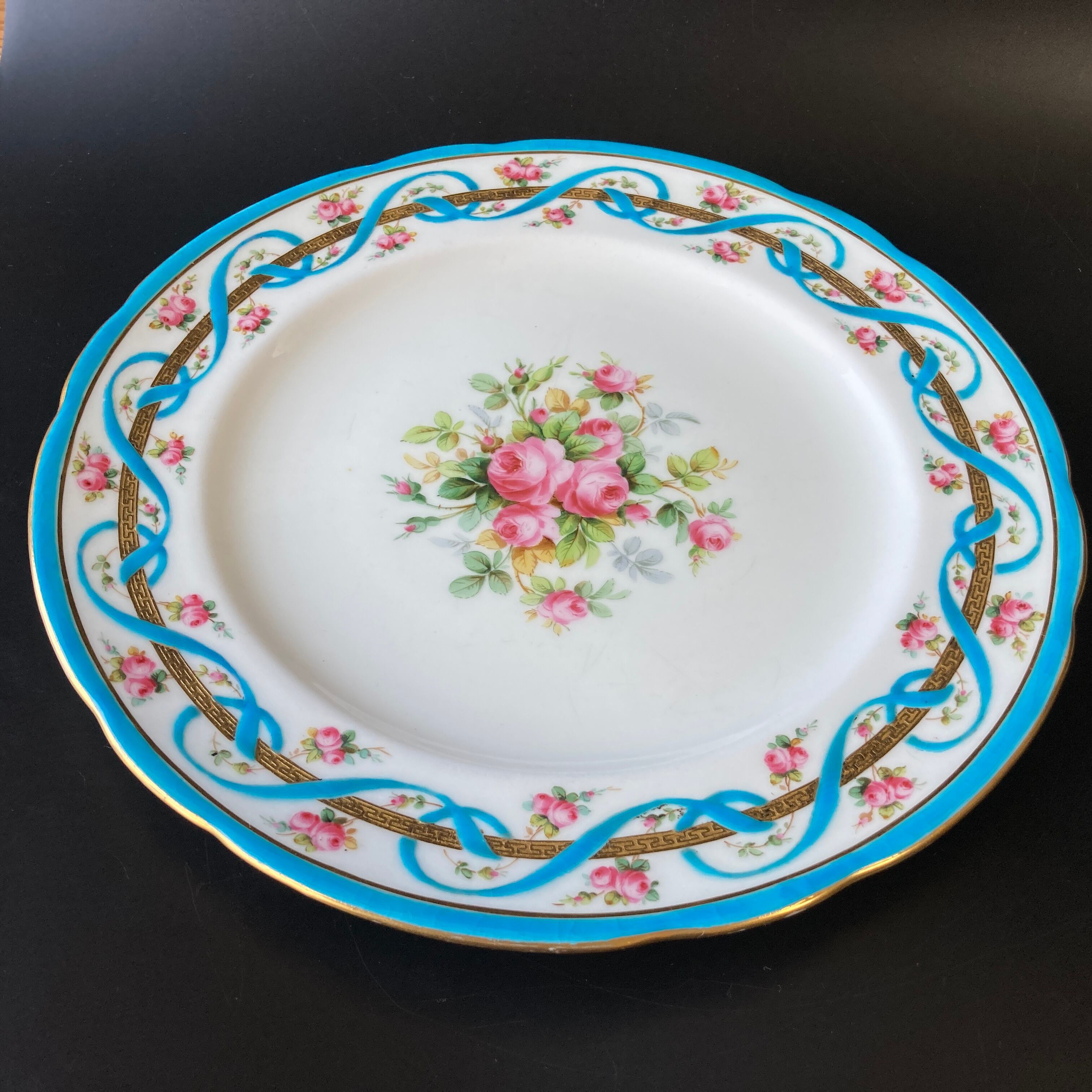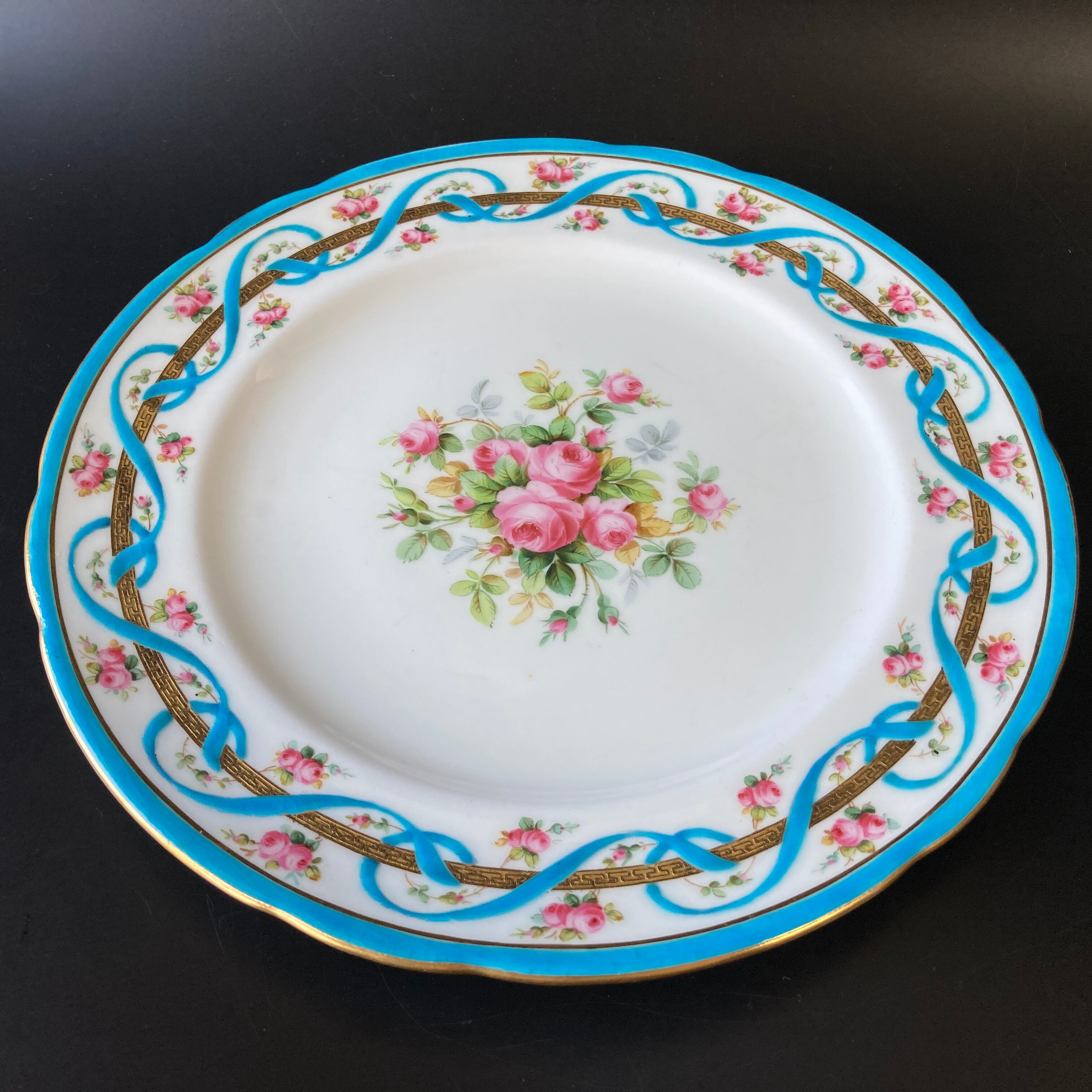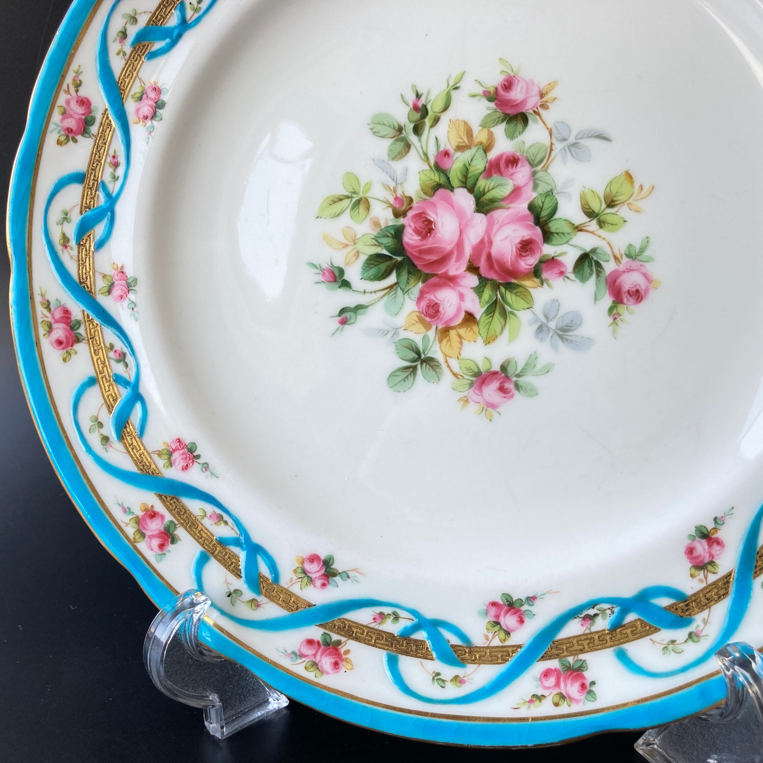 こちらは英国の名窯ミントンにより制作された薔薇絵図が描かれたキャビネットプレートです。