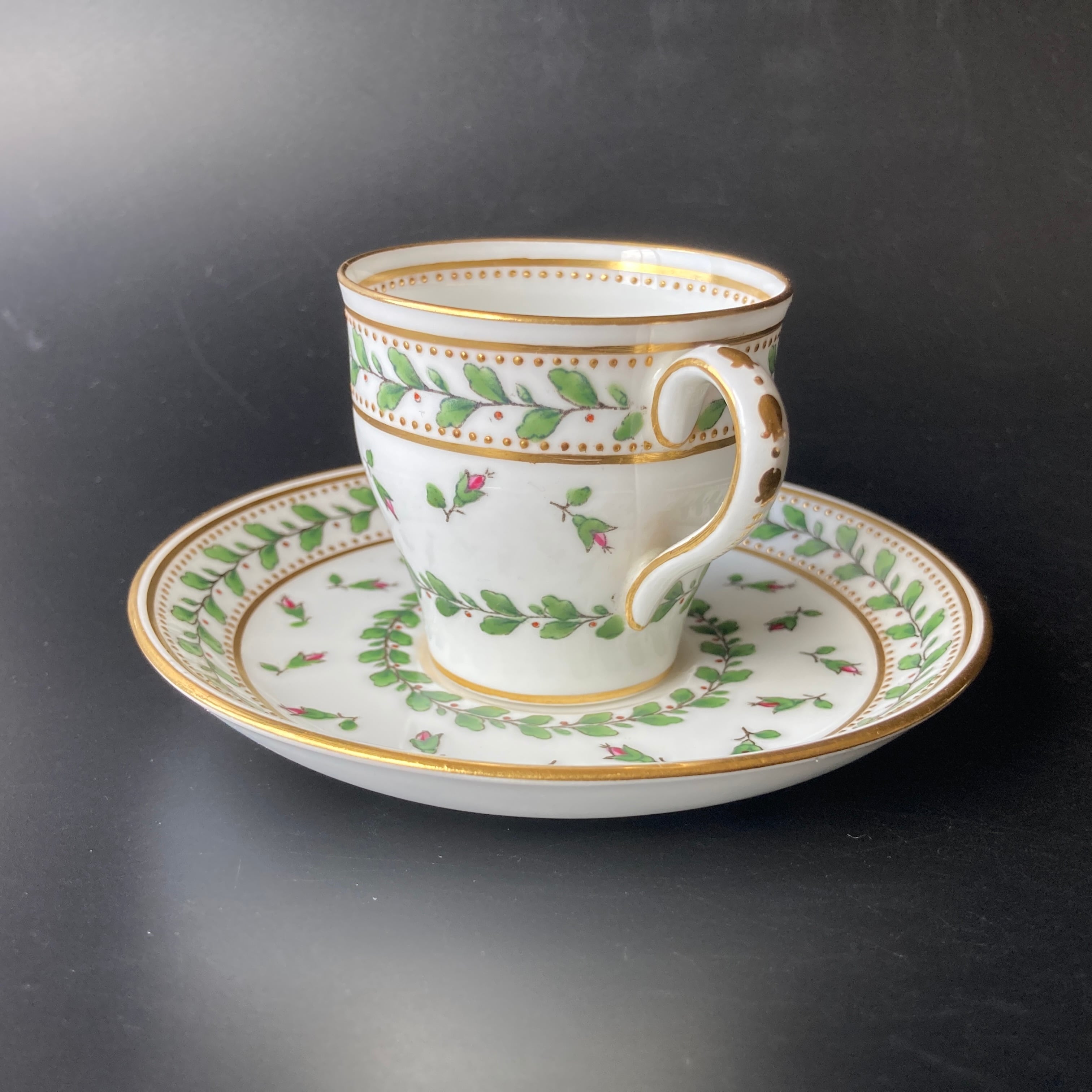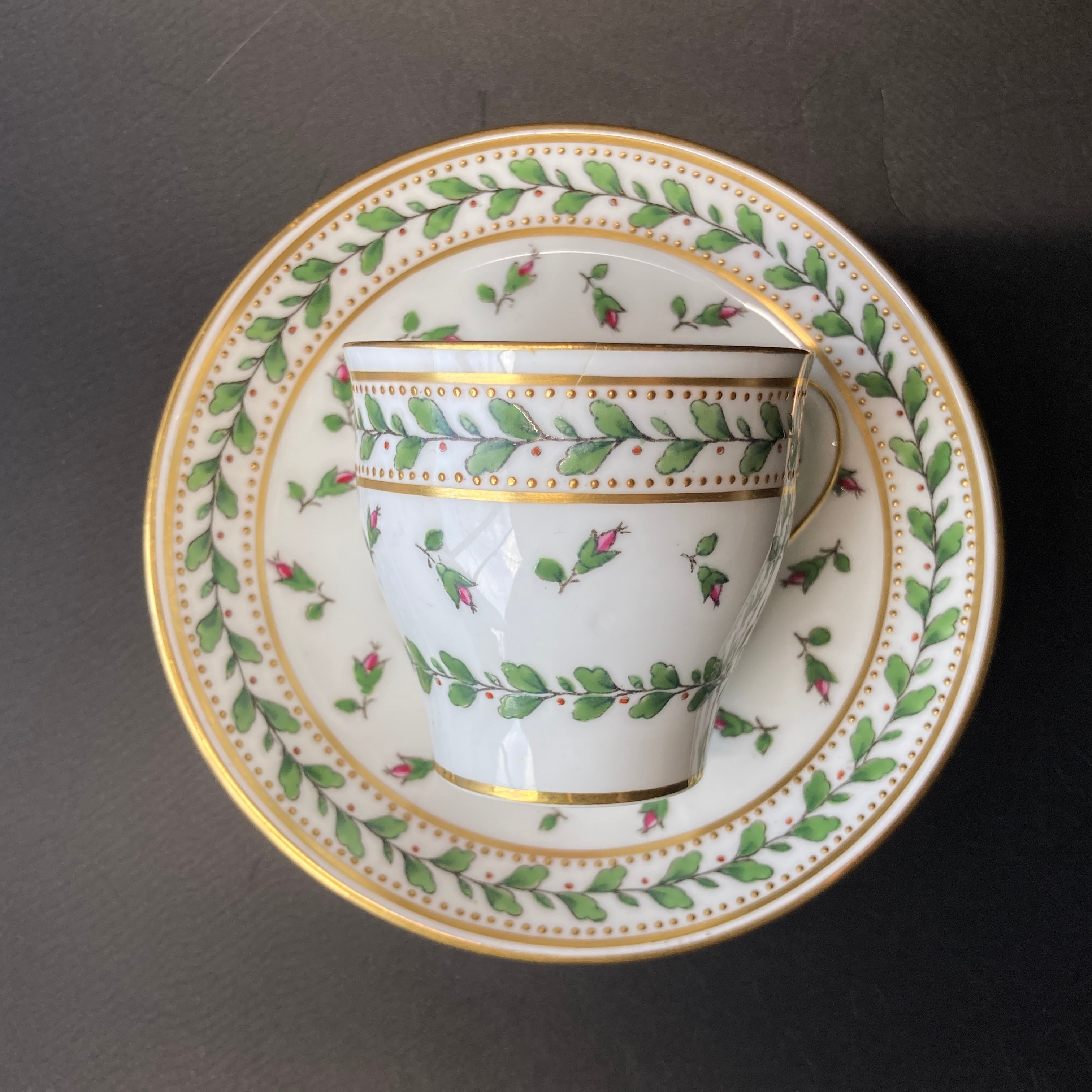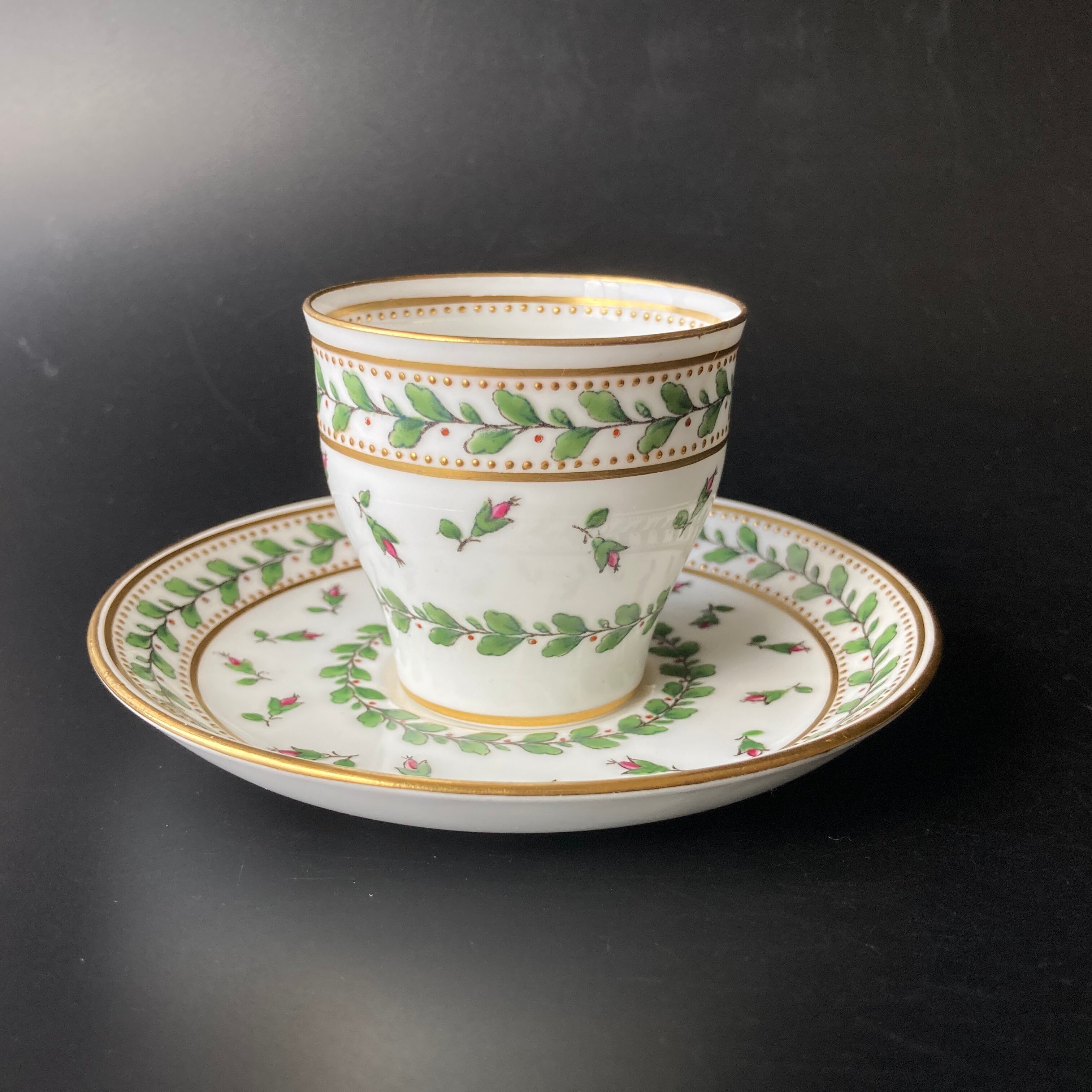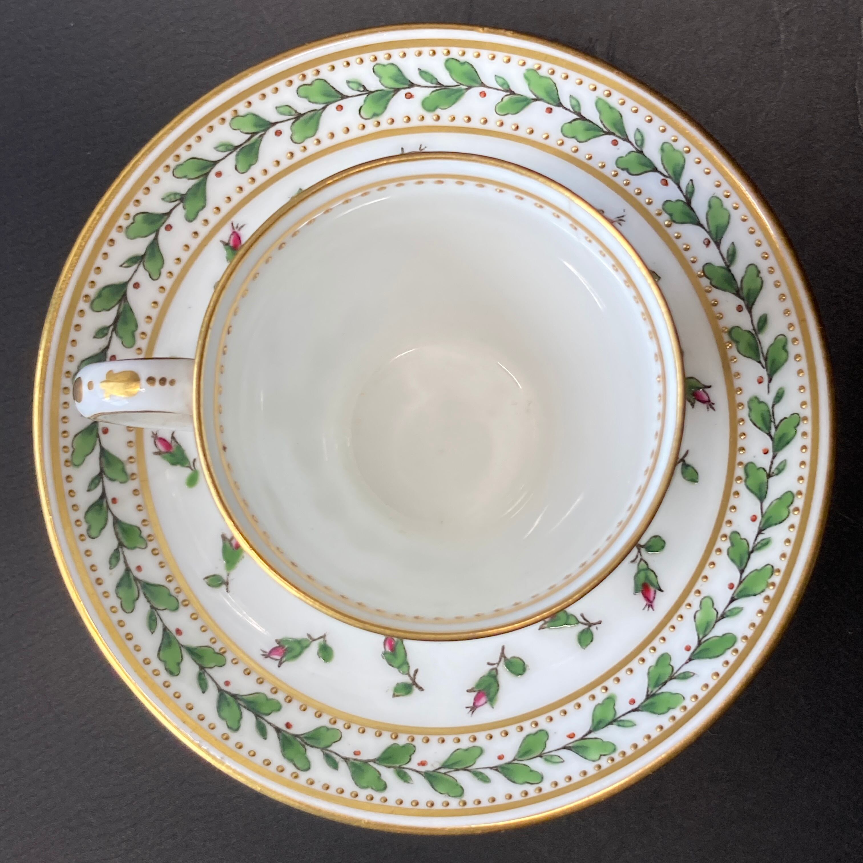 小さな金色のドットは全て金盛りによって形成されており、カップの内側にも施されている珍しい仕上げです。