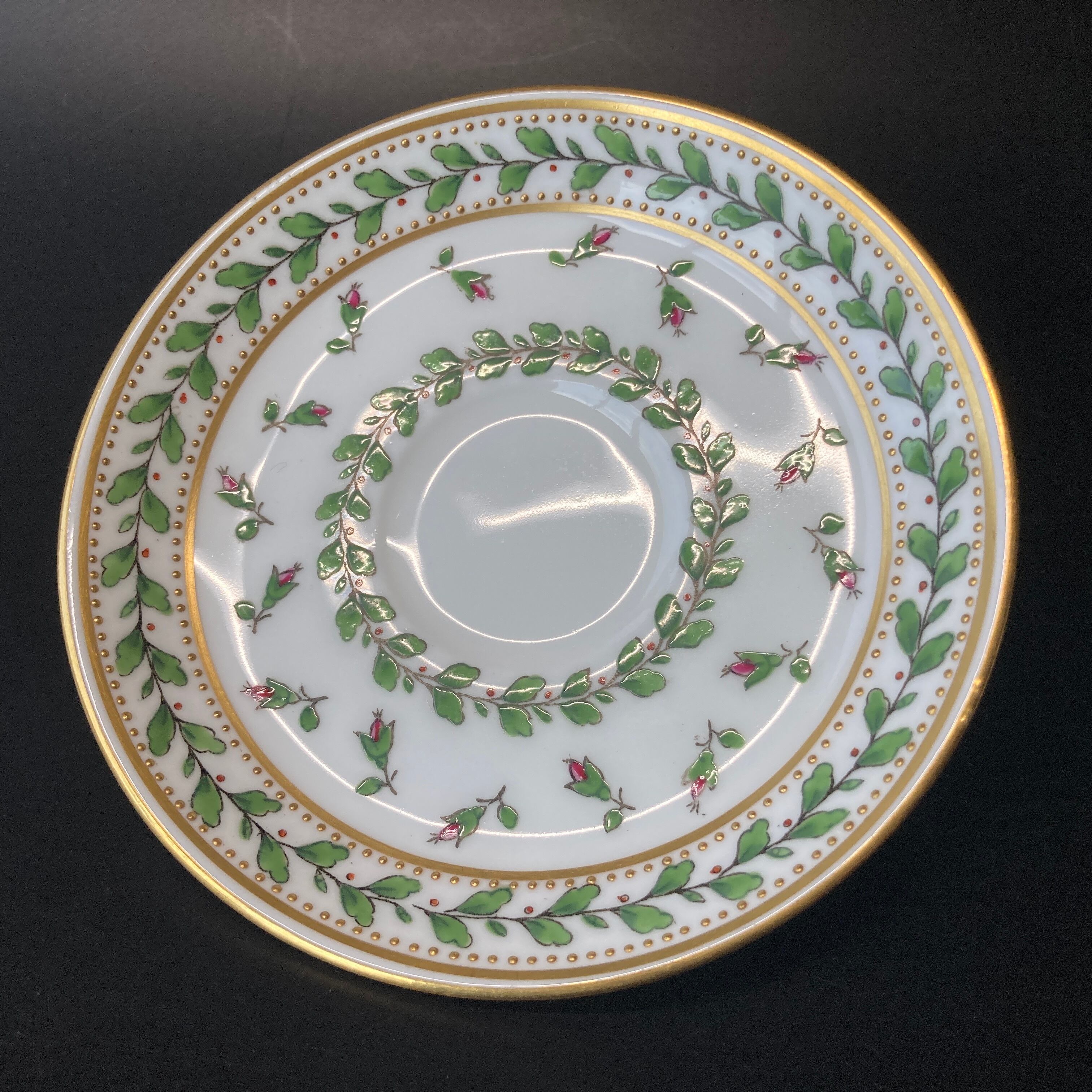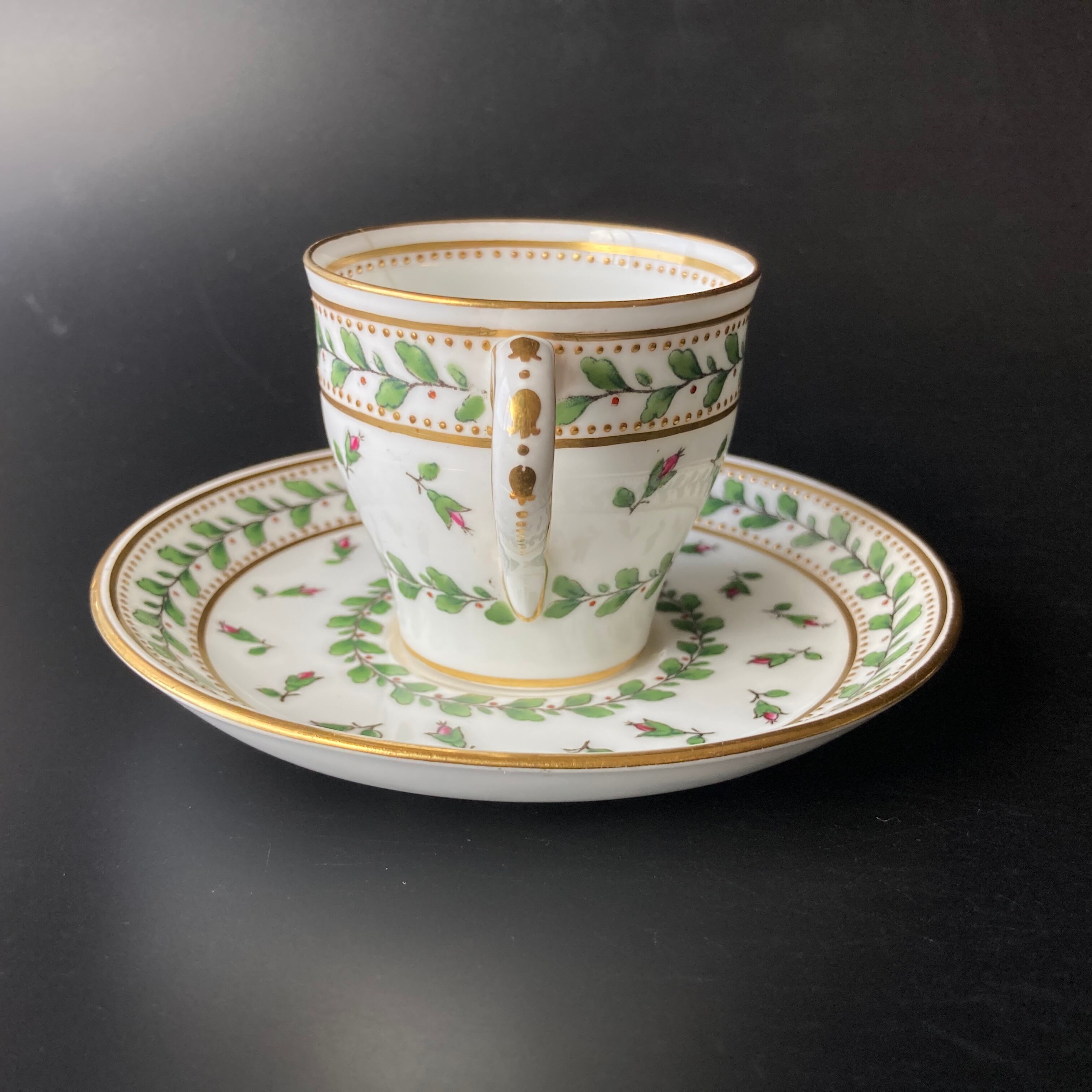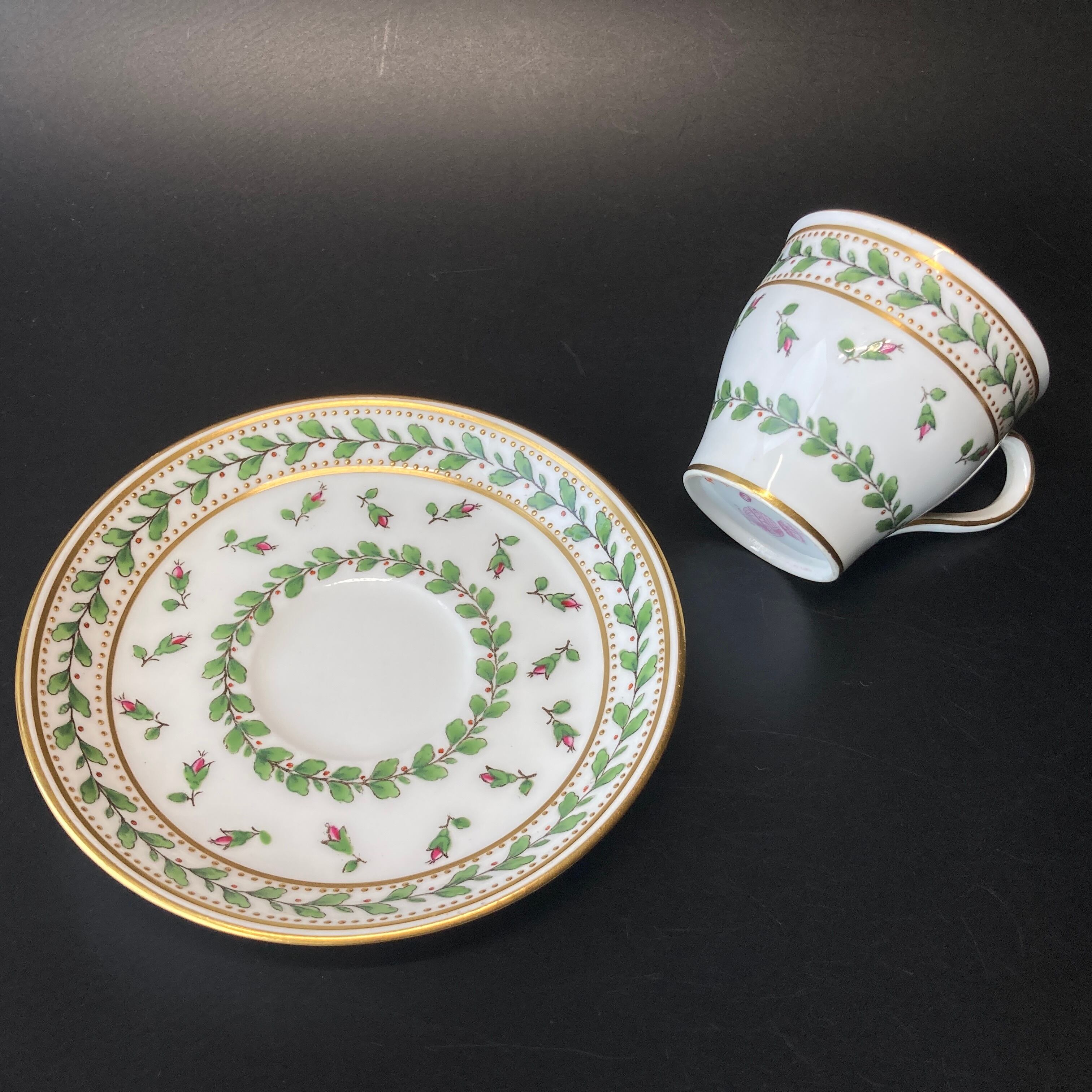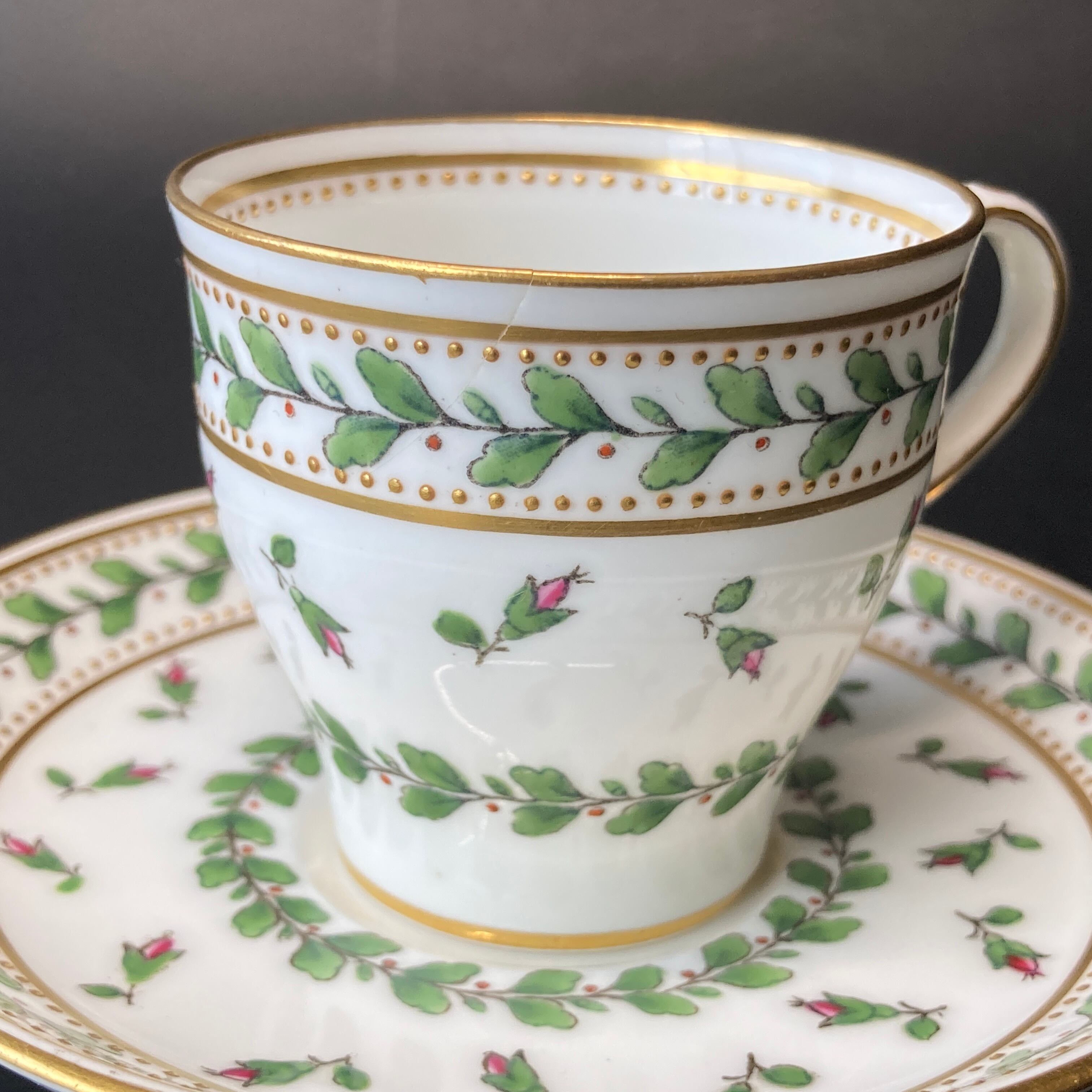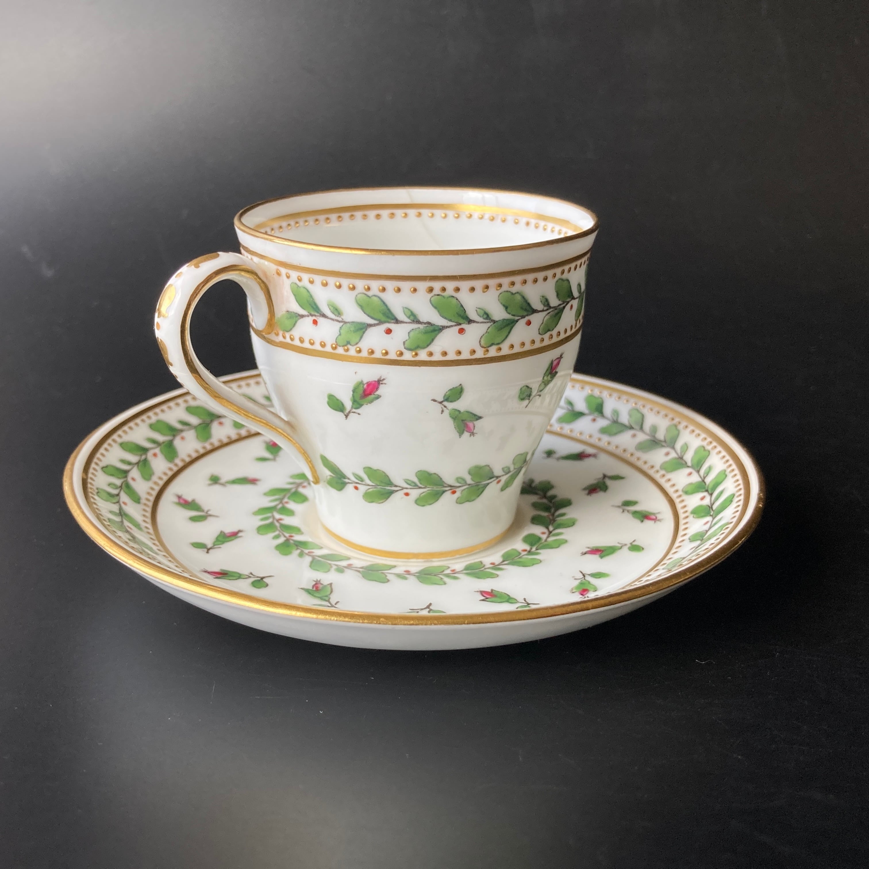小さな金色のドットは全て金盛りによって形成されており、カップの内側にも施されている珍しい仕上げです。