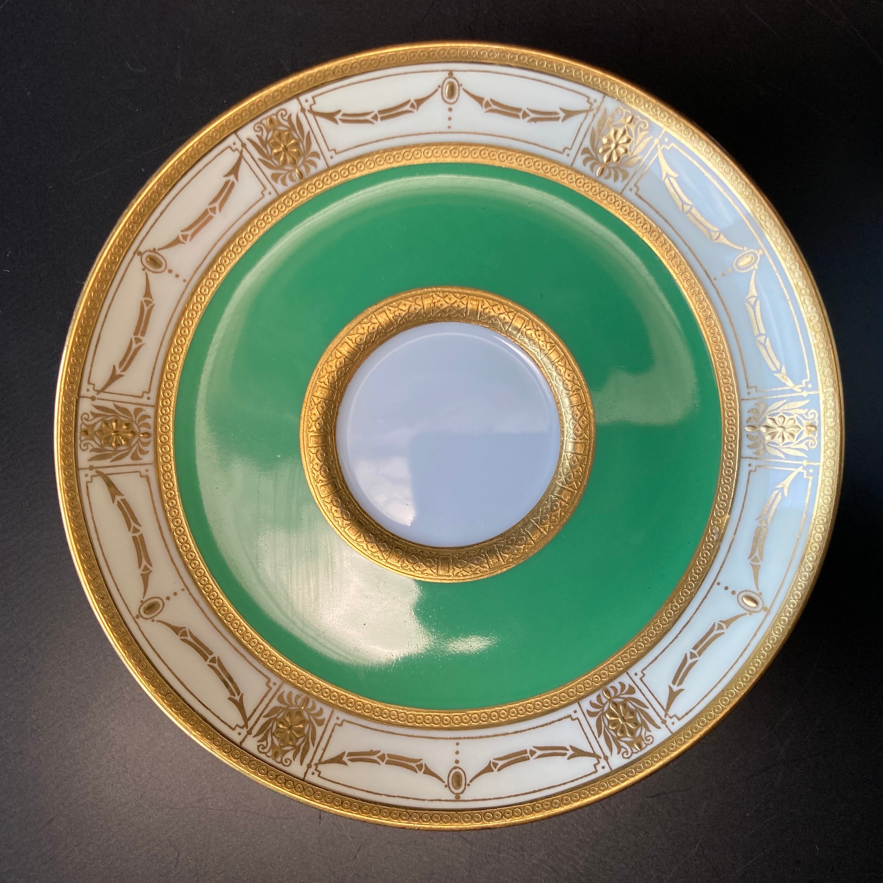 鮮やかなエメラルドグリーンと立体的な金彩装飾の調和も実に見事です。