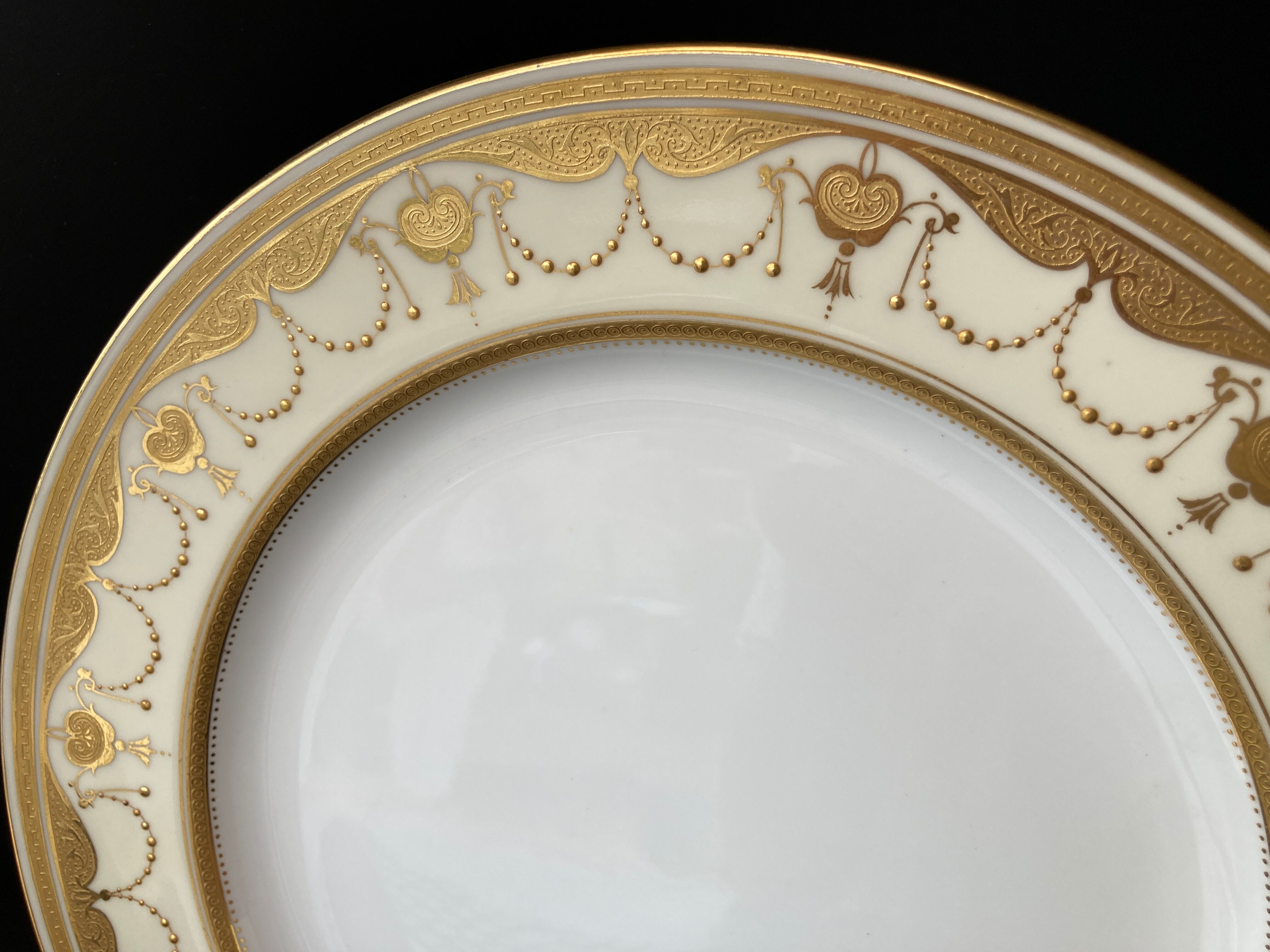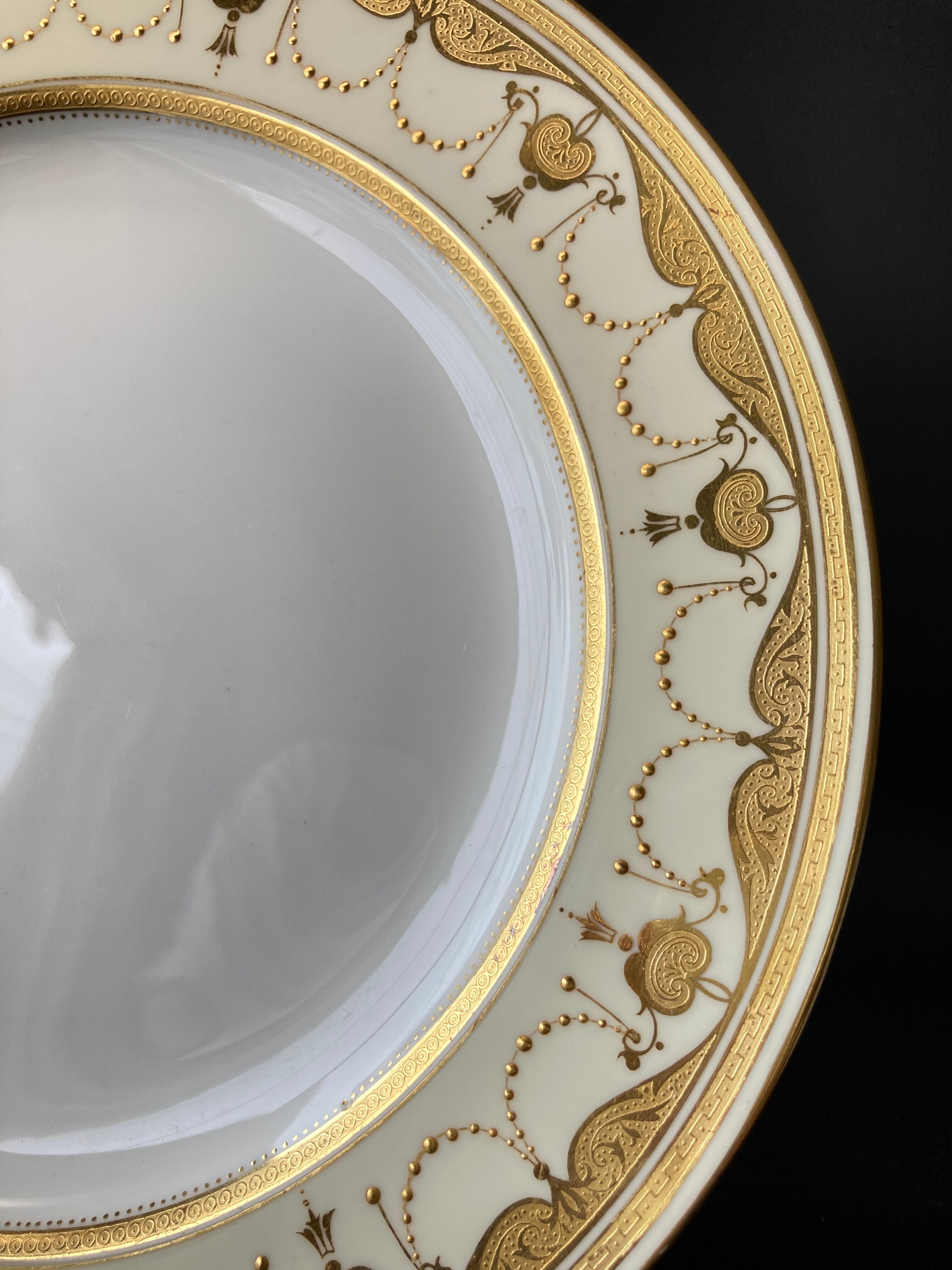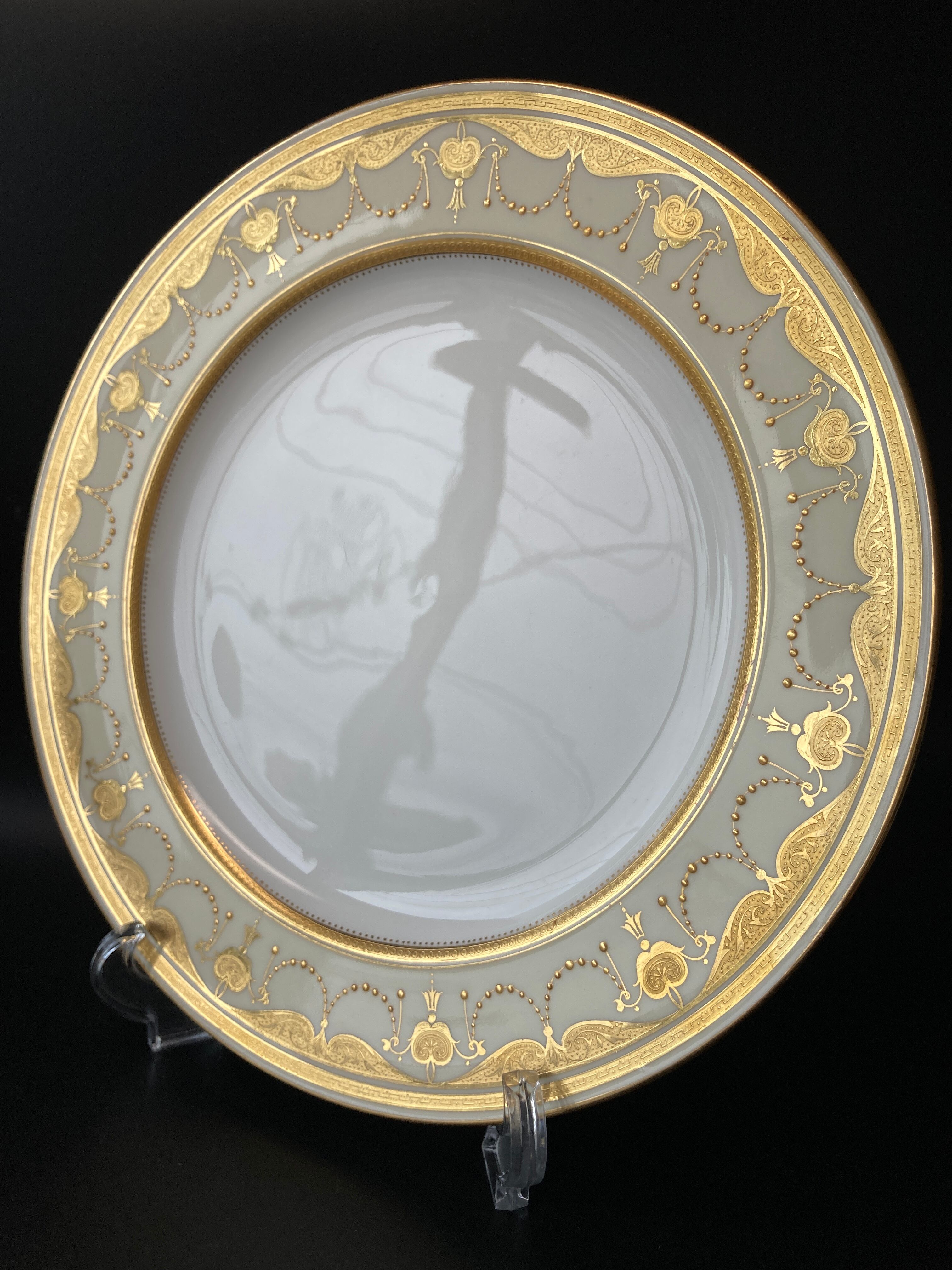 現在では制作不可能ともいわれる高純度で厚みを持った金盛りは、光を受けて綺羅びやかに輝き、当時のミントン作品ならではの贅沢なデザインをお楽しみ頂けます。