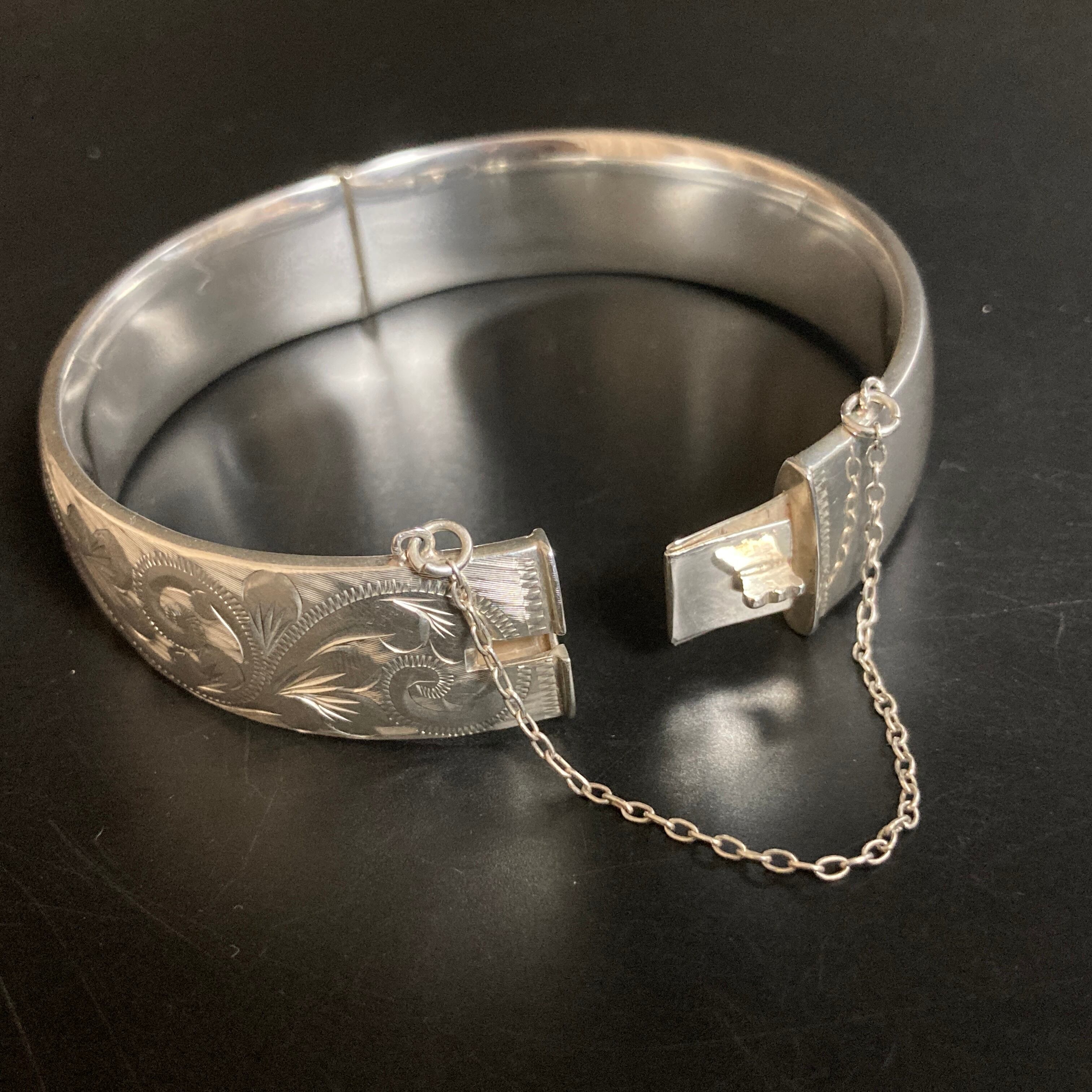 ジョージ・ジェンセン 純銀製 ブレスレット バングル 手彫彫金 シルバー 925 北欧 ヴィンテージ ジュエリー