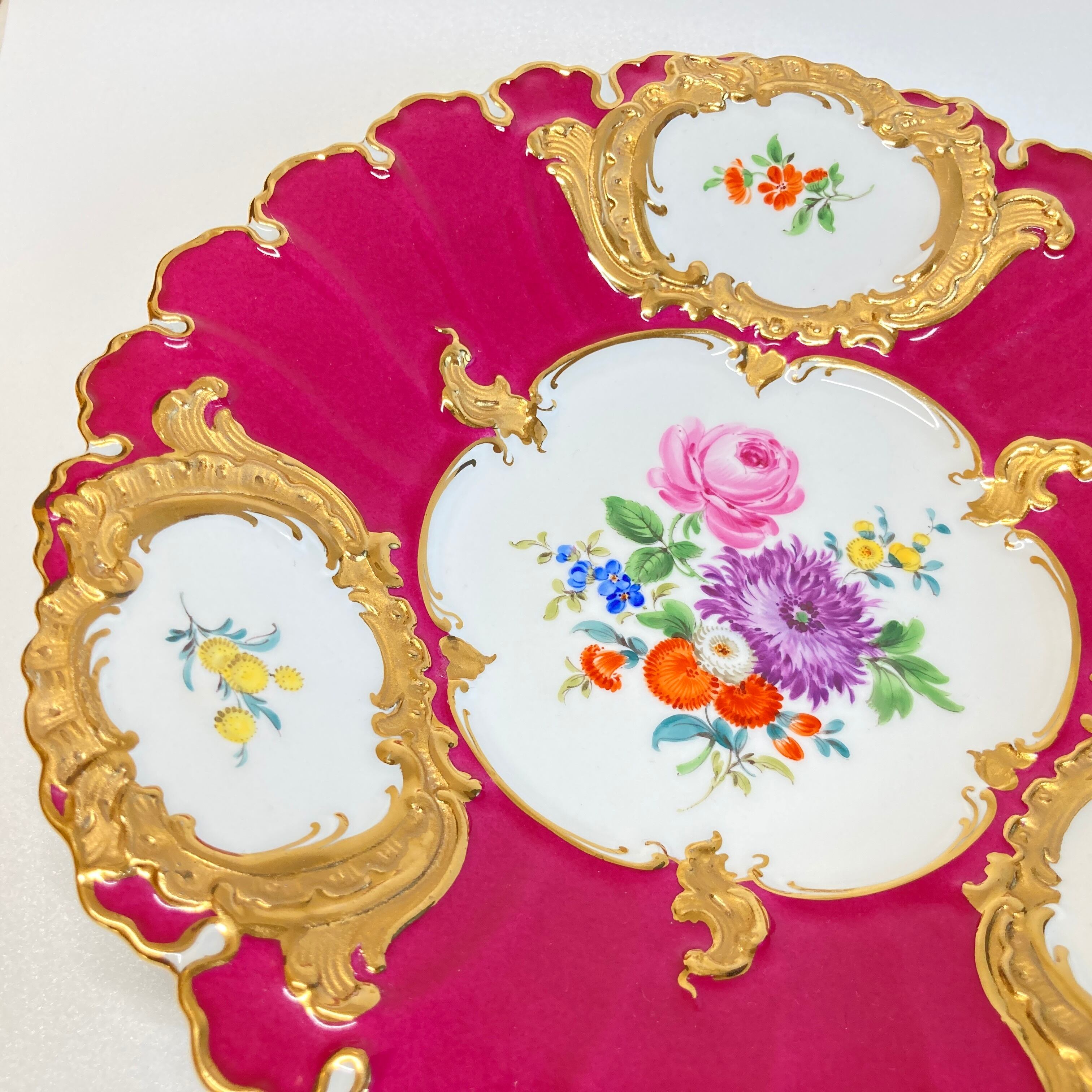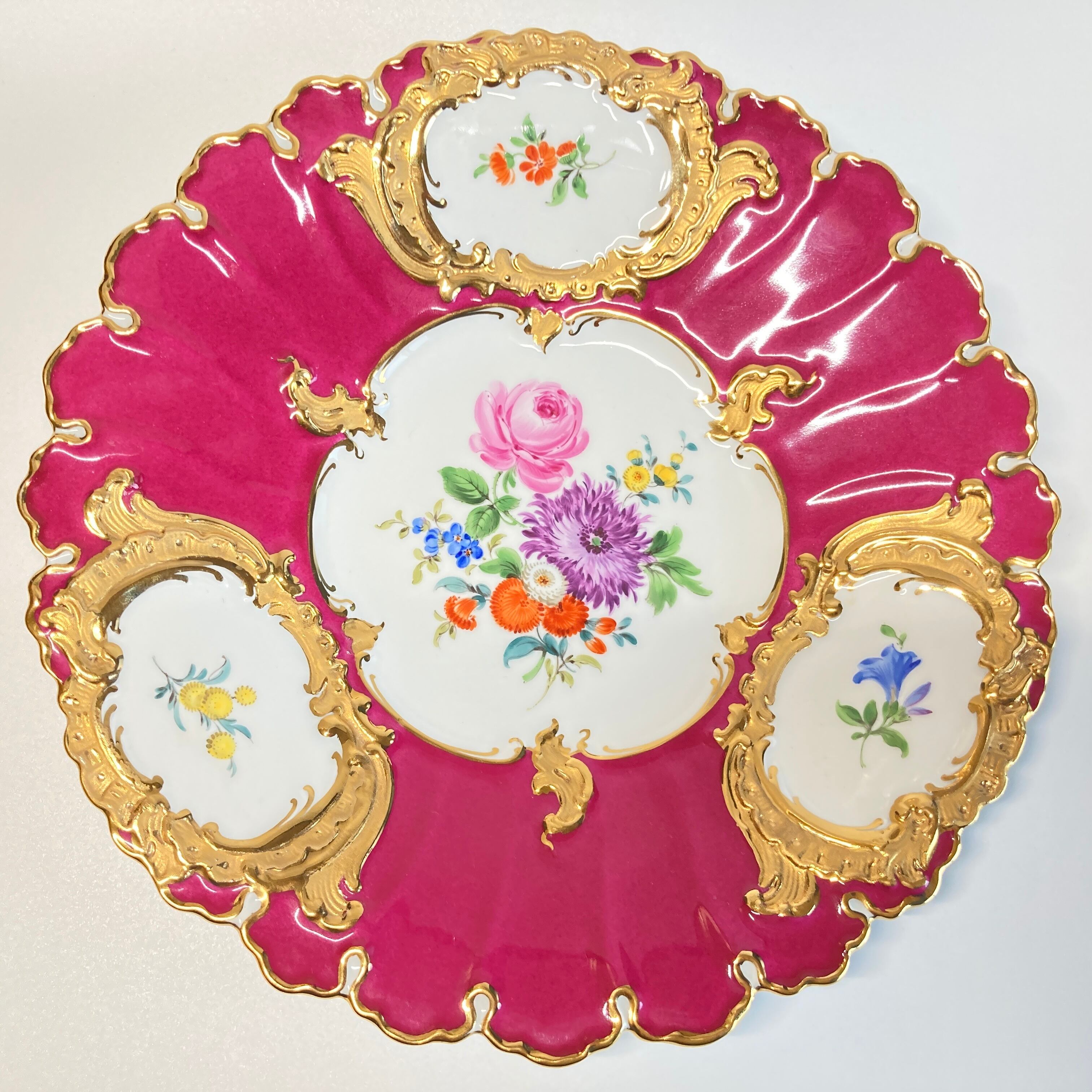こちらはドイツを代表する名窯マイセンの名品、最高峰ラインに位置するBフォームの飾り皿です。