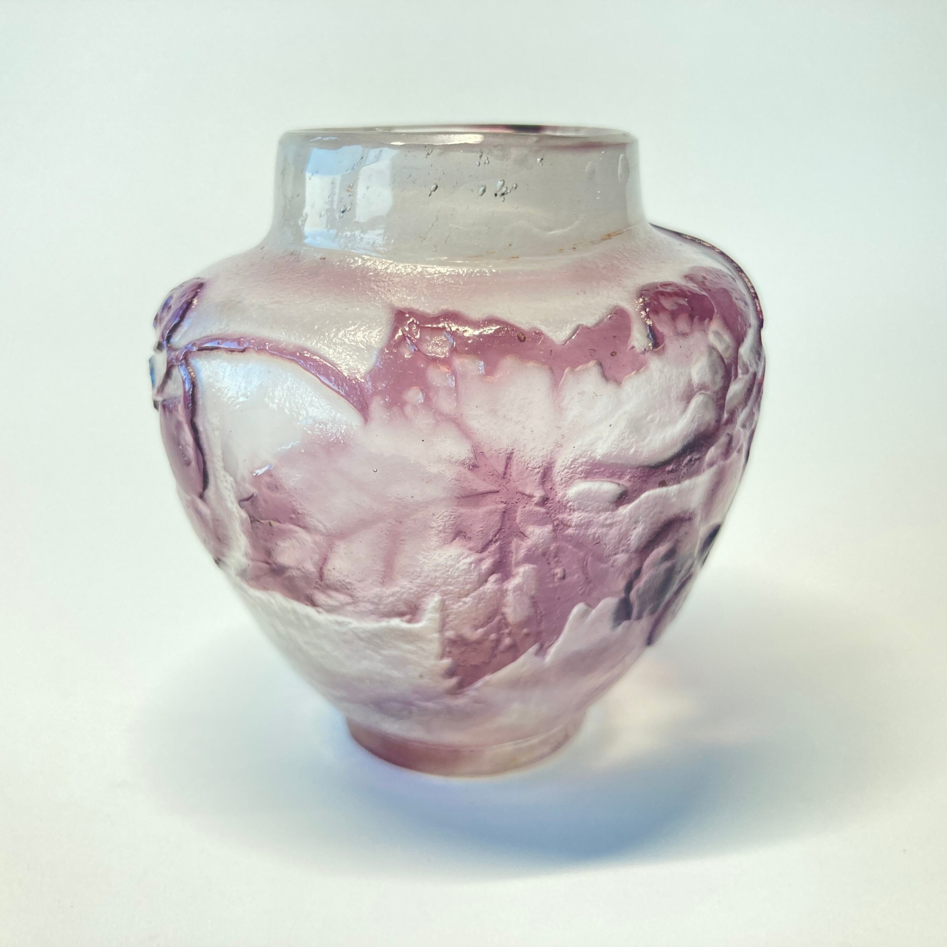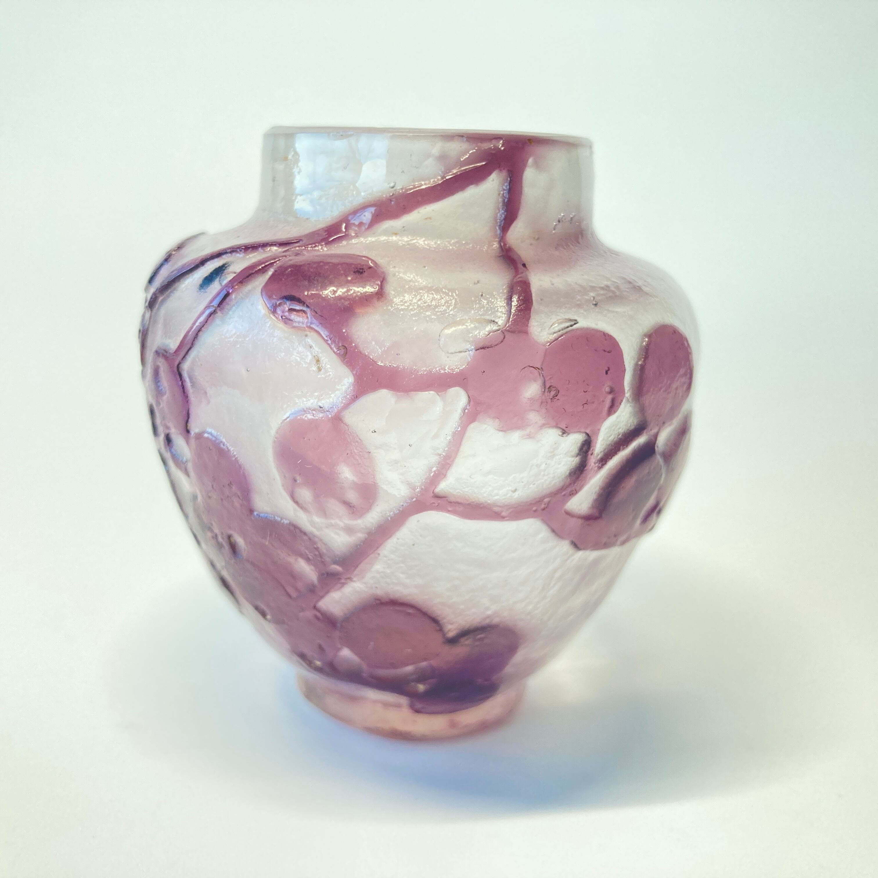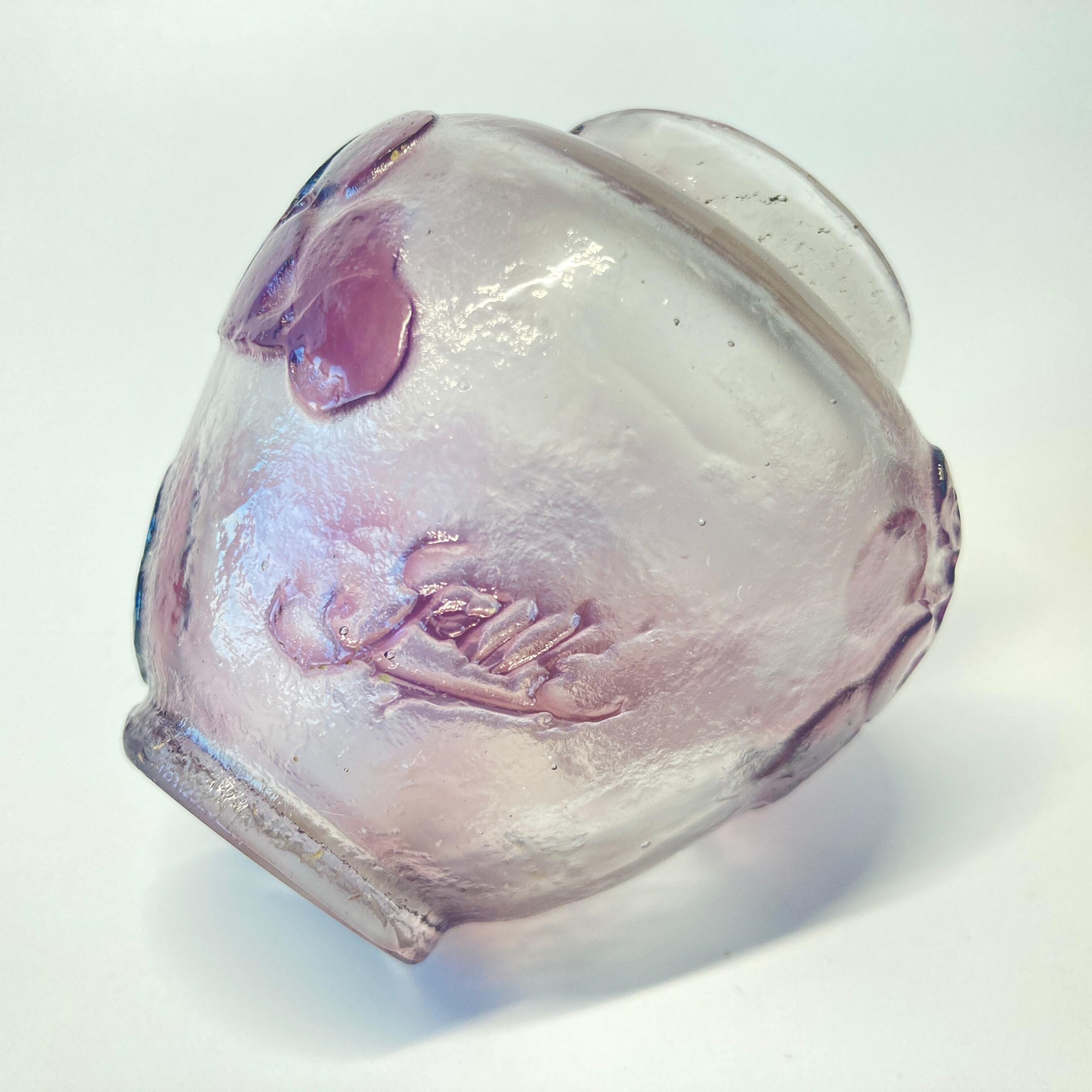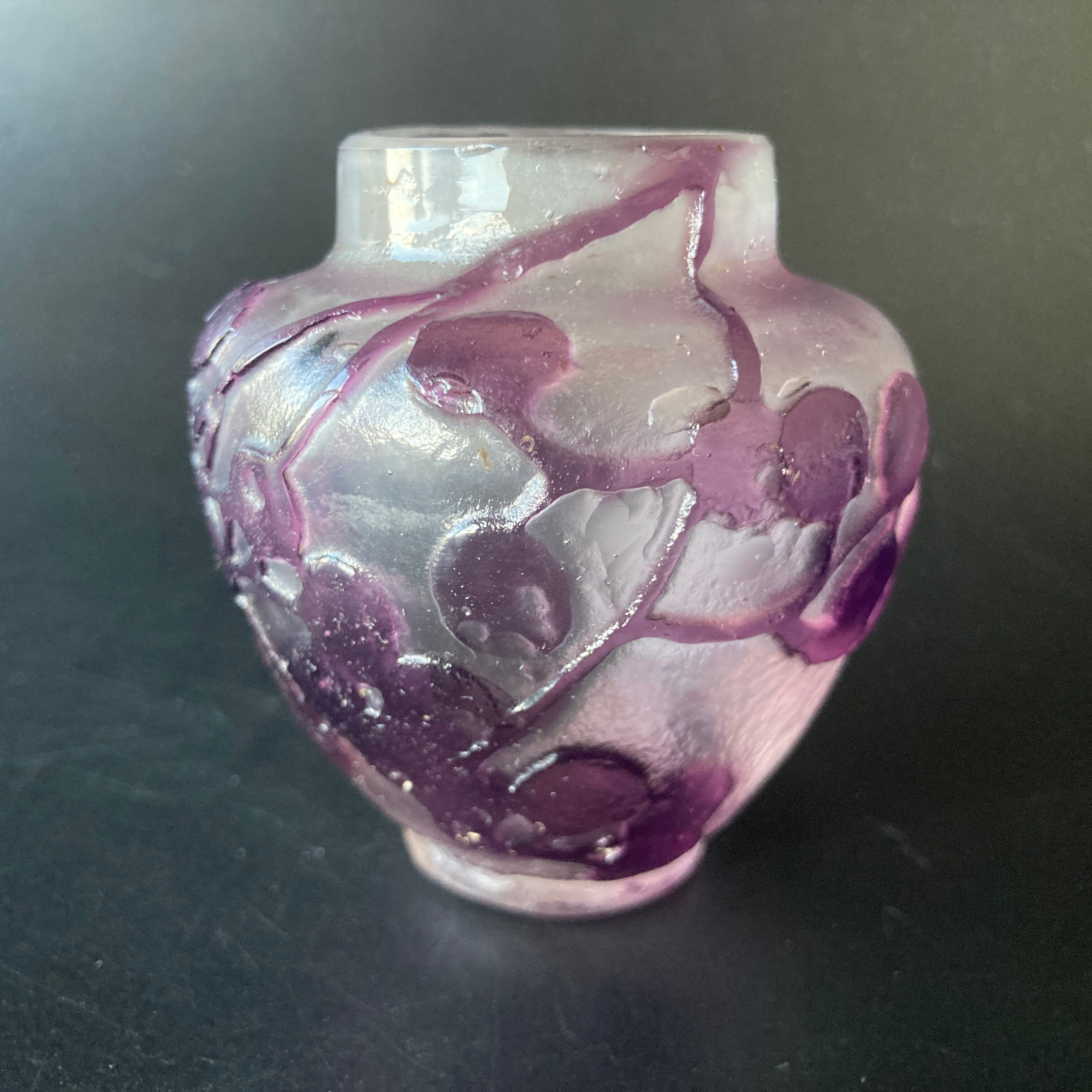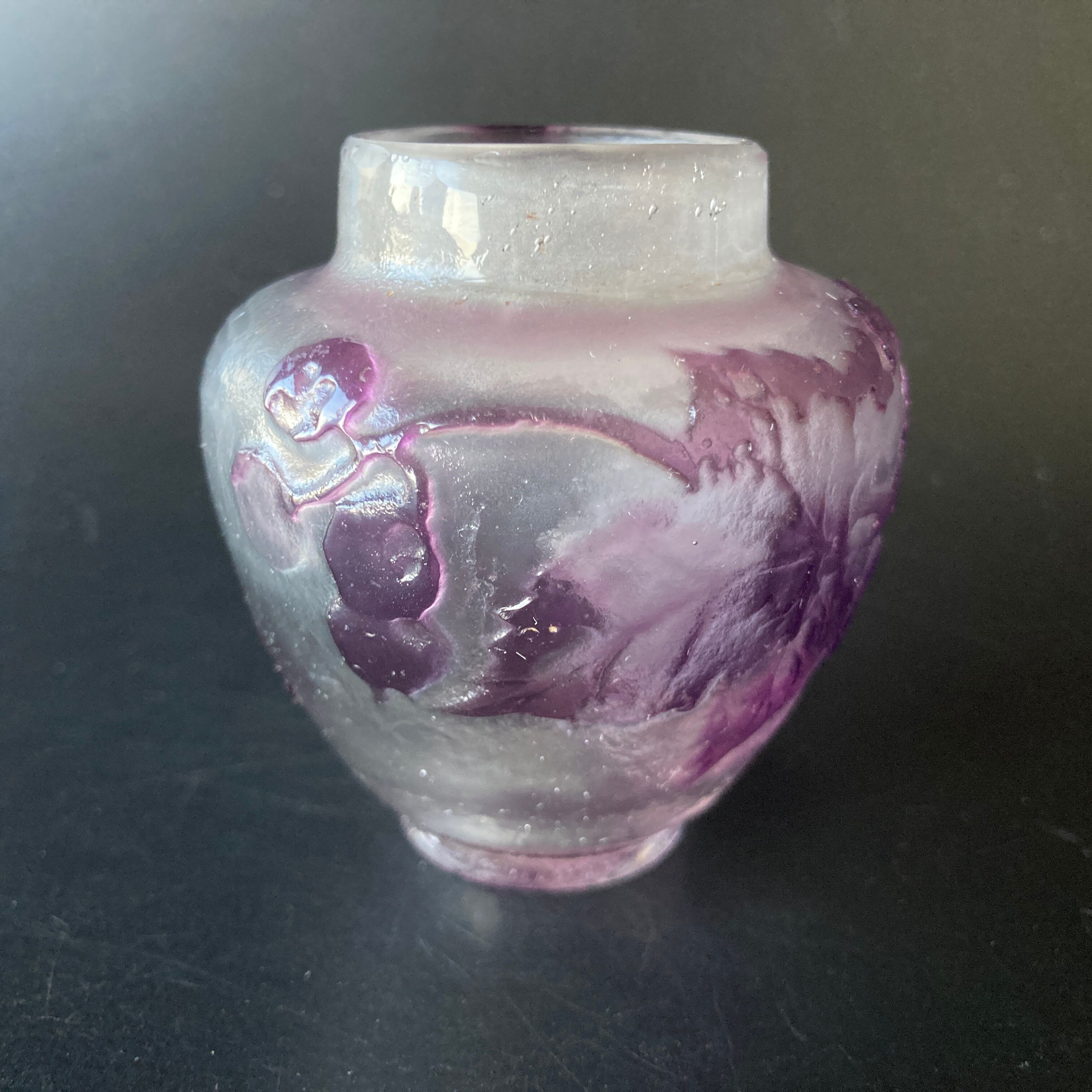 手のひらに収まる馴染みの良い大きさの小壺にガレならではの様式美が凝縮されており、おもてなしの席にも相応しい逸品です。